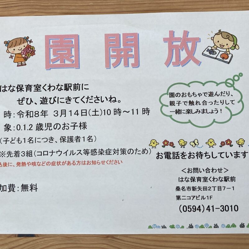 3月園開放のお知らせ