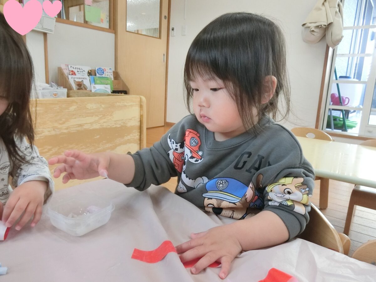 輪つなぎでなくても、折り紙やのりに触れてくれることを楽しんで欲しいと思って挑戦してみたのですが、
