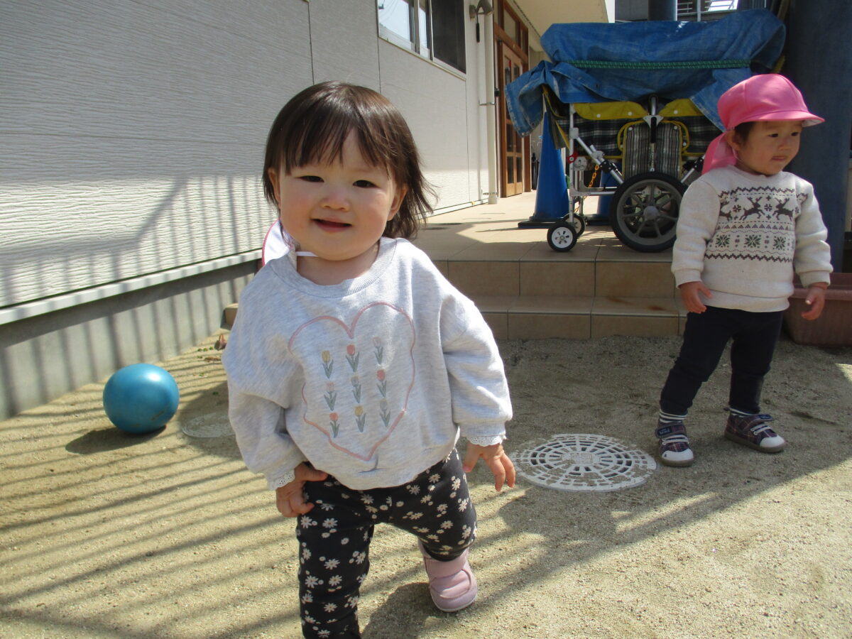 散歩中も、お友だちとお話をしながら楽しんでくれています![]()
