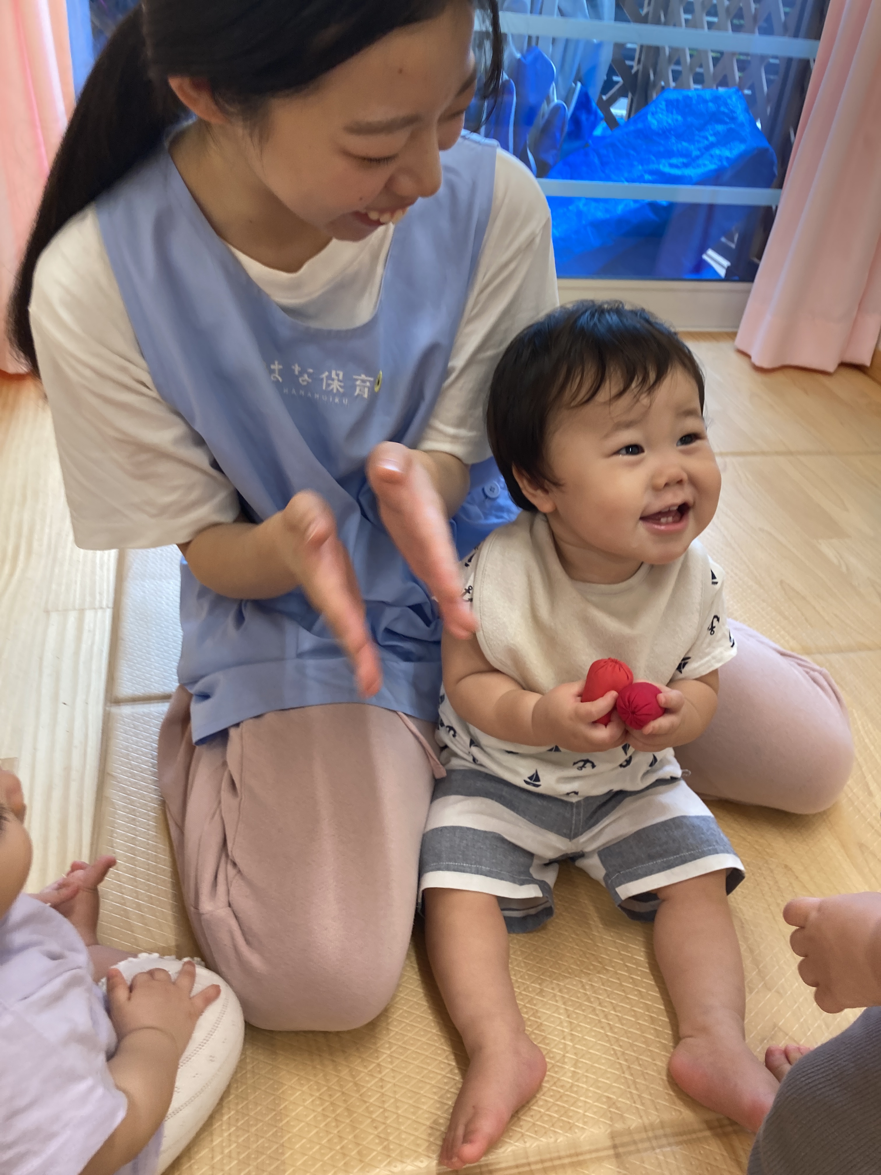 お友だちや保育者の足の親指をちょんちょん触れて楽しんでいます💓