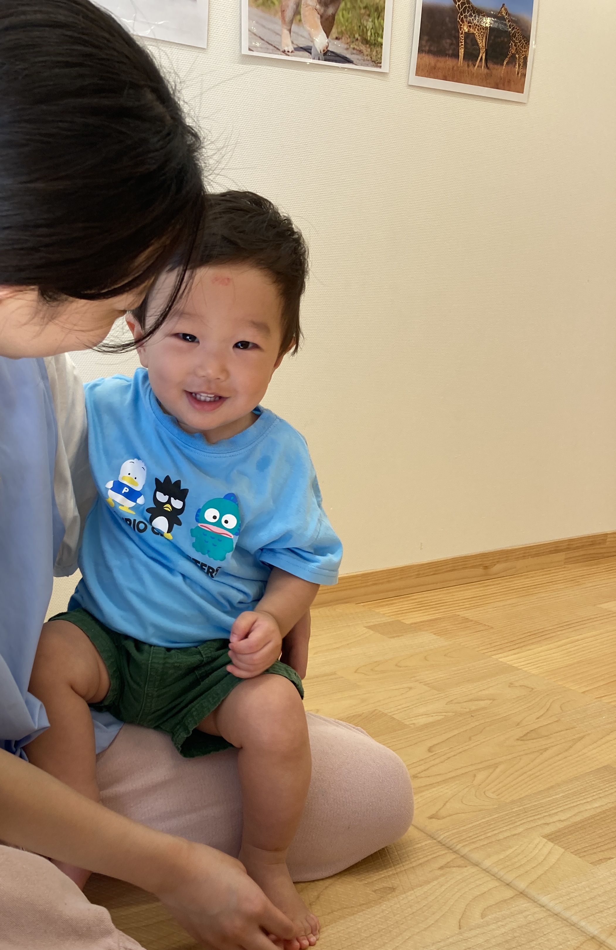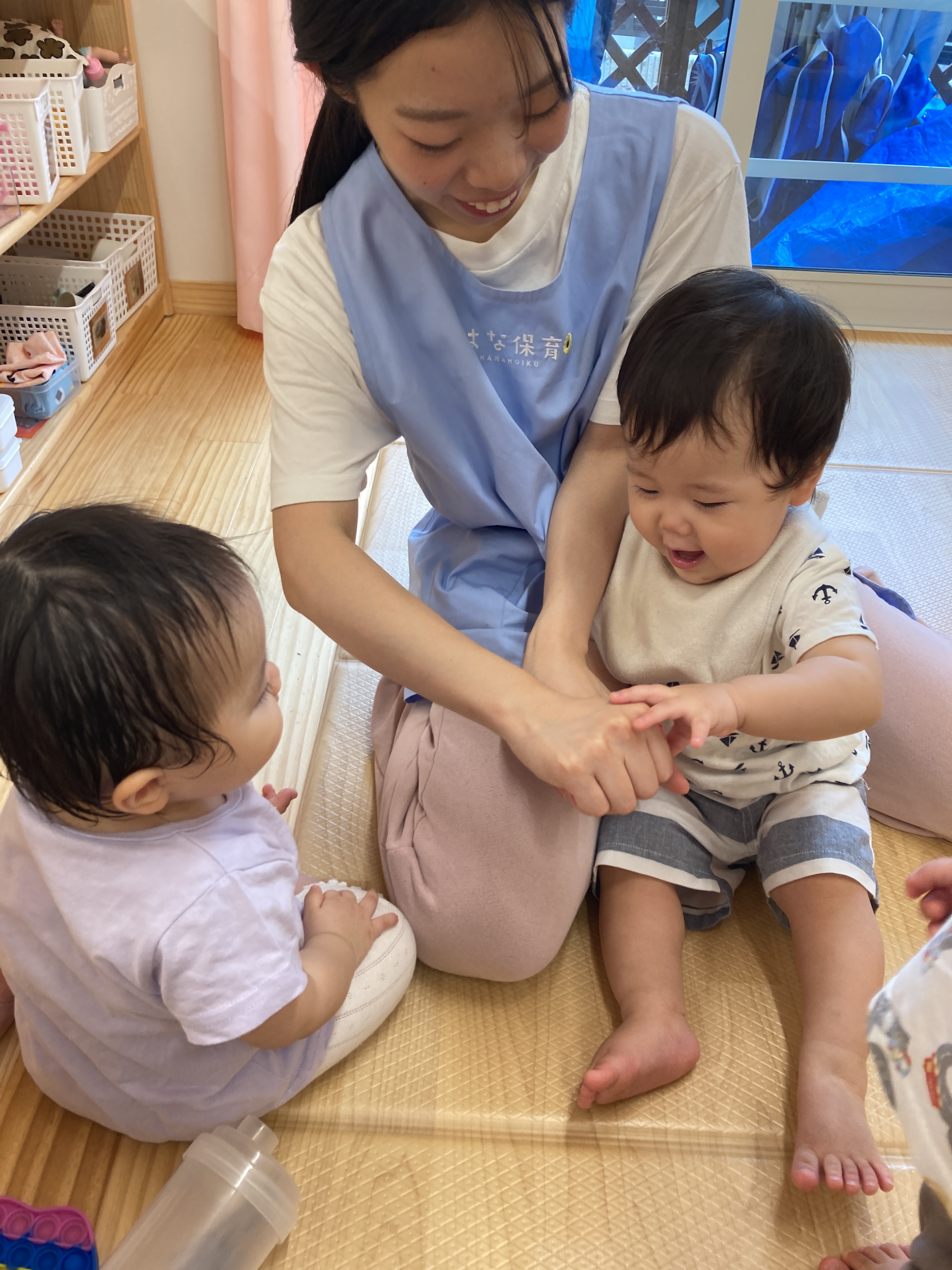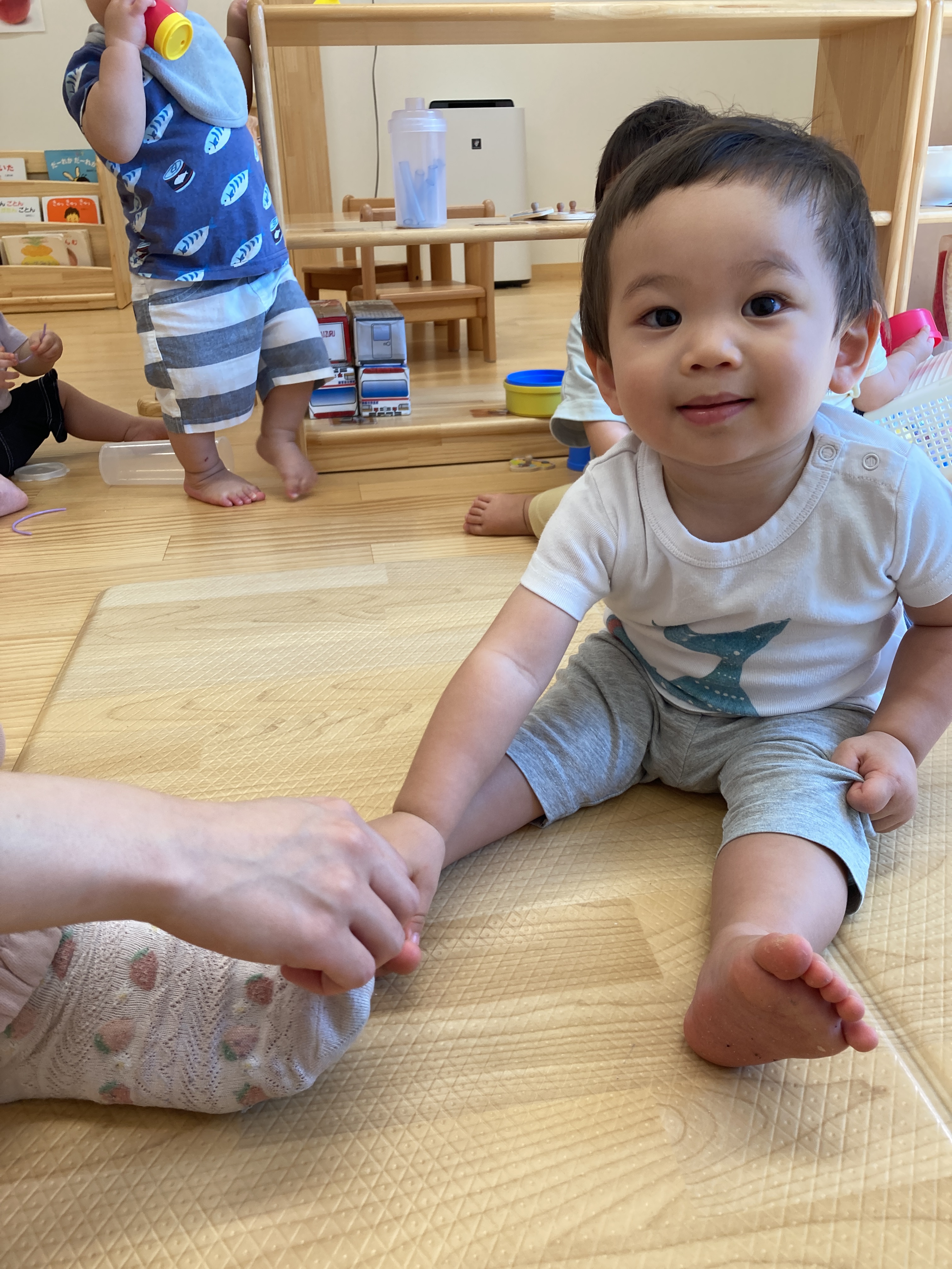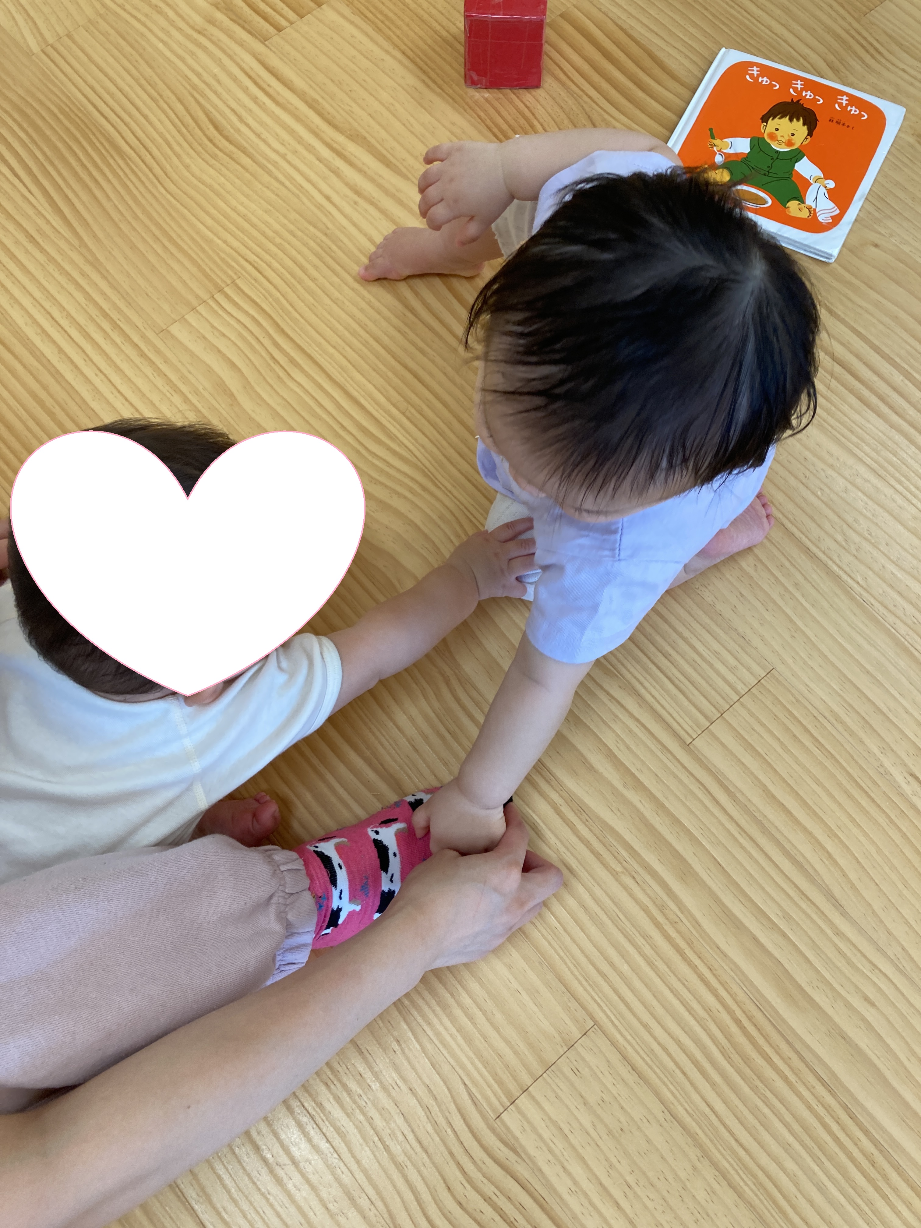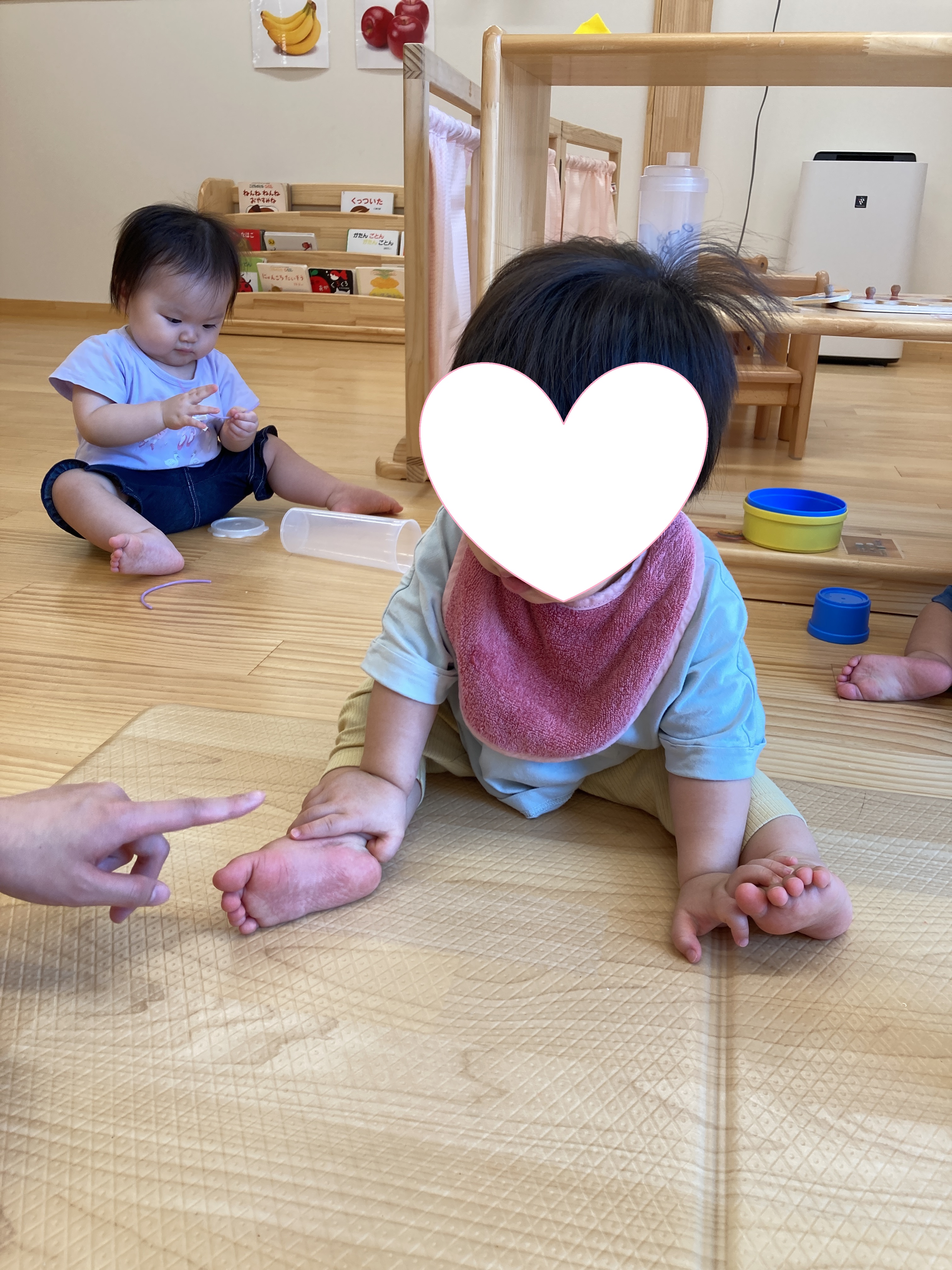 お友だちや保育者の足の親指をちょんちょん触れて楽しんでいます💓