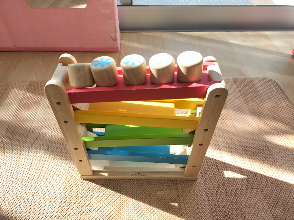 初めは転がし方も難しかったでしたが、今は転がす向きも理解して遊んでいる大人気の玩具です!