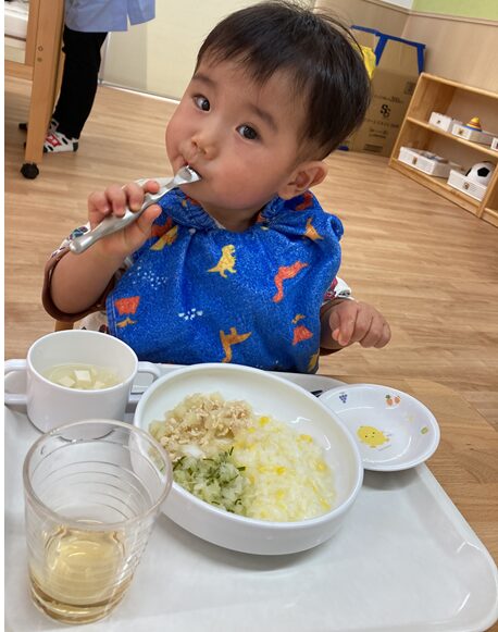 はじめてのお給食に「なにこれ?」と不思議そうなお顔をしていたお友だちも、