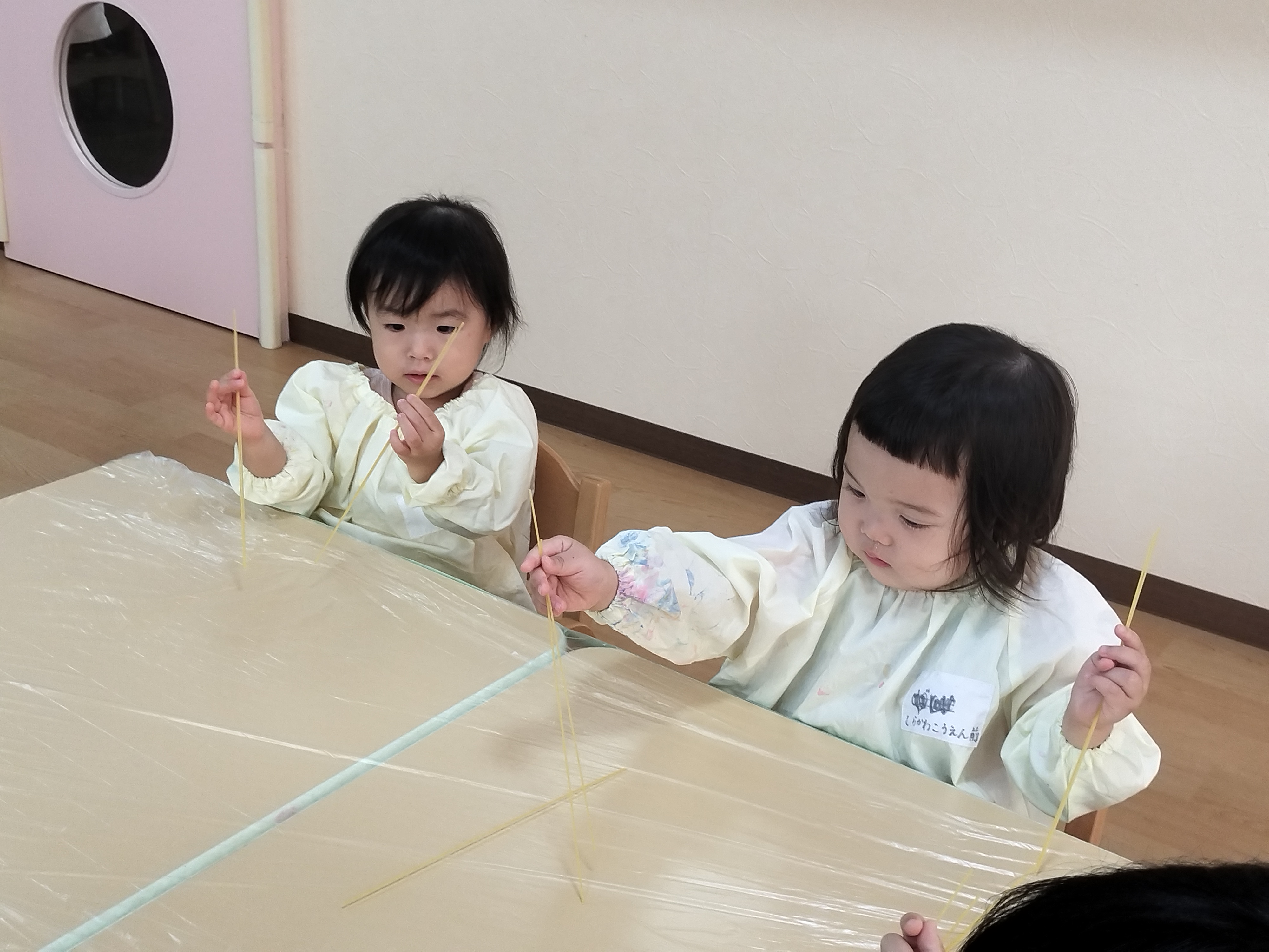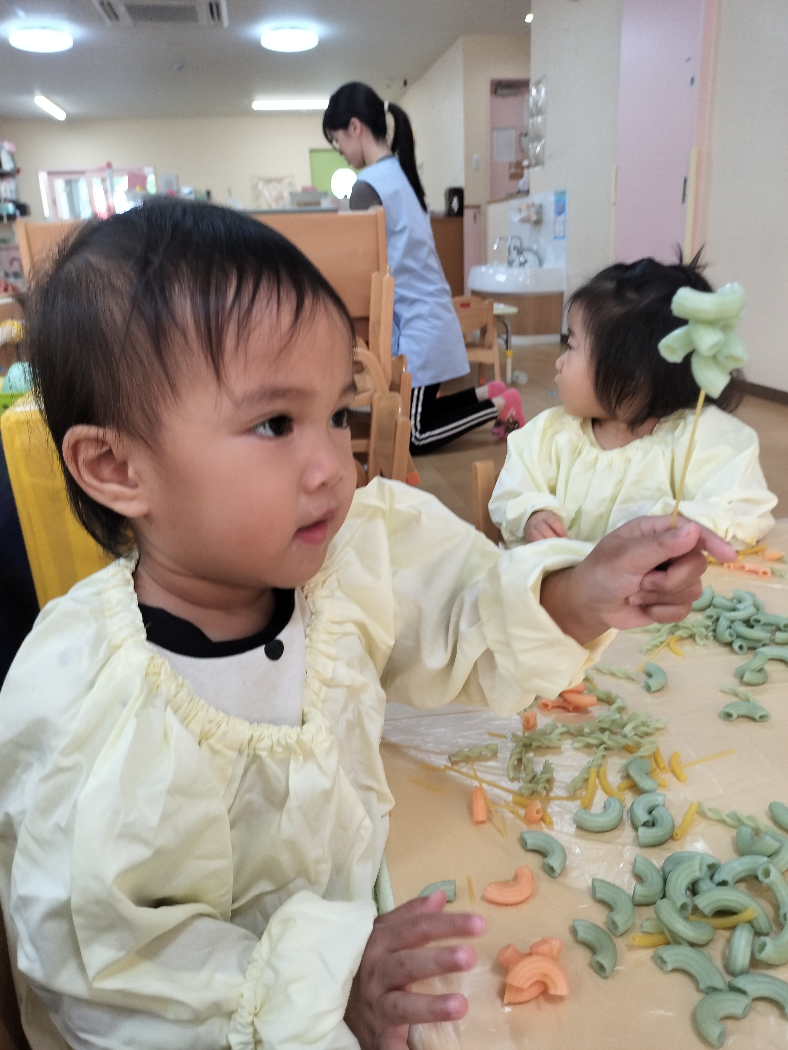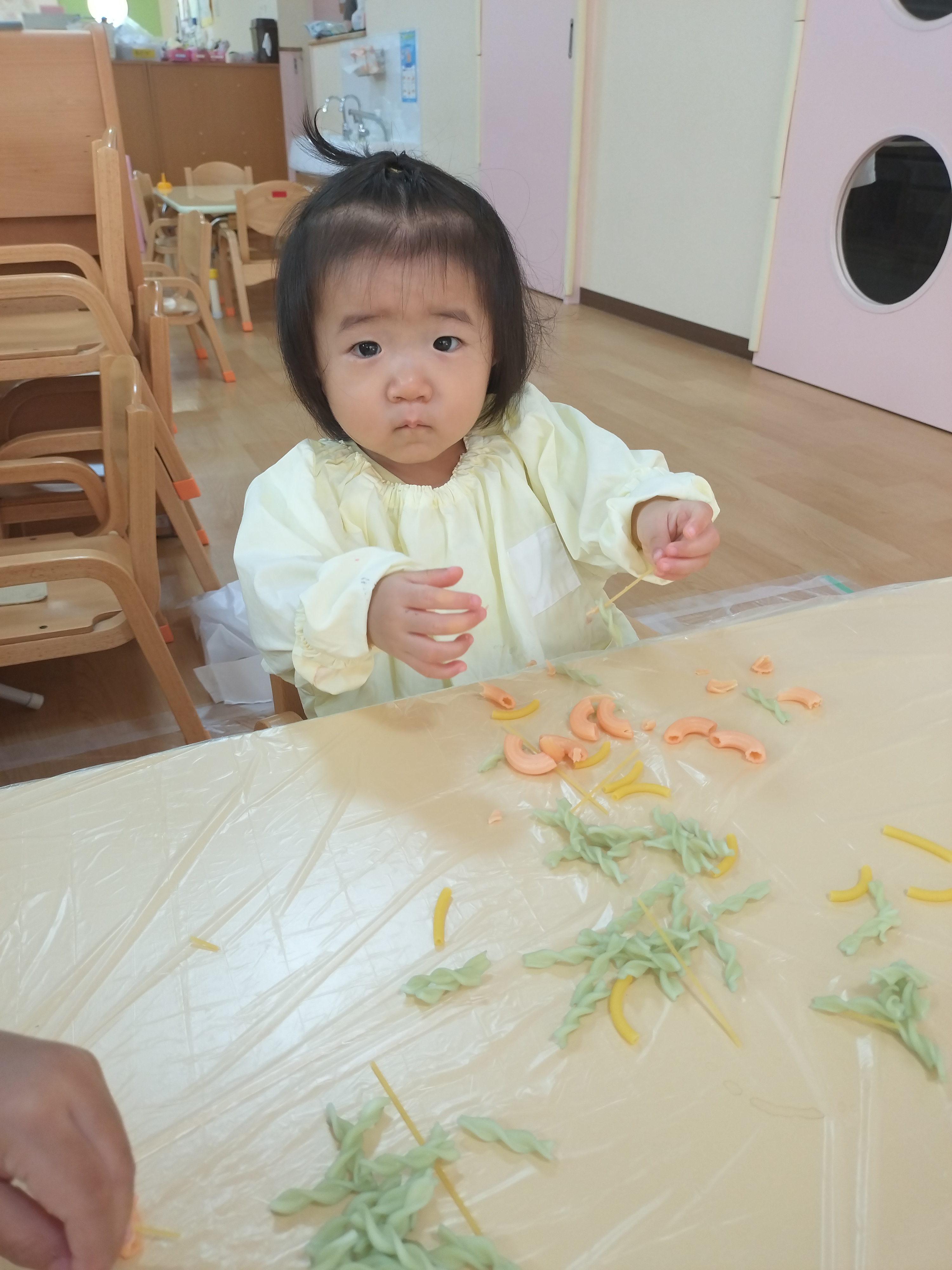 柔らかいマカロニに、パスタを刺して「おだんご!」と見せてくれたお友だちもいました