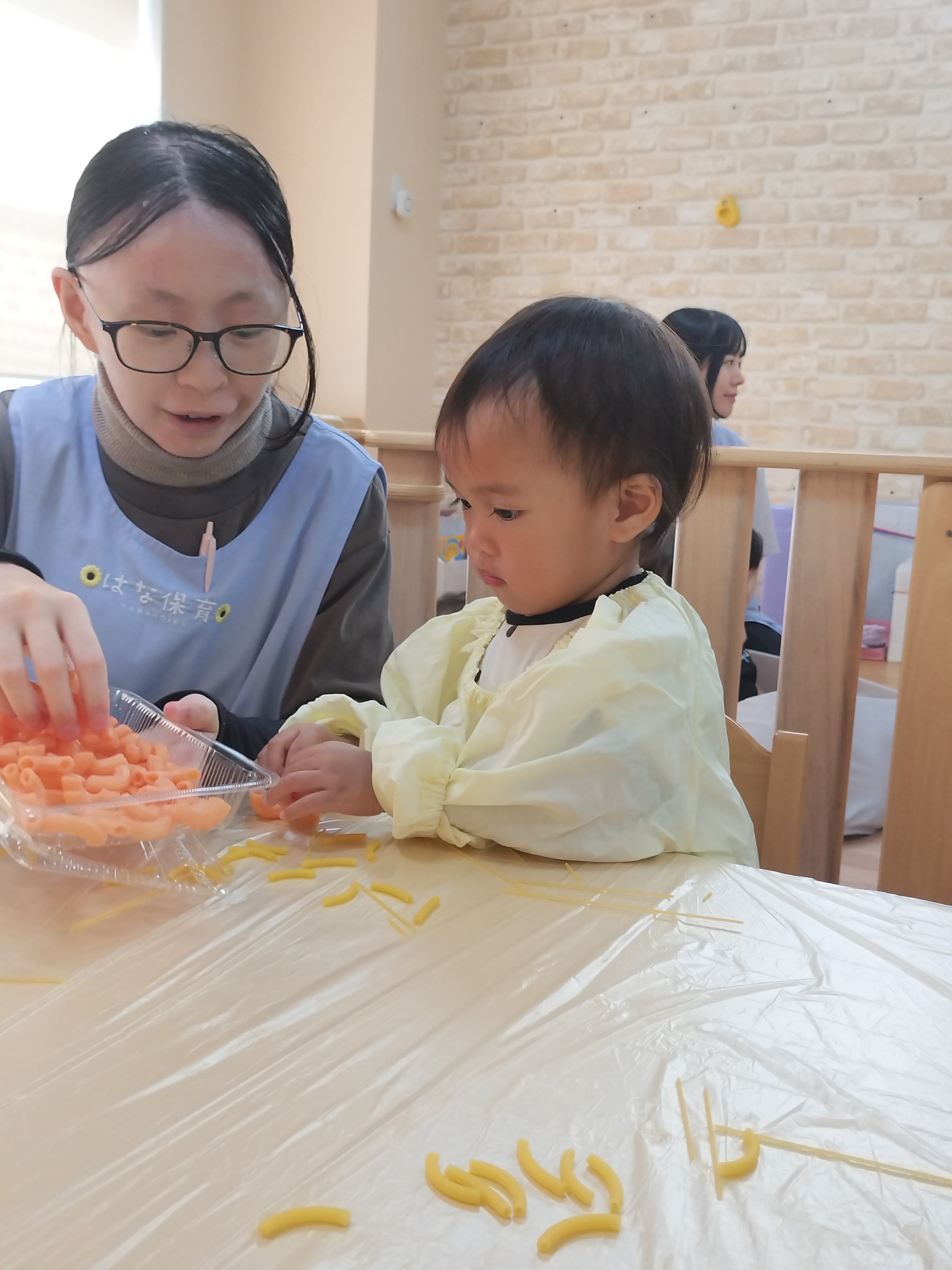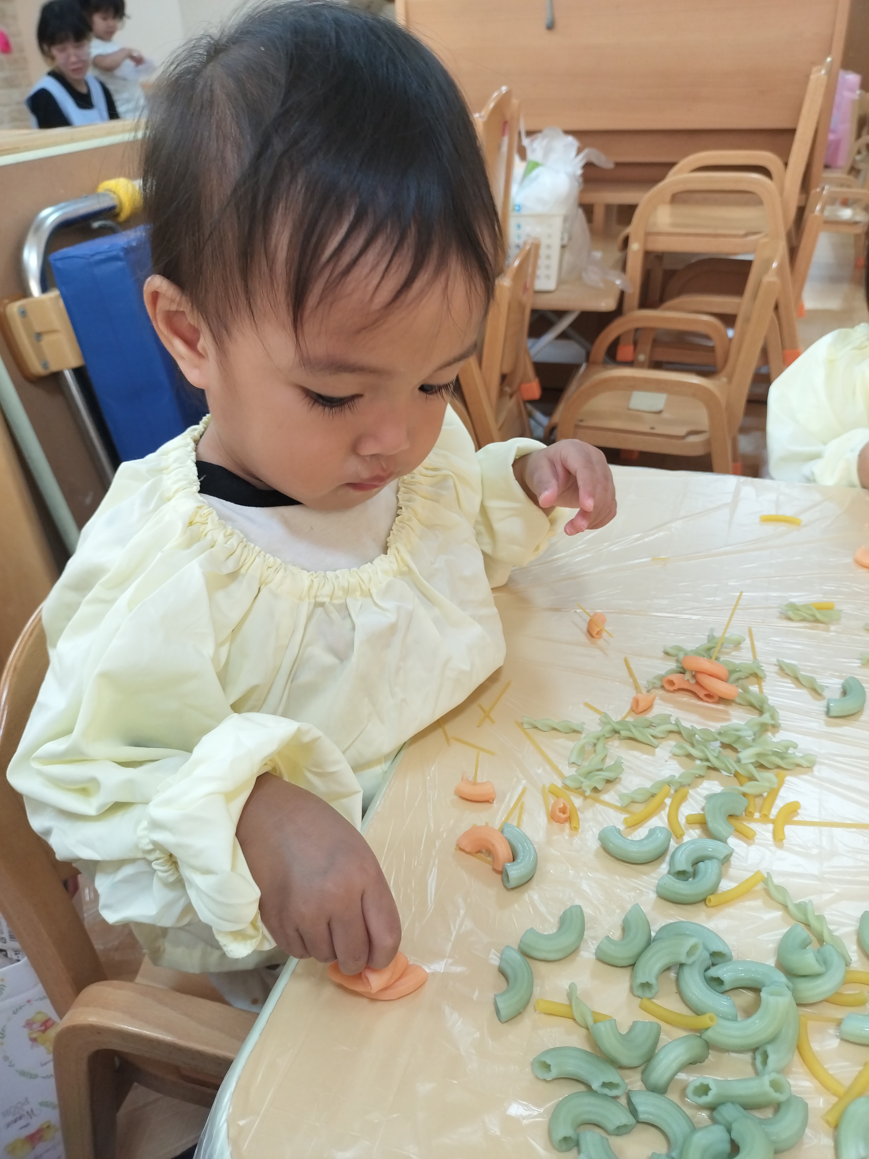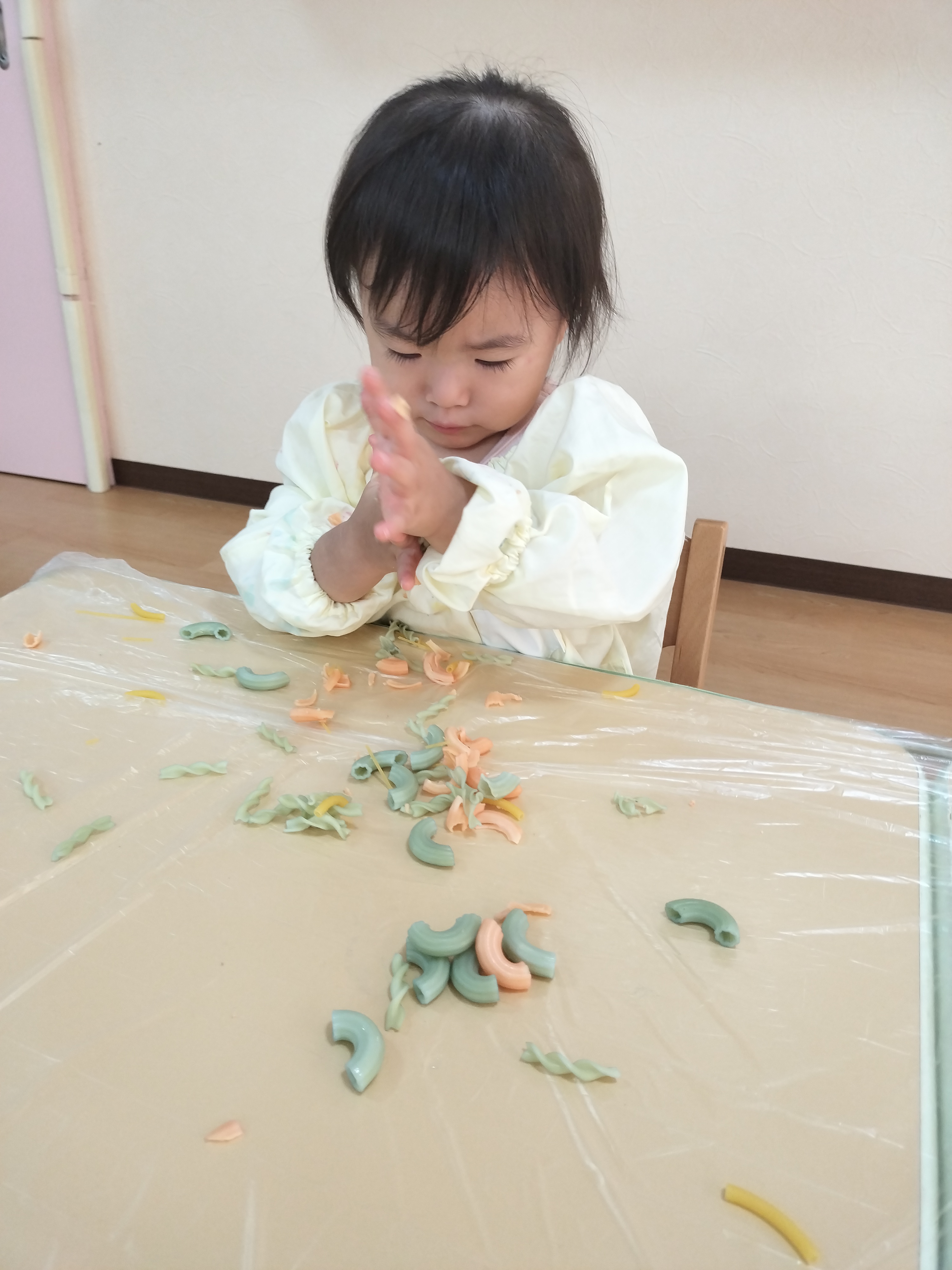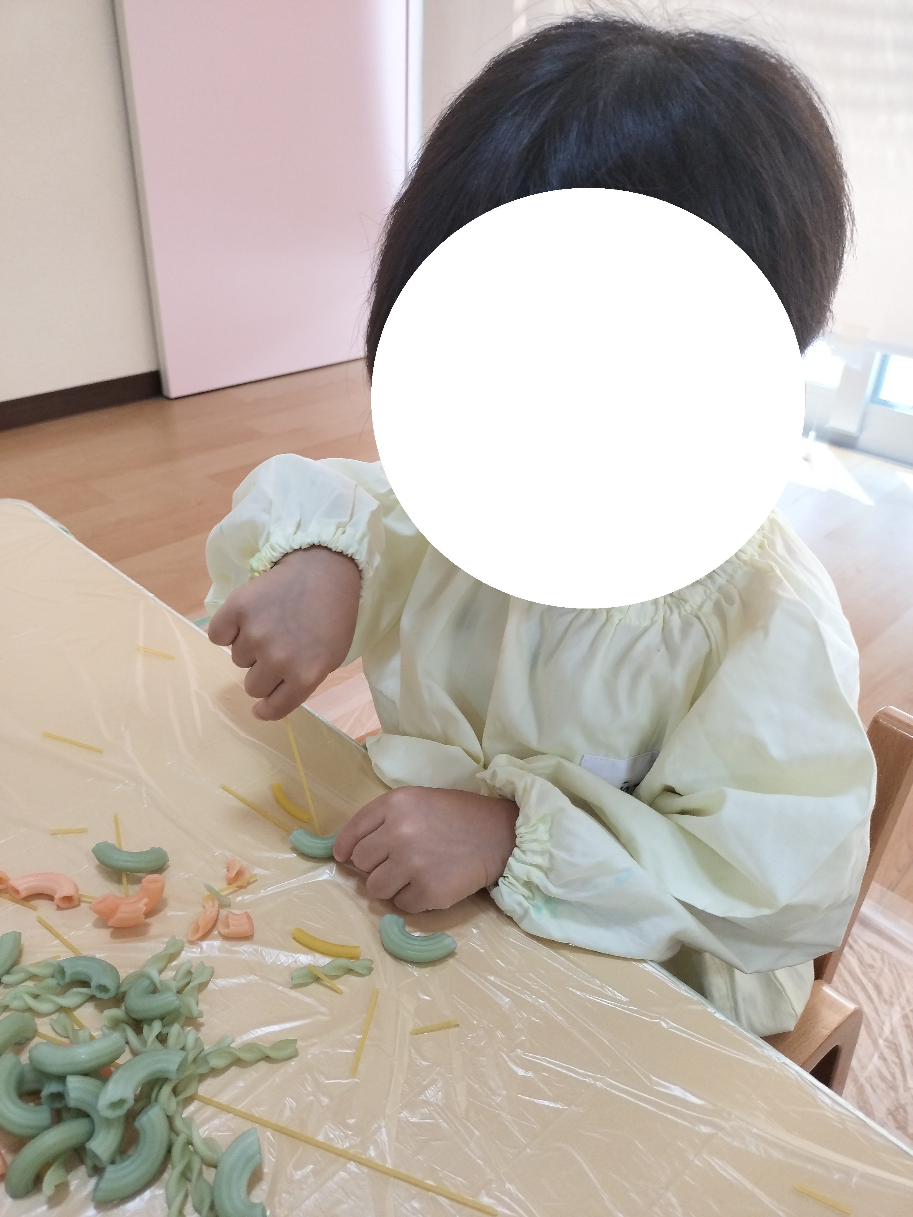 今回は、【パスタ・マカロニ】を使った感触遊びを楽しみました