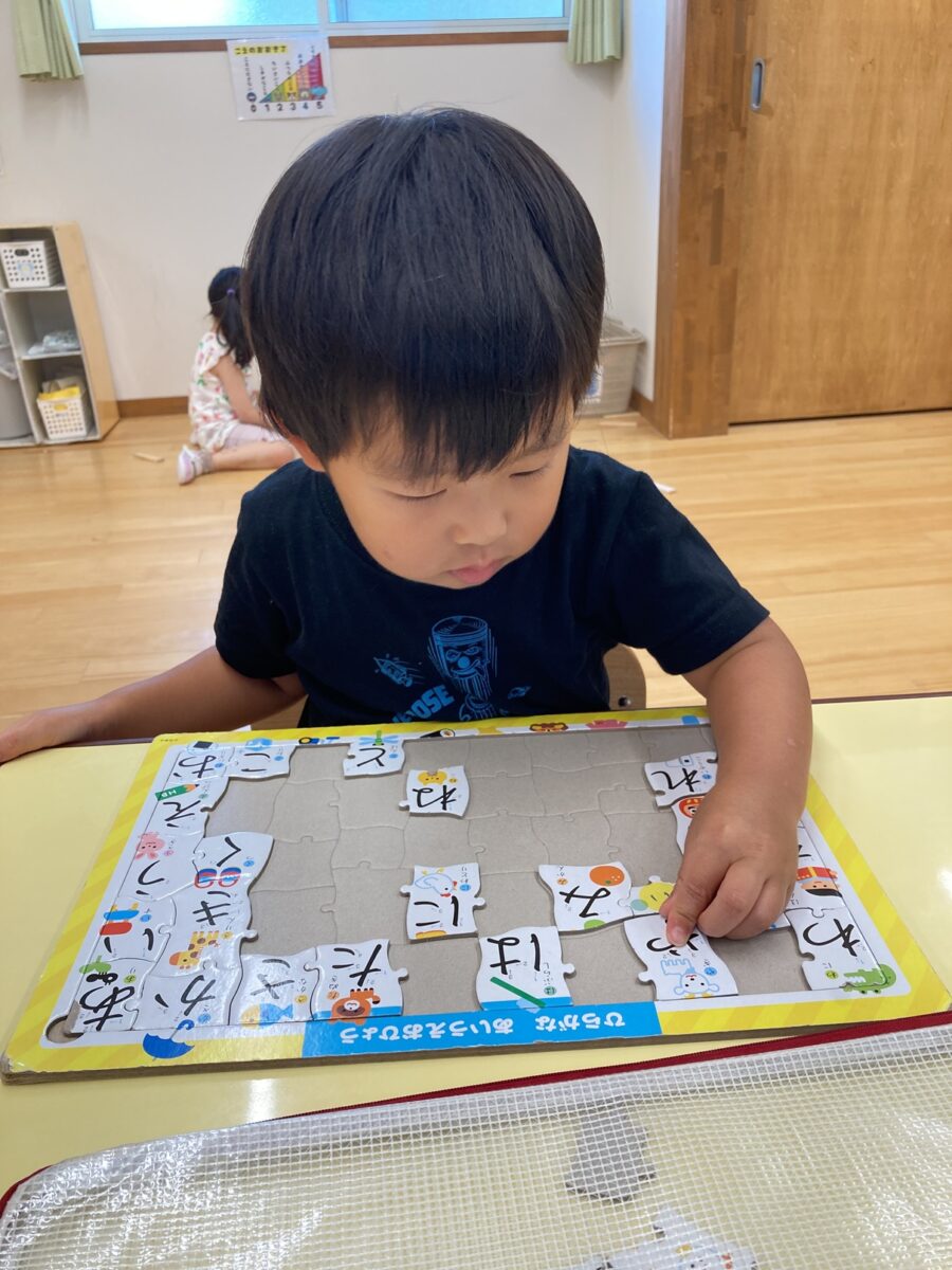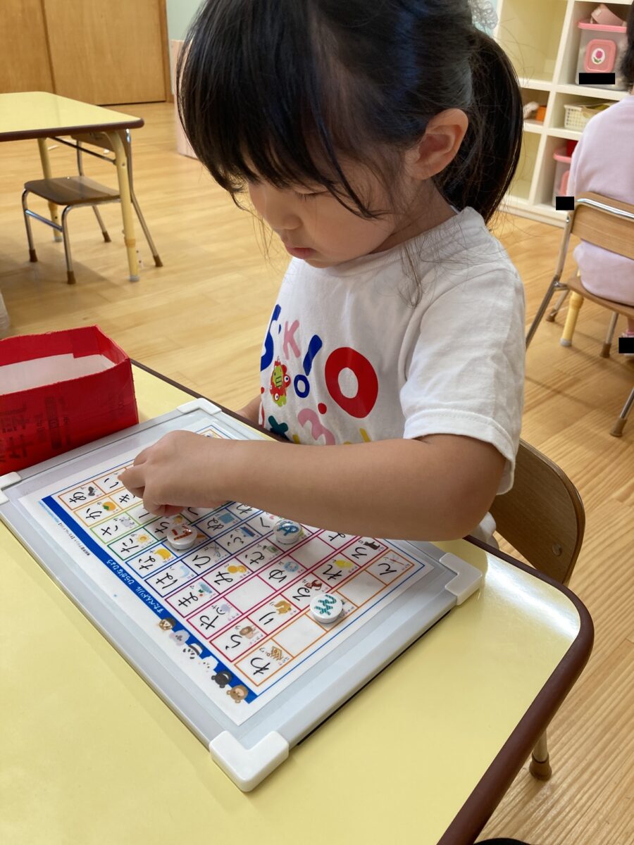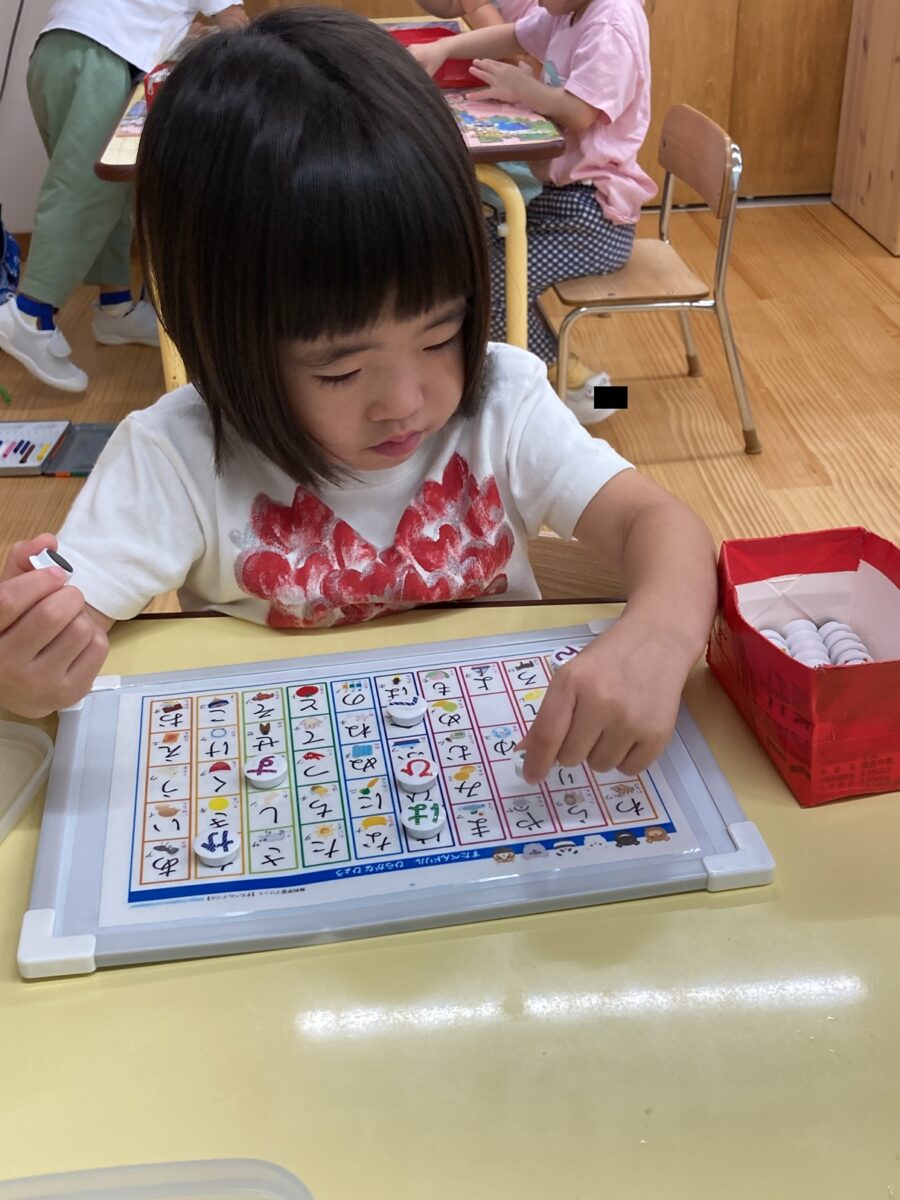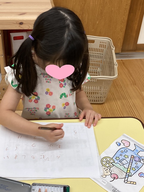 最近かりん組の子どもたちはひらがなに興味を少しずつ持ち始めています