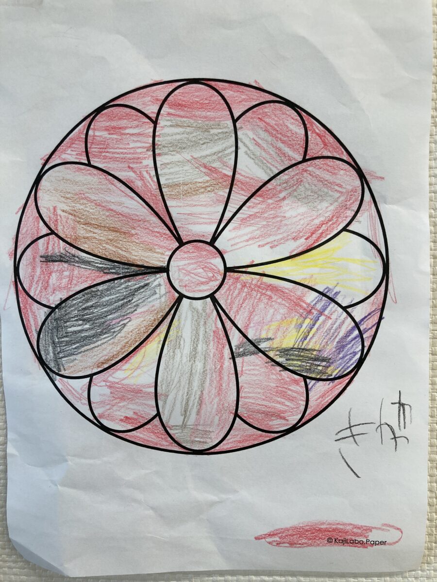 「せんせい、みてー!」裏紙に映っている文字をなぞったところを見せてくれました