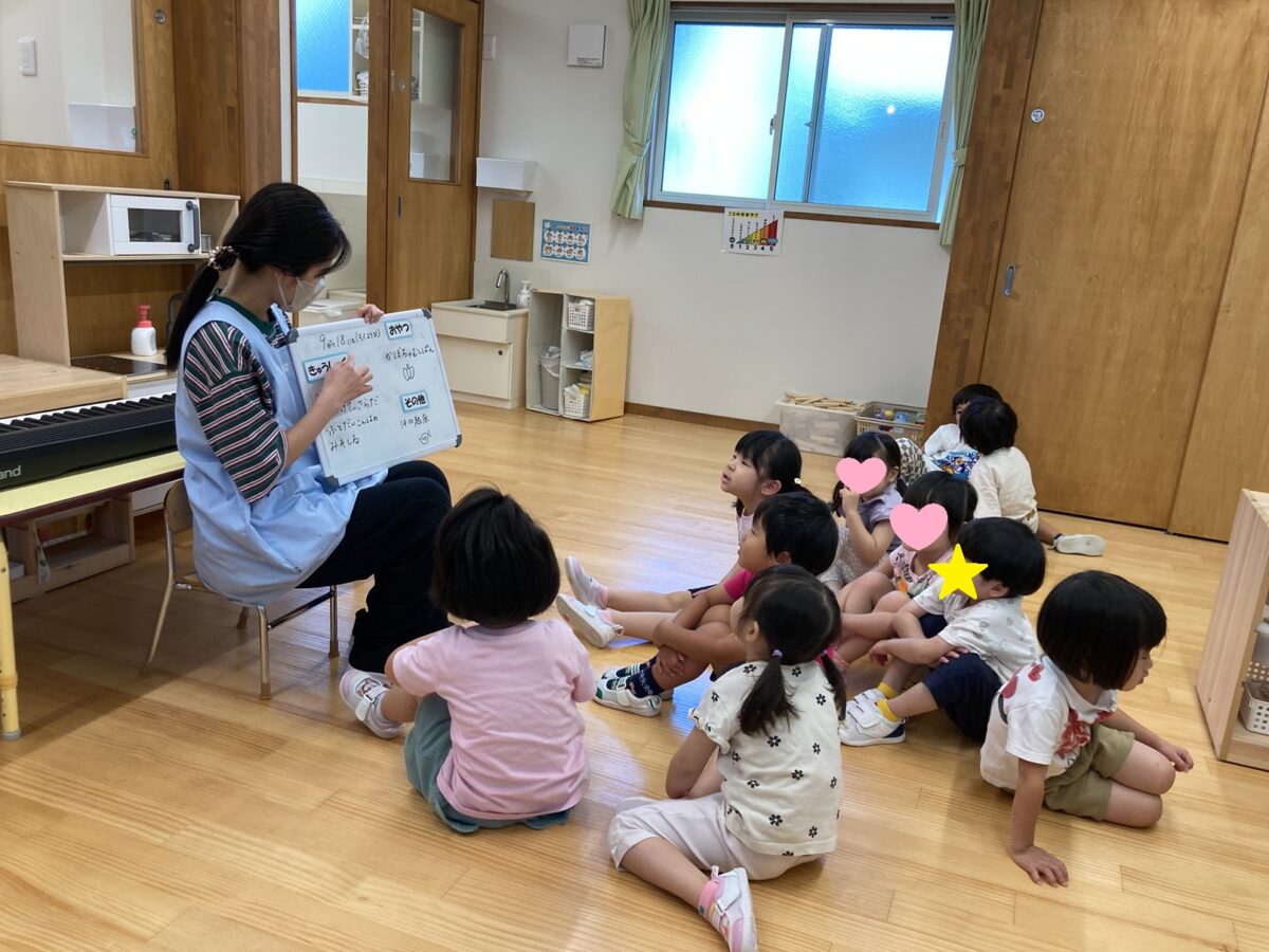 こんにちは!はな保育園ほりた通のかりん組(3歳児)です