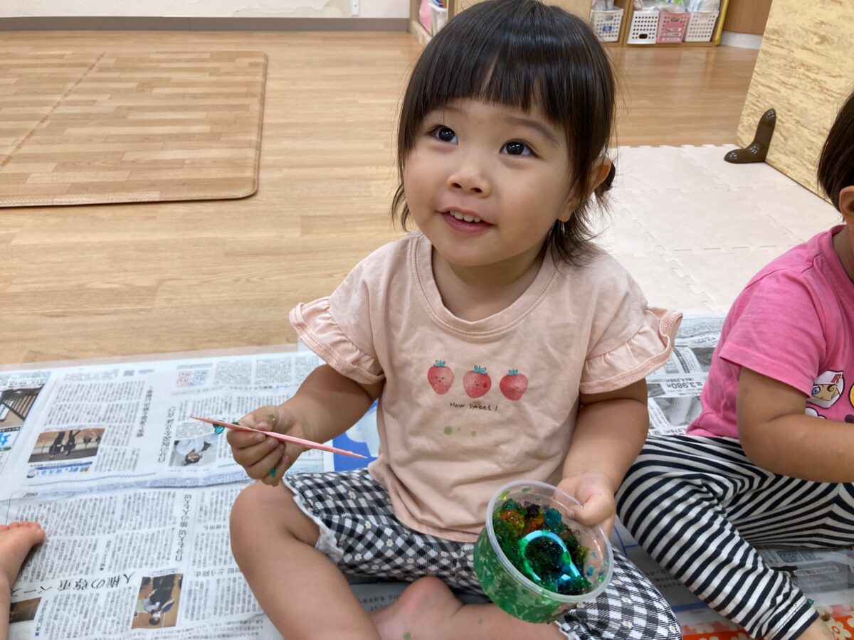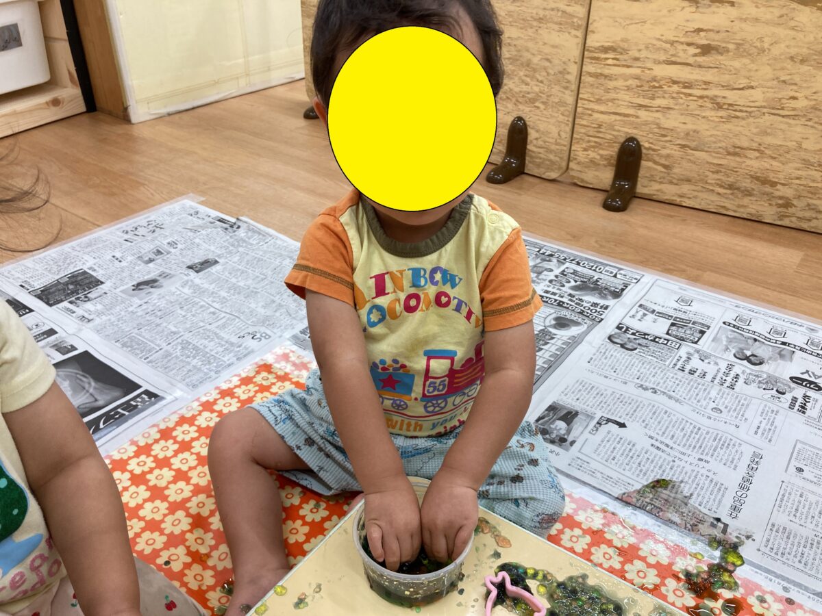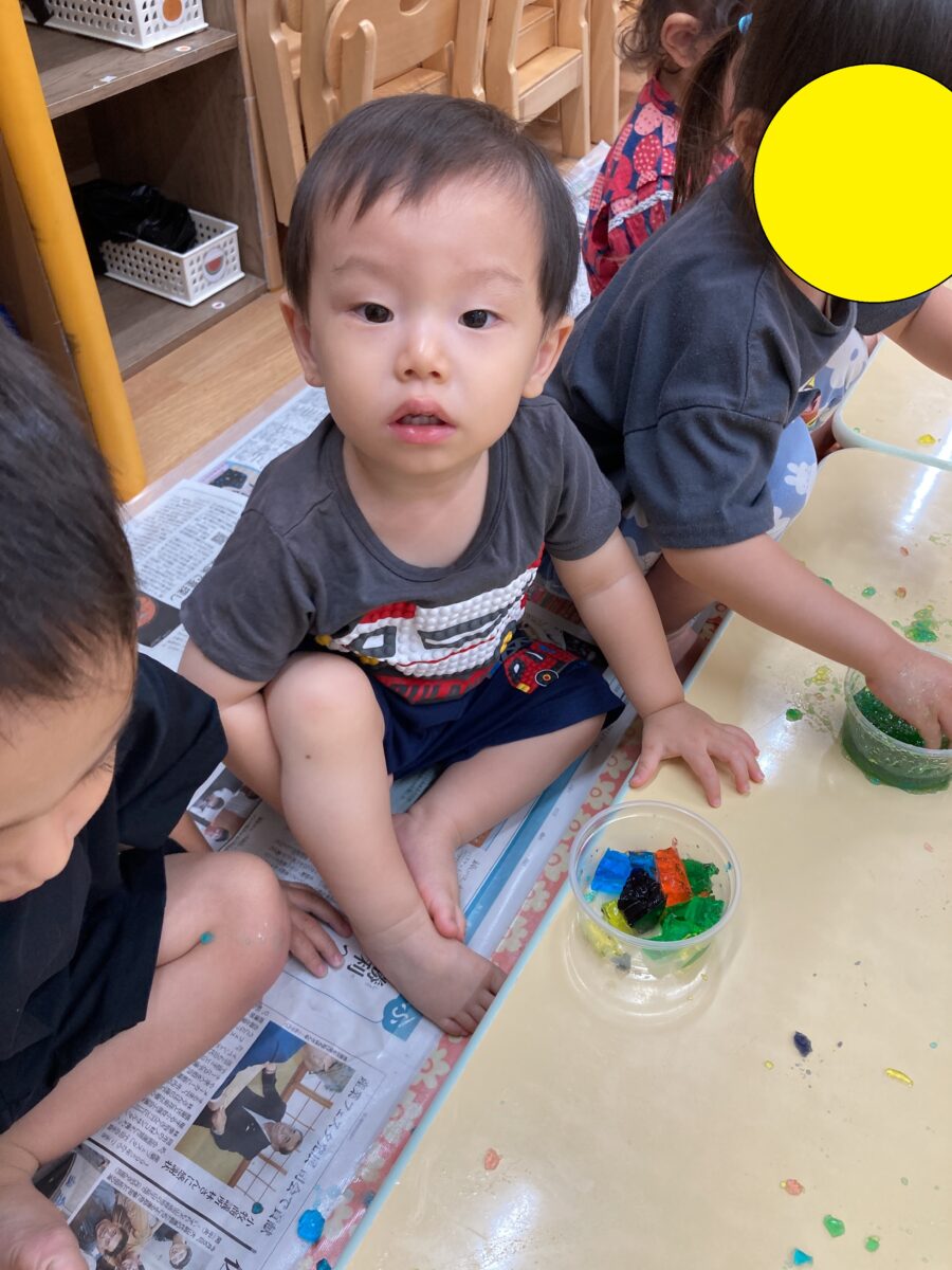 ひまわり組さんと一緒に寒天遊びもしました!