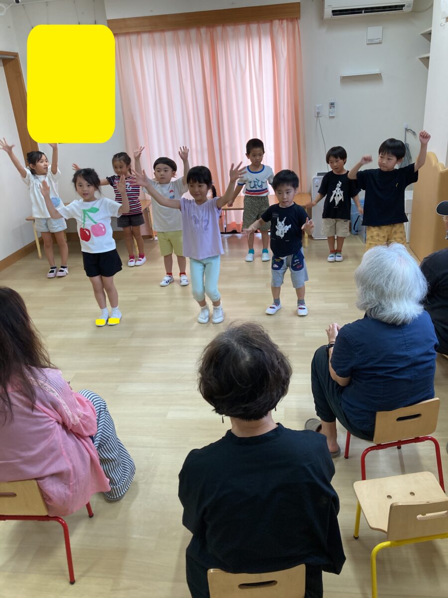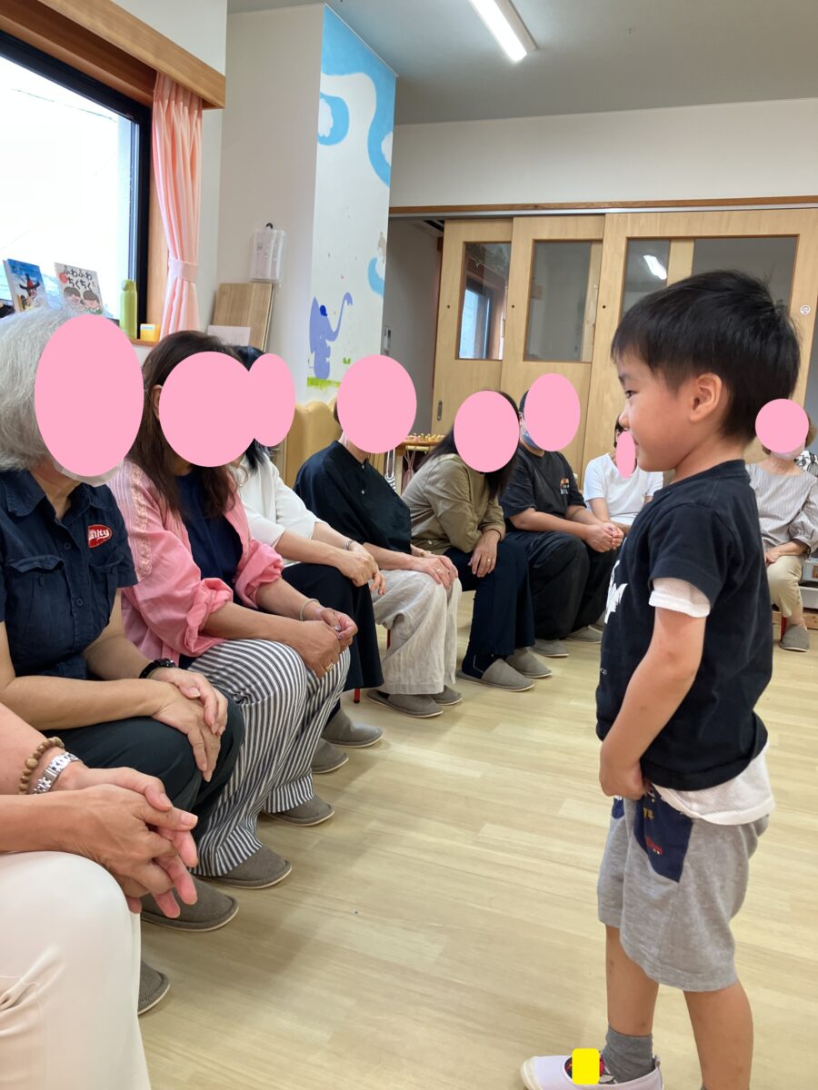 そんな元気いっぱいのさくら組では先日、敬老の日が近づいていることもあり「おじいさまおばあさまの会」が開催されました❕