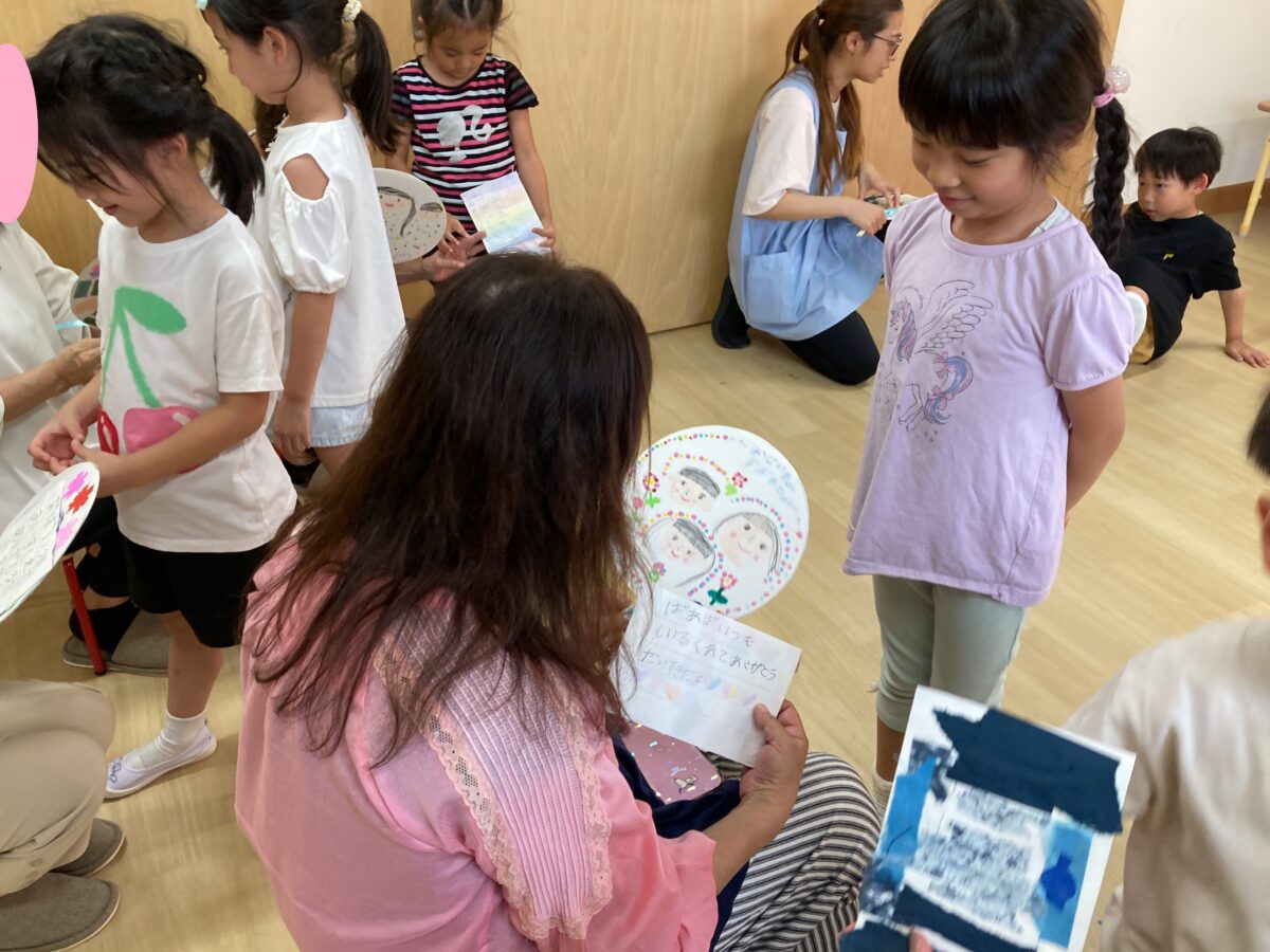 そして、最後はさくら組のみんなが心を込めて作った手作りうちわをプレゼントしました😊💕