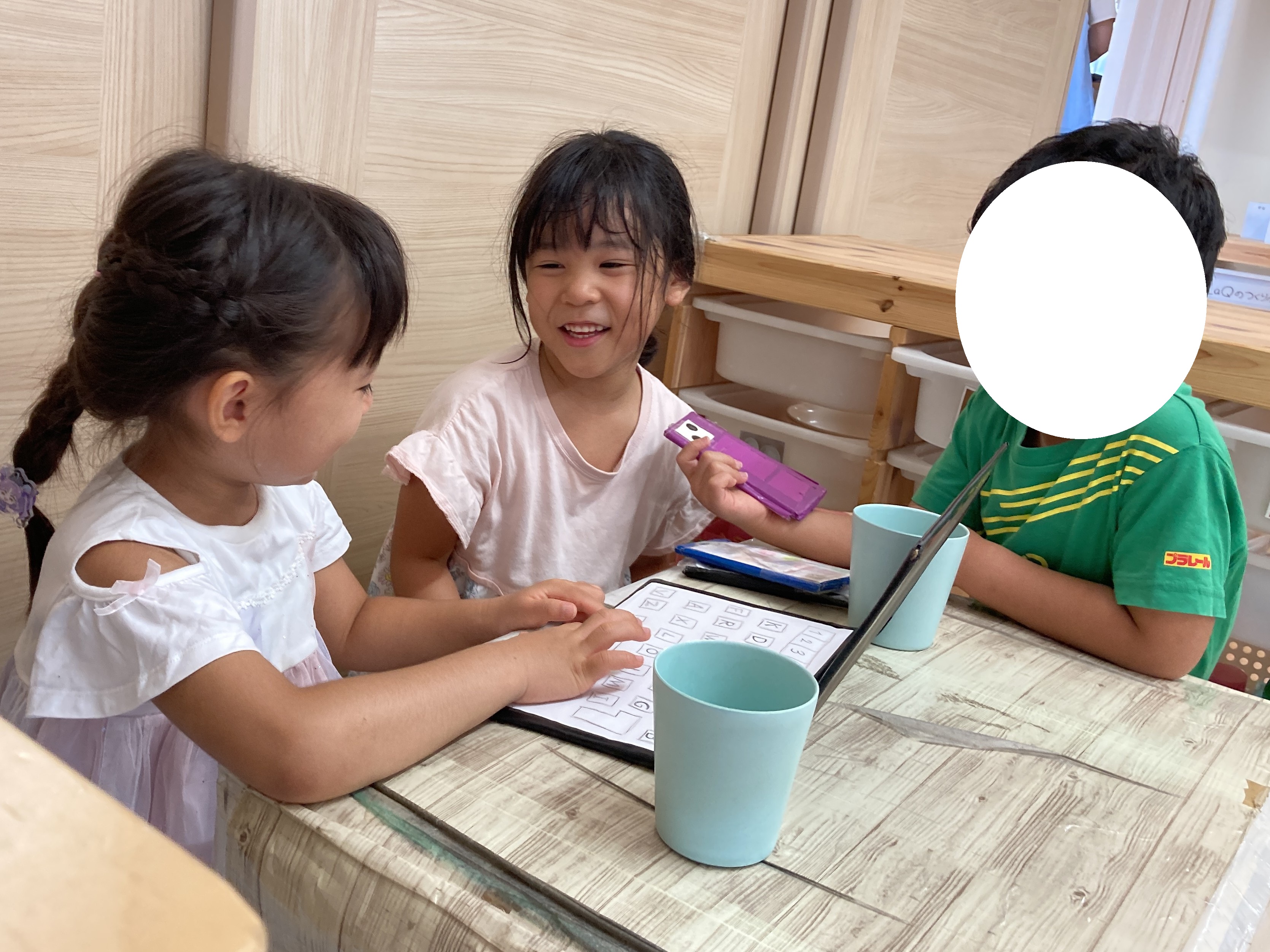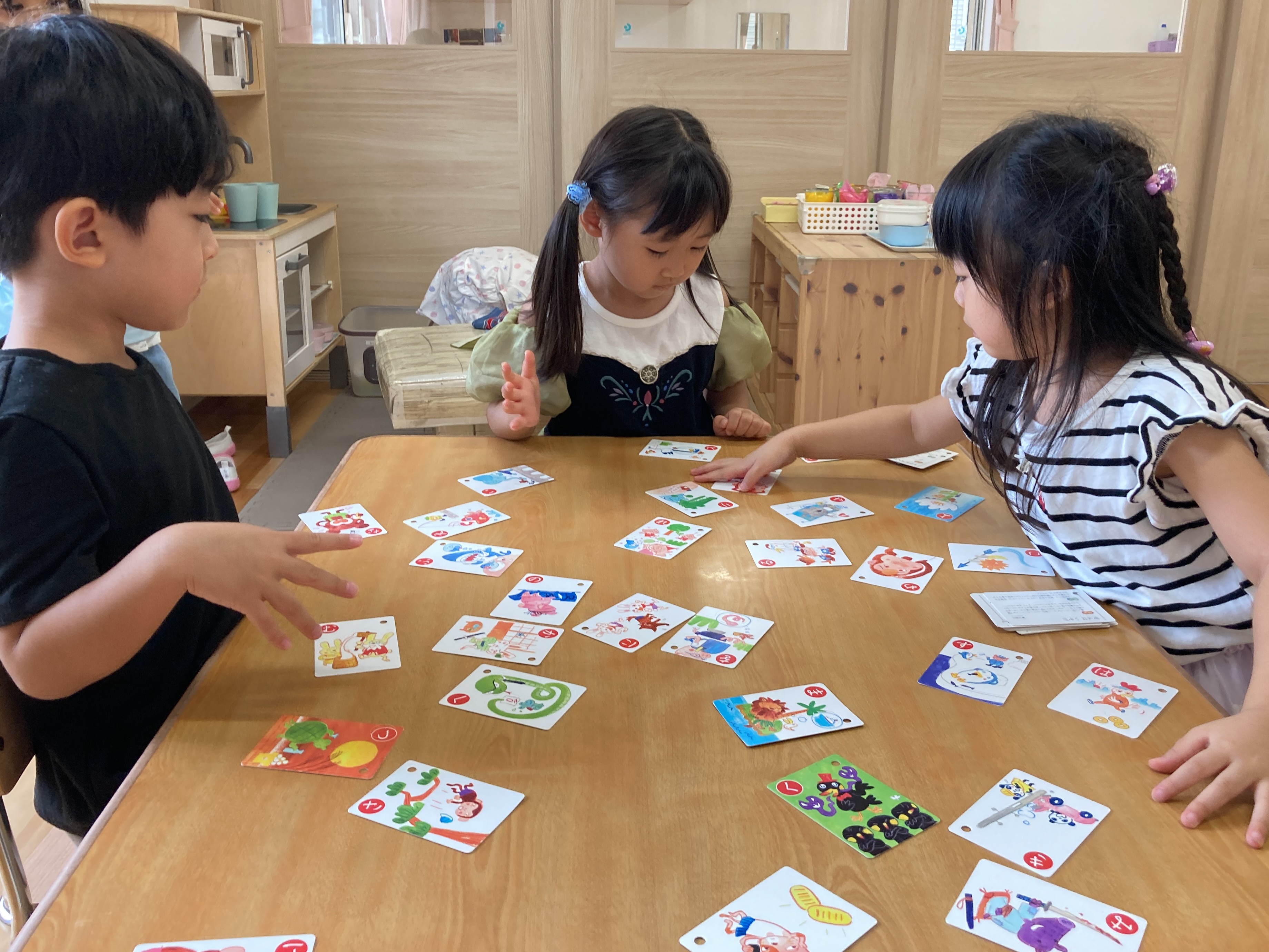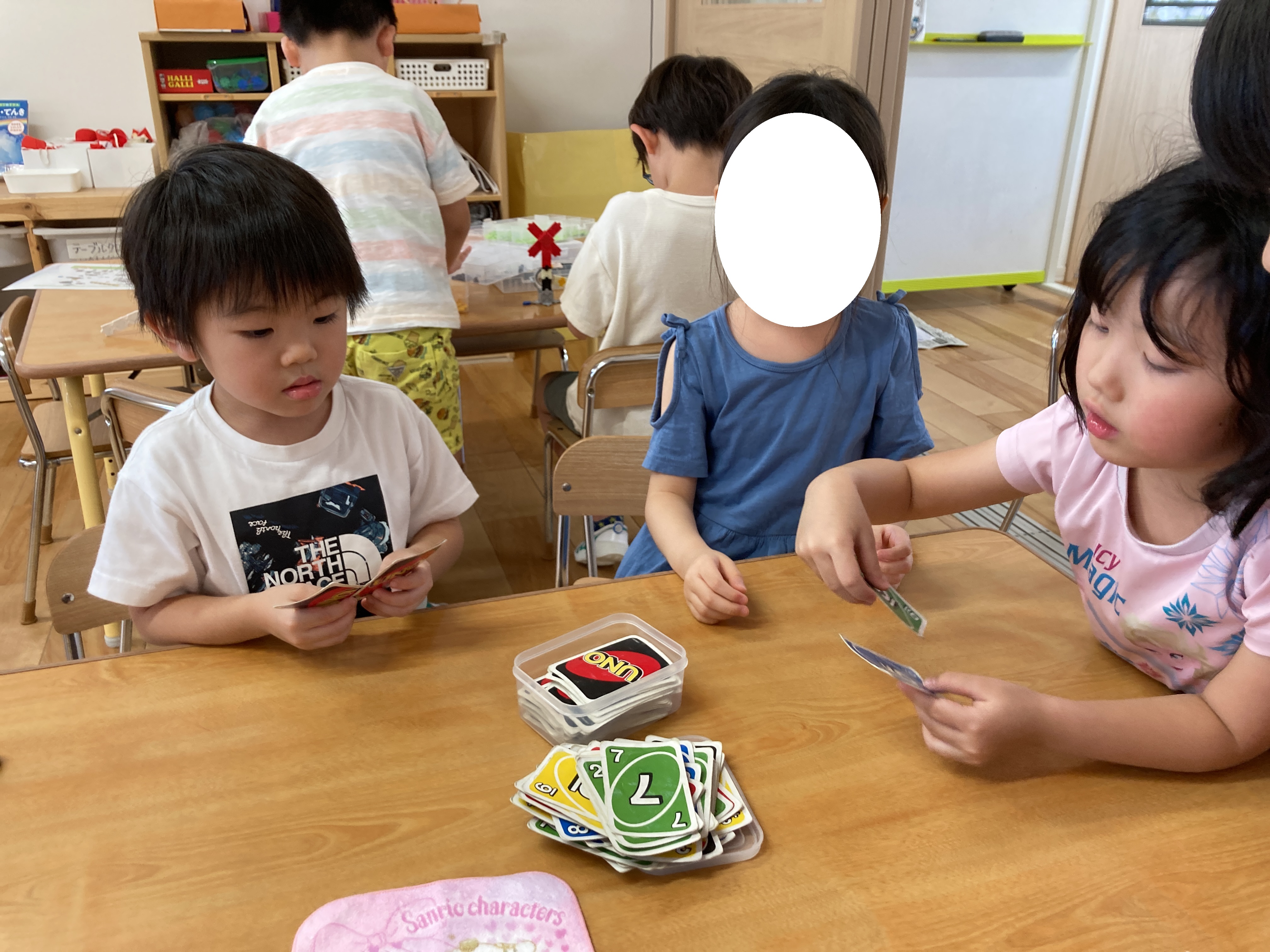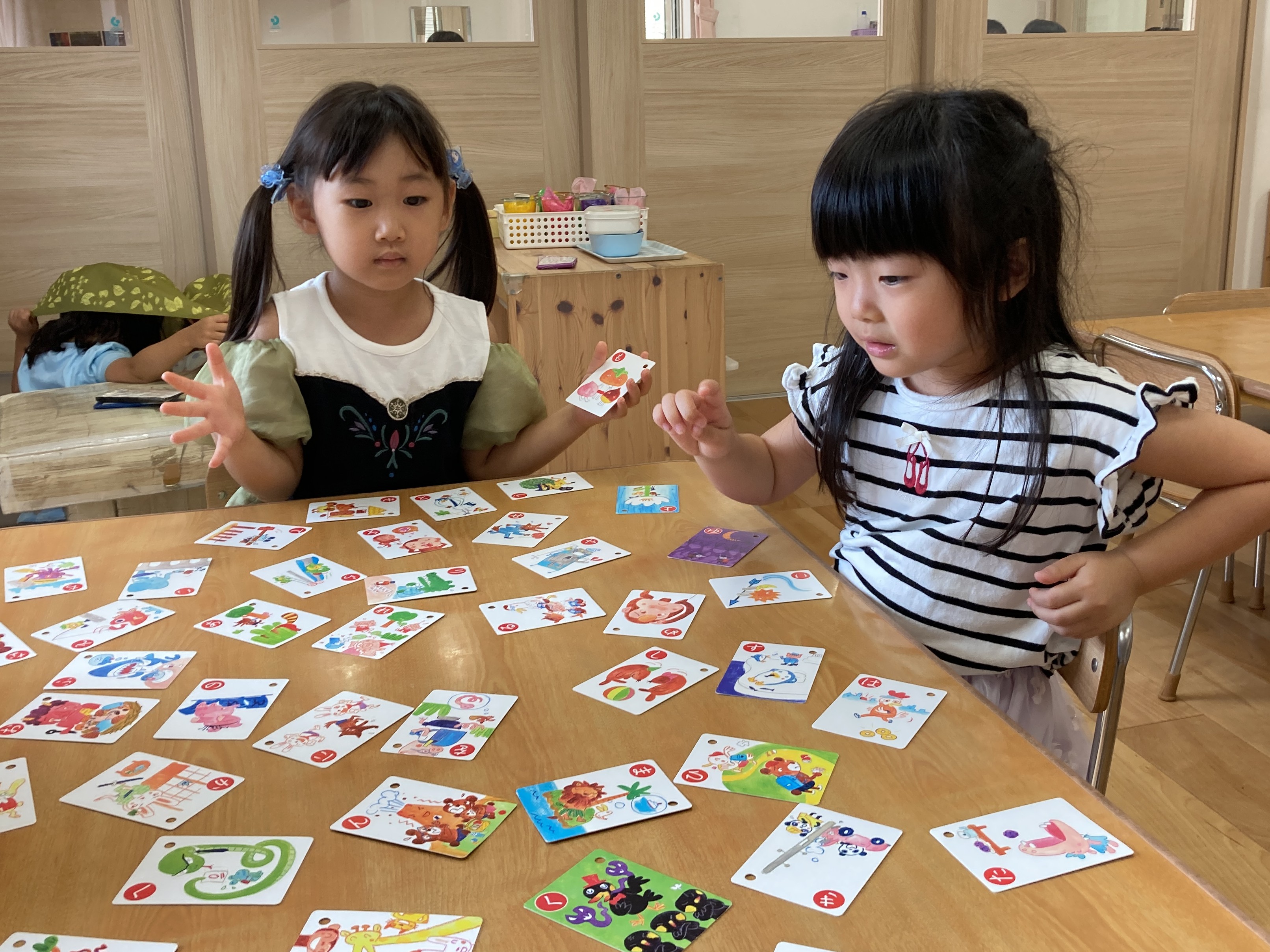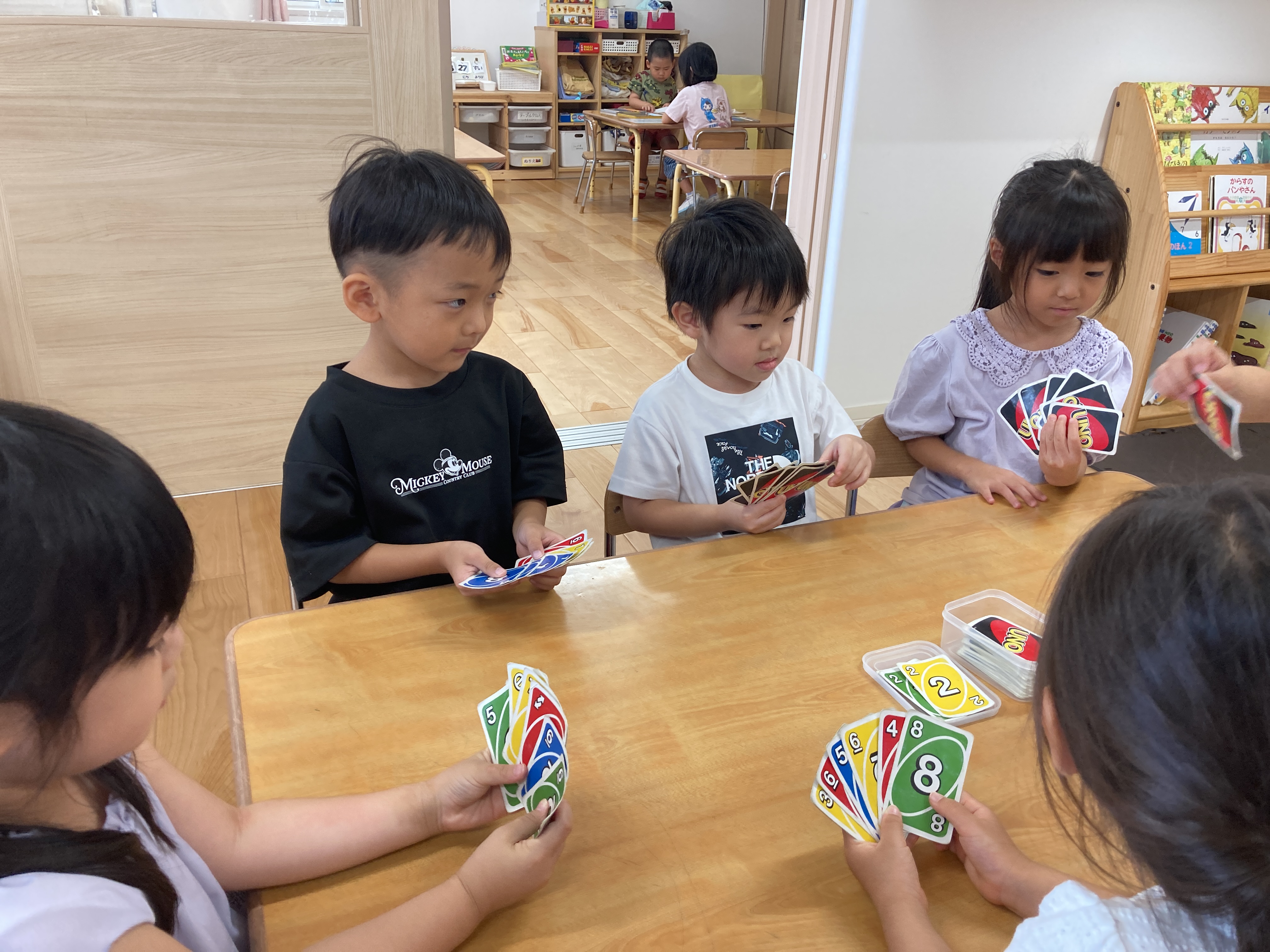 「先生、UNOやってみたい!」「かるたやりたいな~」と、年長クラスの遊びに憧れを抱いている様子の子ども達。