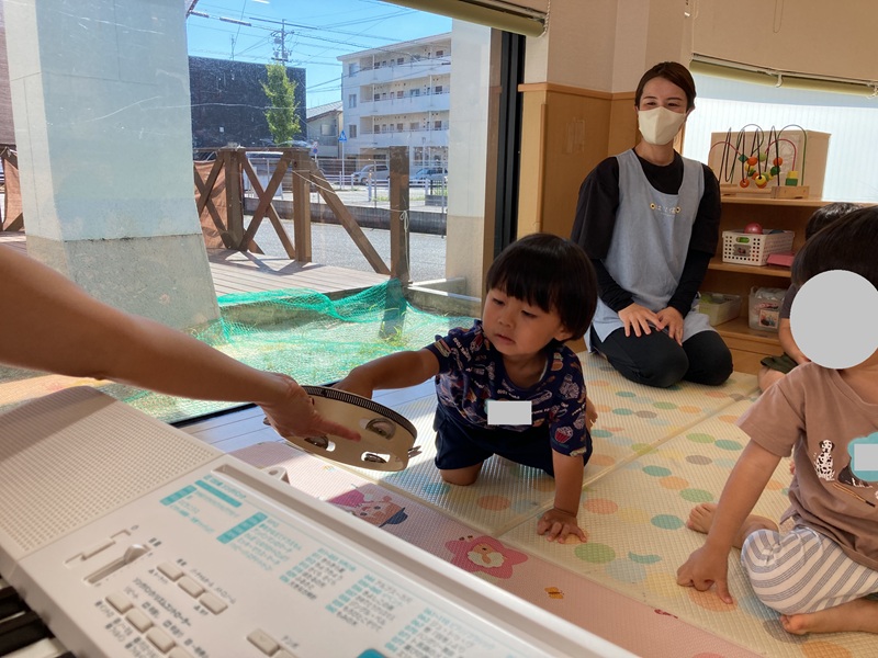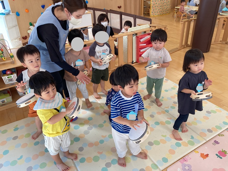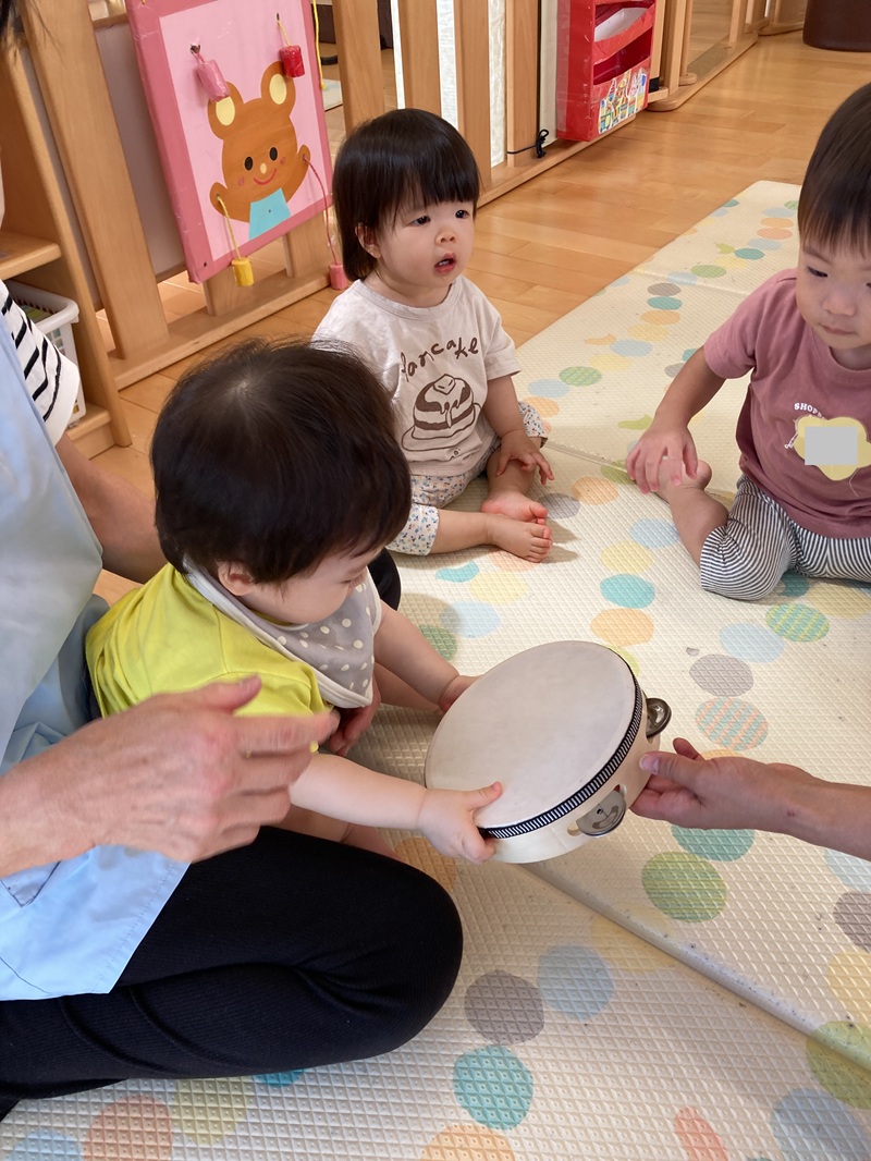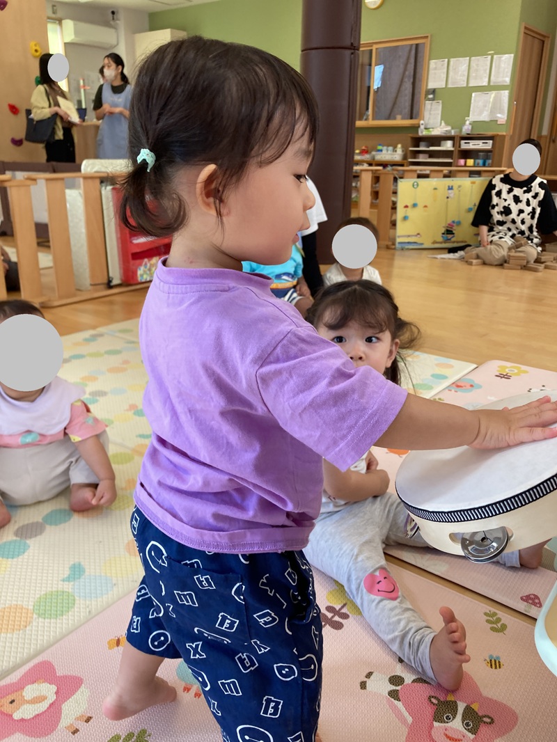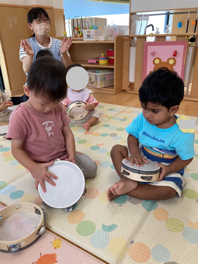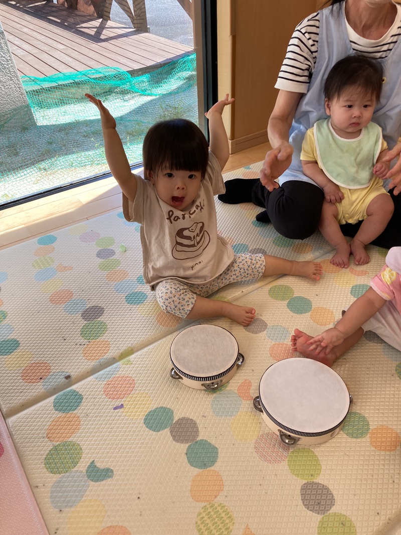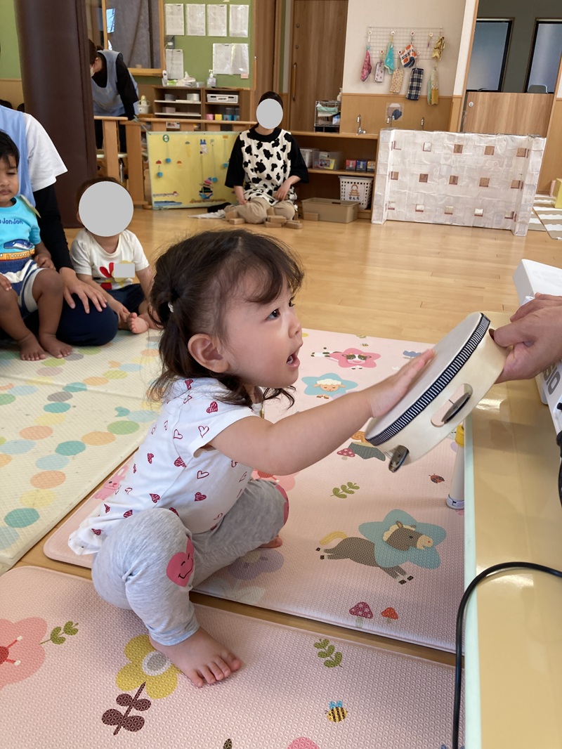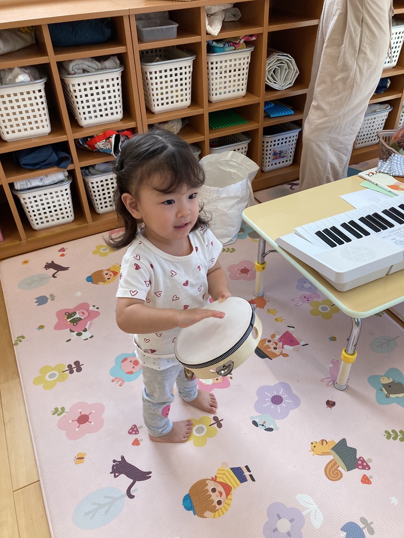 次はタンバリンを持って曲に合わせて叩いたり振って音を出してみたり