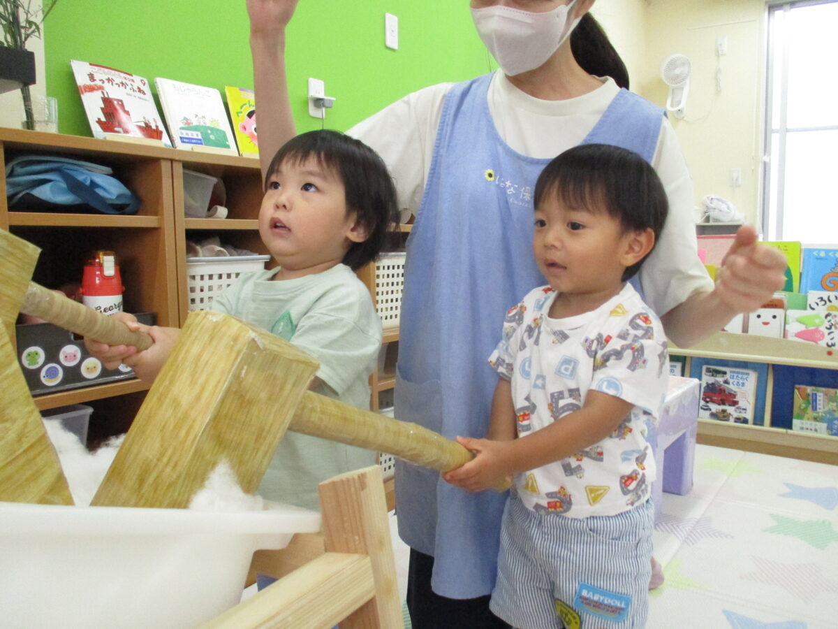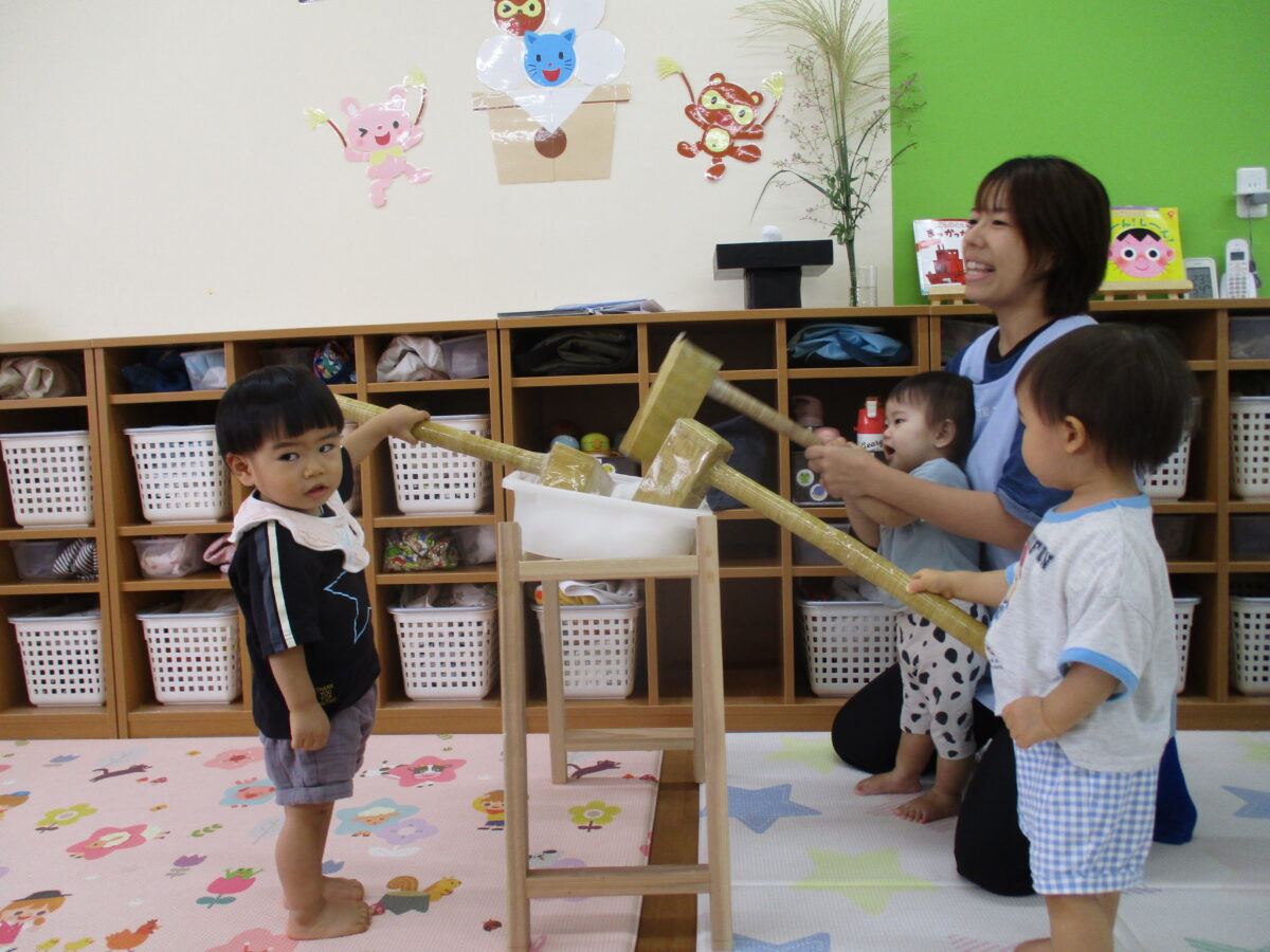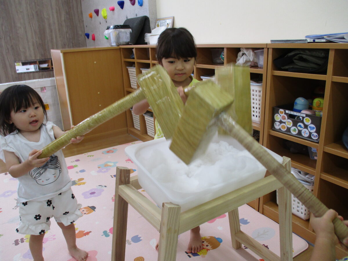 みんなで「ペッタンペッタンペッタンコ」とリズムに合わせてお餅つきをしました!
