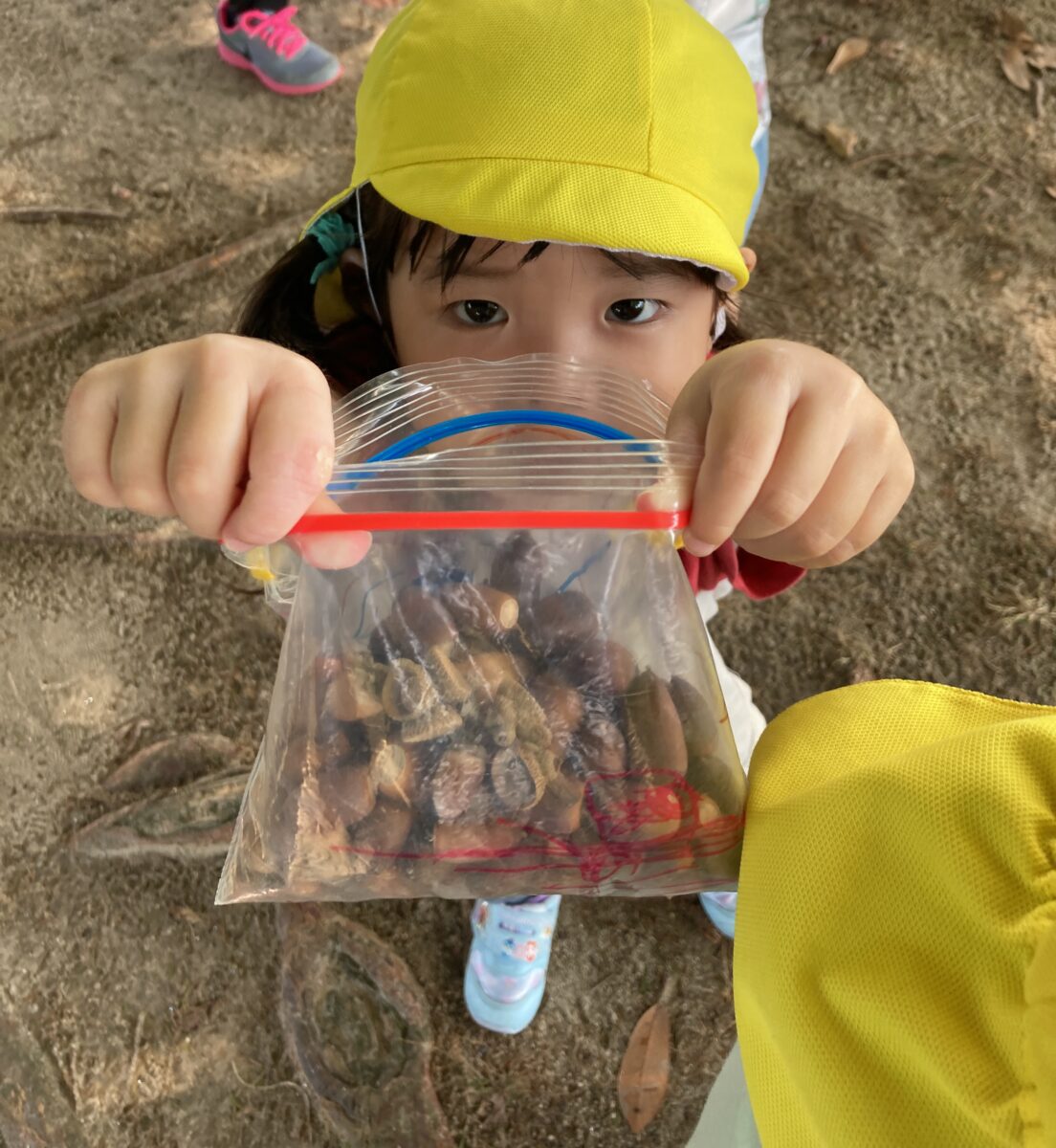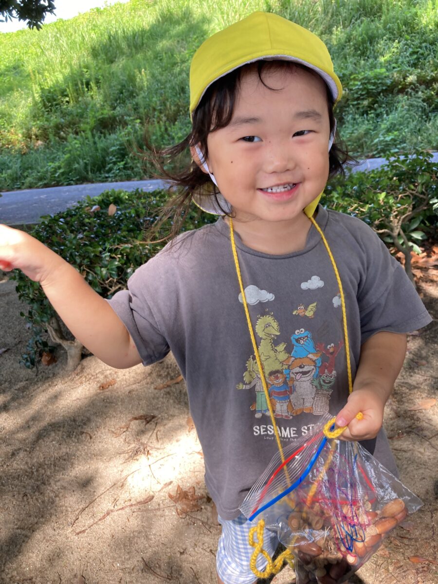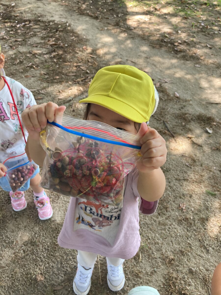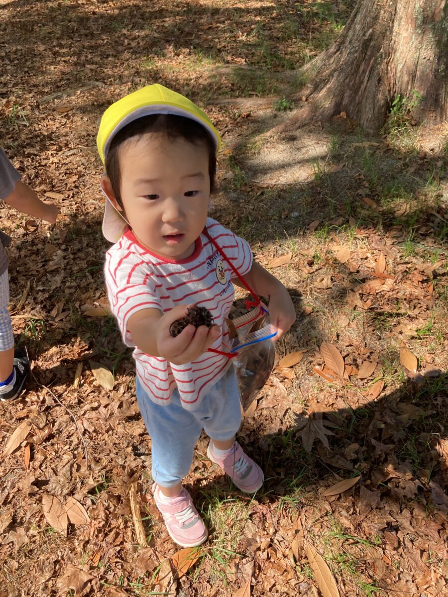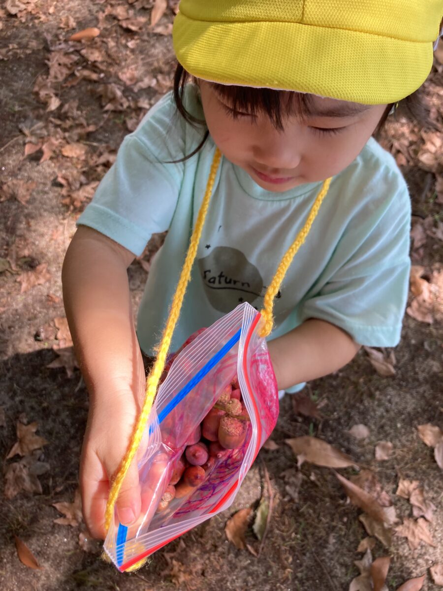「どんぐりころころどんぶりこ~♫」とお歌を歌いながら、みんなで持って帰りました🏡