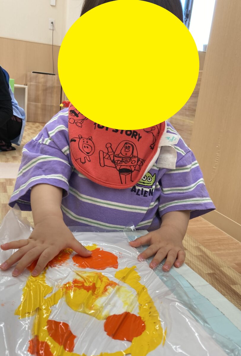 絵の具の感触をビニール越しに感じながら「ぺたぺた」