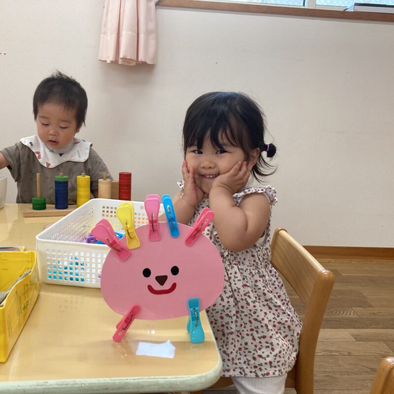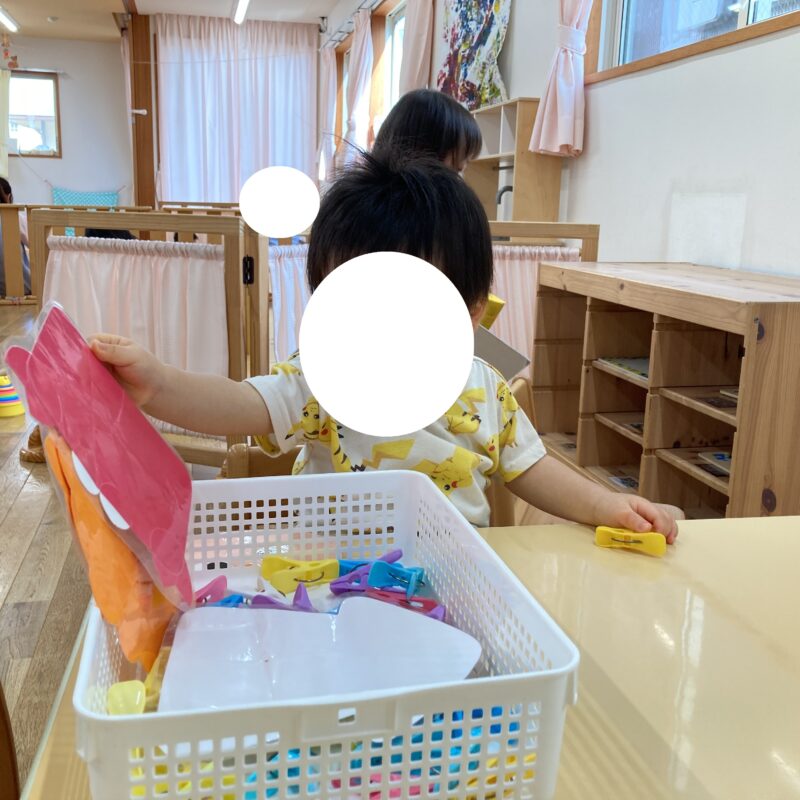 イカやタコ、うさぎのお顔に洗濯ばさみをつける遊びも人気です!