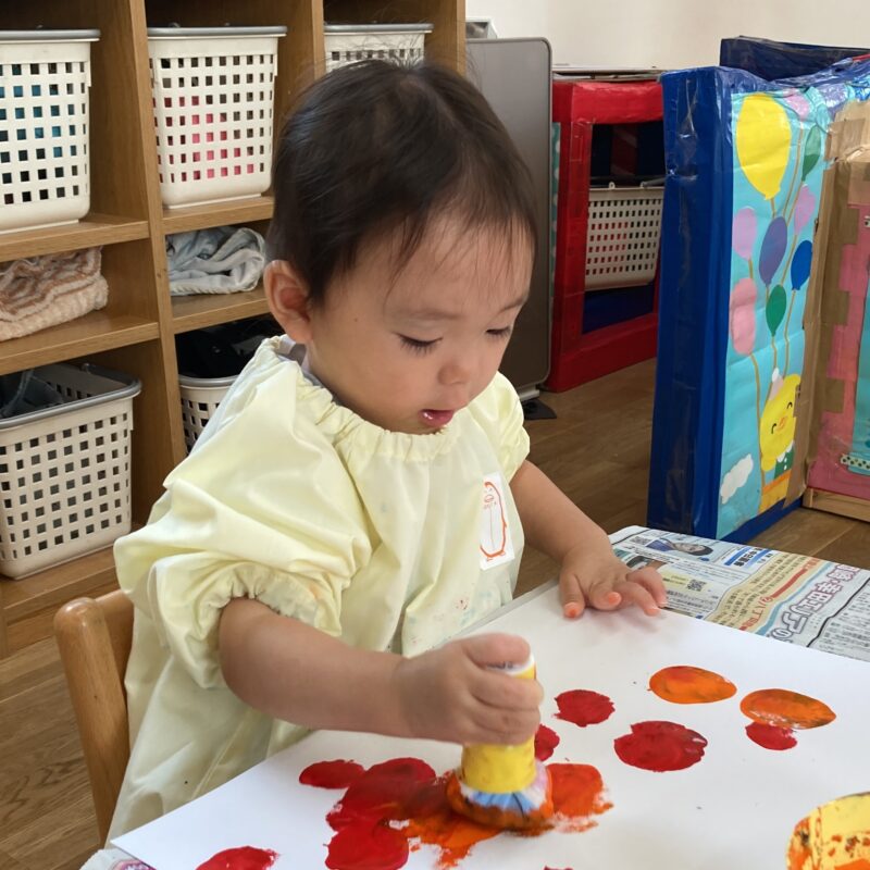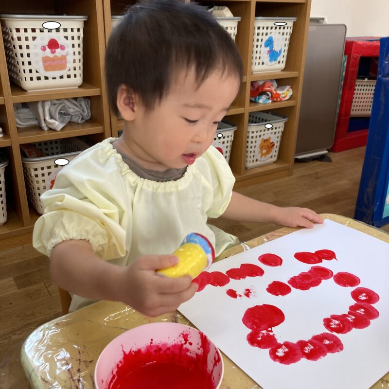 保育士が赤色はアンパンマンのほっぺみたいだね!と声を掛けると、「アンパンマン!」と楽しそうに答えてくれる姿も見られました