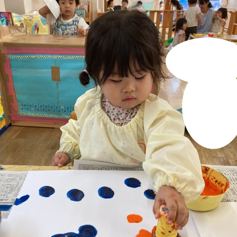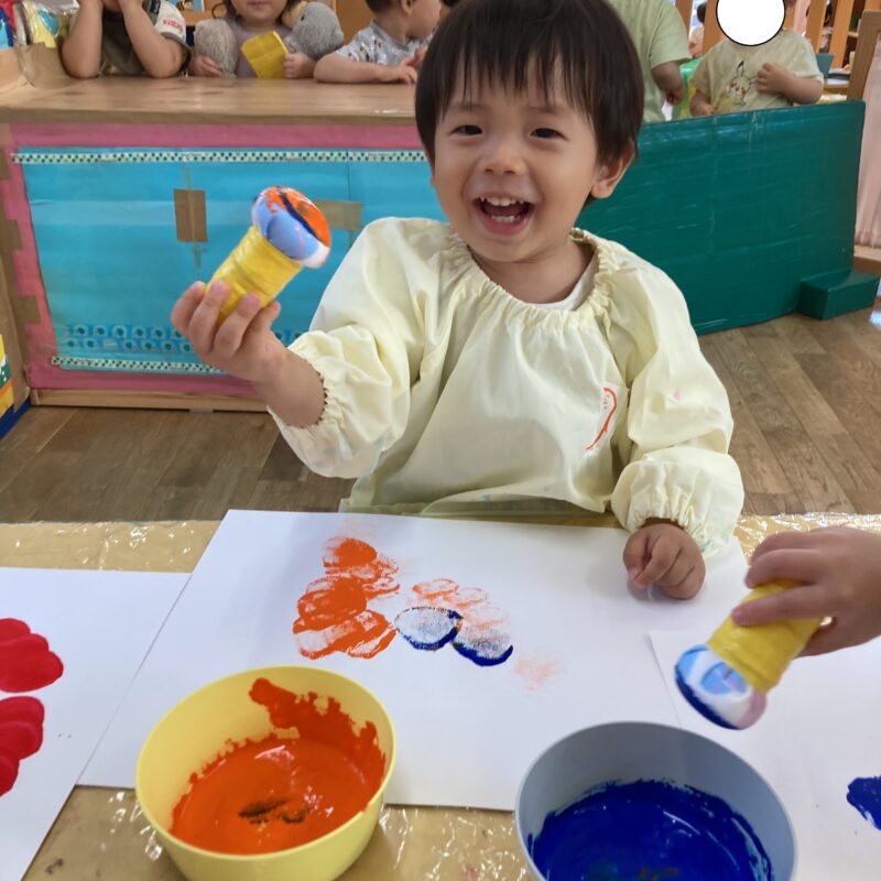 タンポに絵の具をつけてスタンプ遊びをしました!