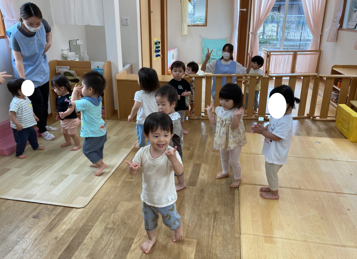 「バナナくんたいそう」や「ジャングルぐるぐる」など、音楽に合わせてノリノリで踊っています