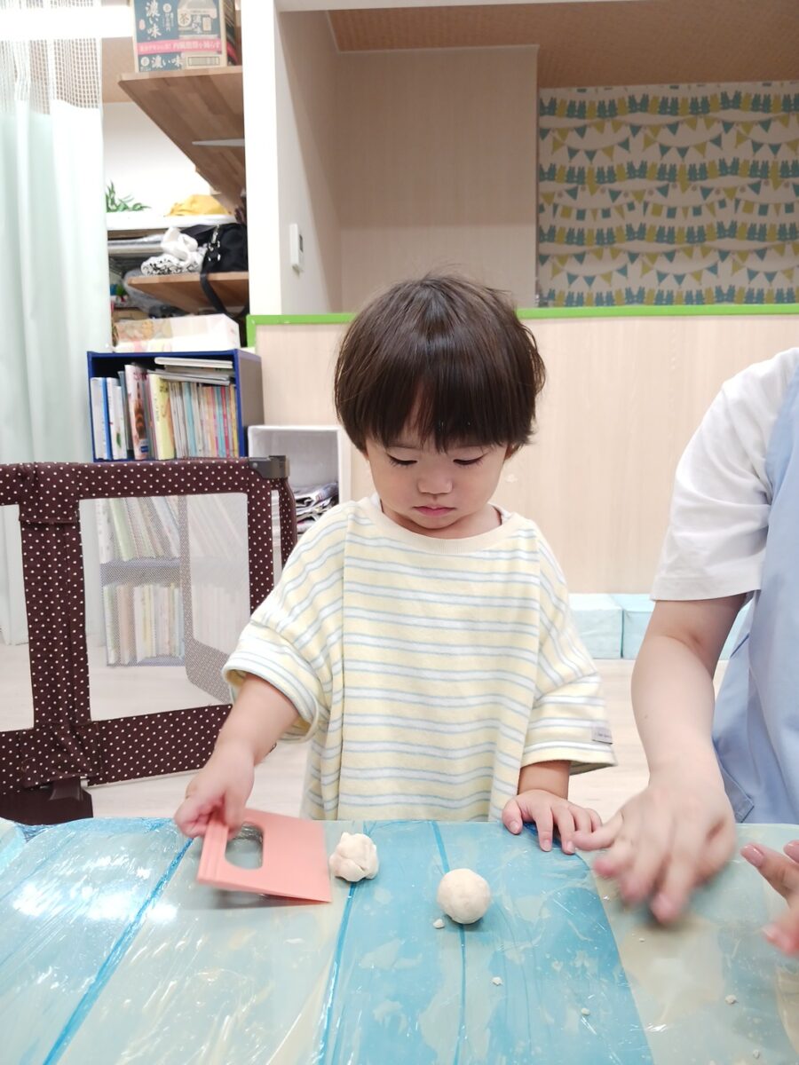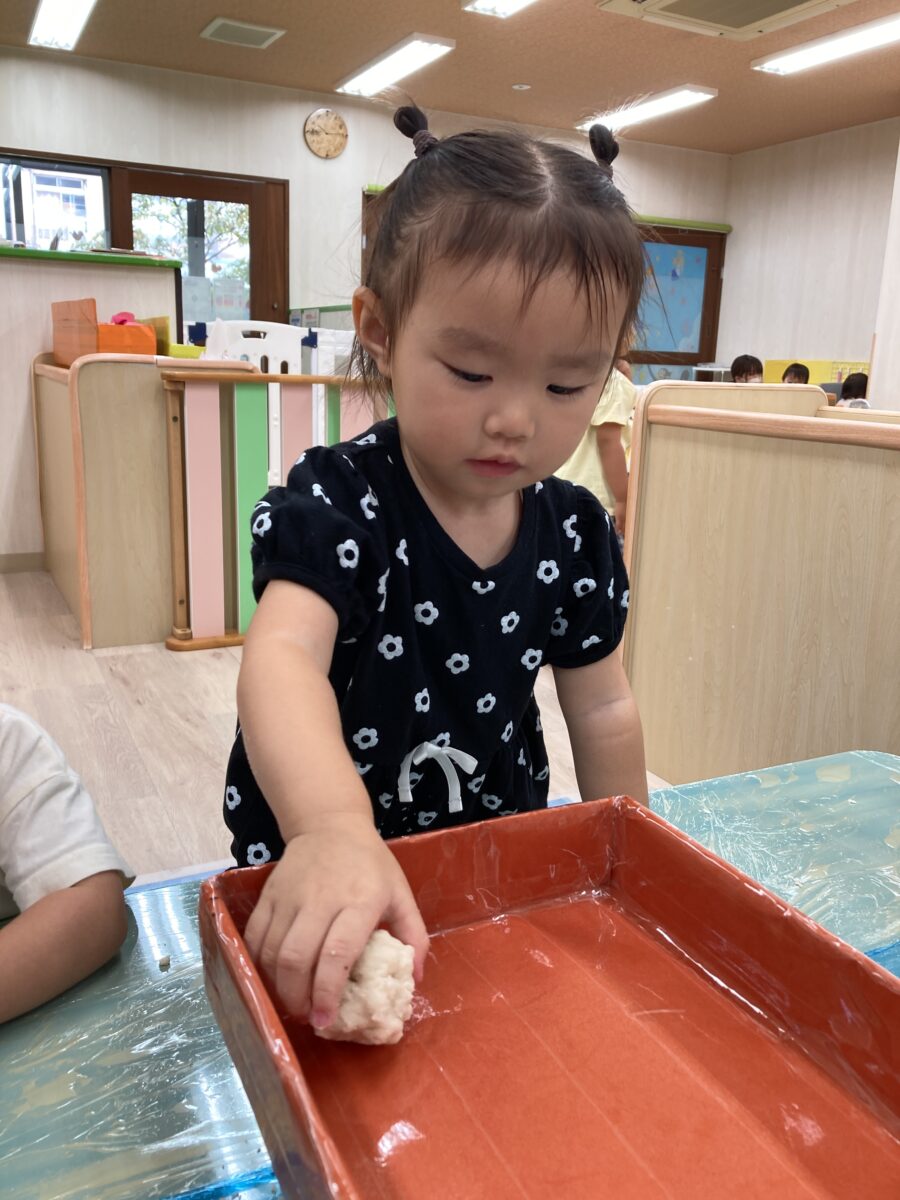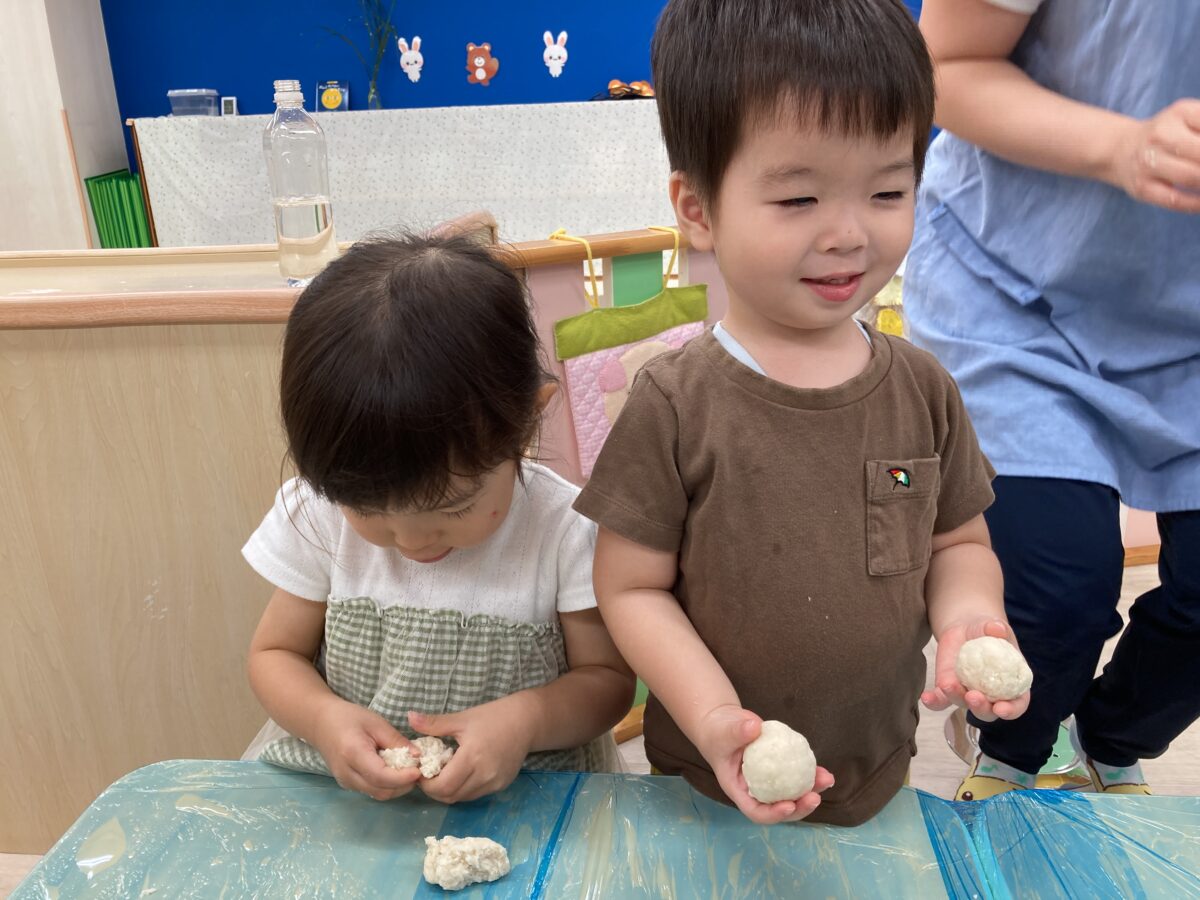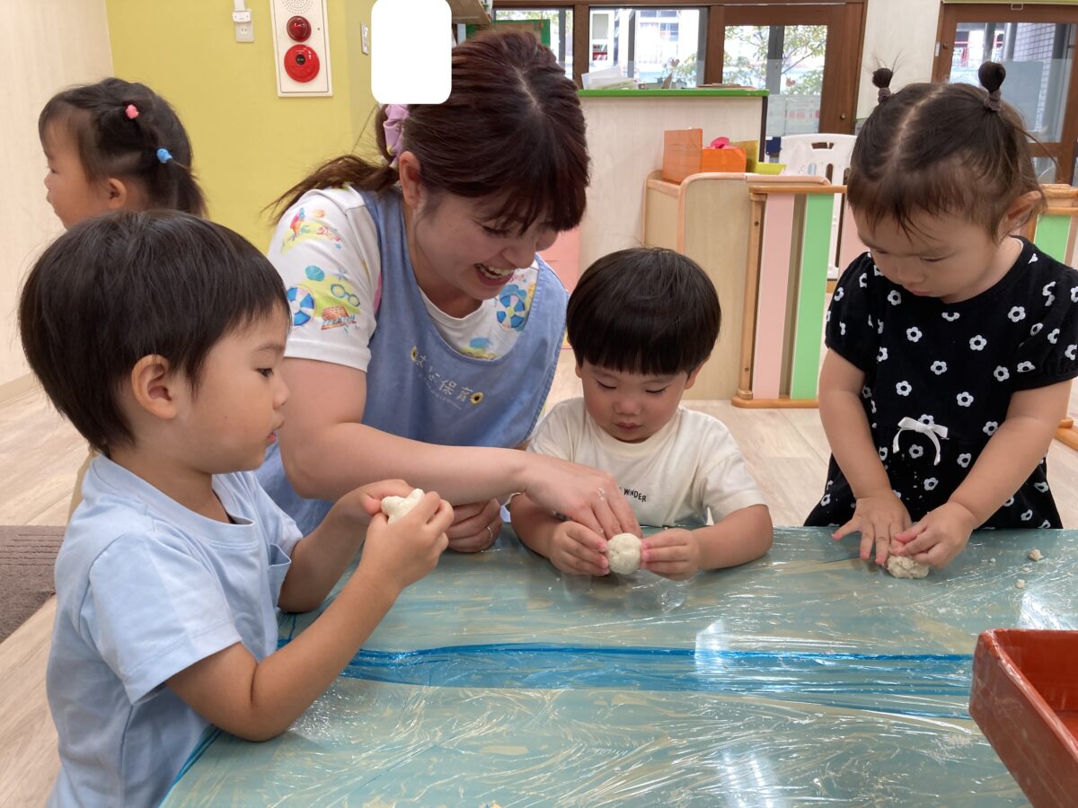 作ったお団子だよ~!」と嬉しそうに保育士に伝えている姿も
