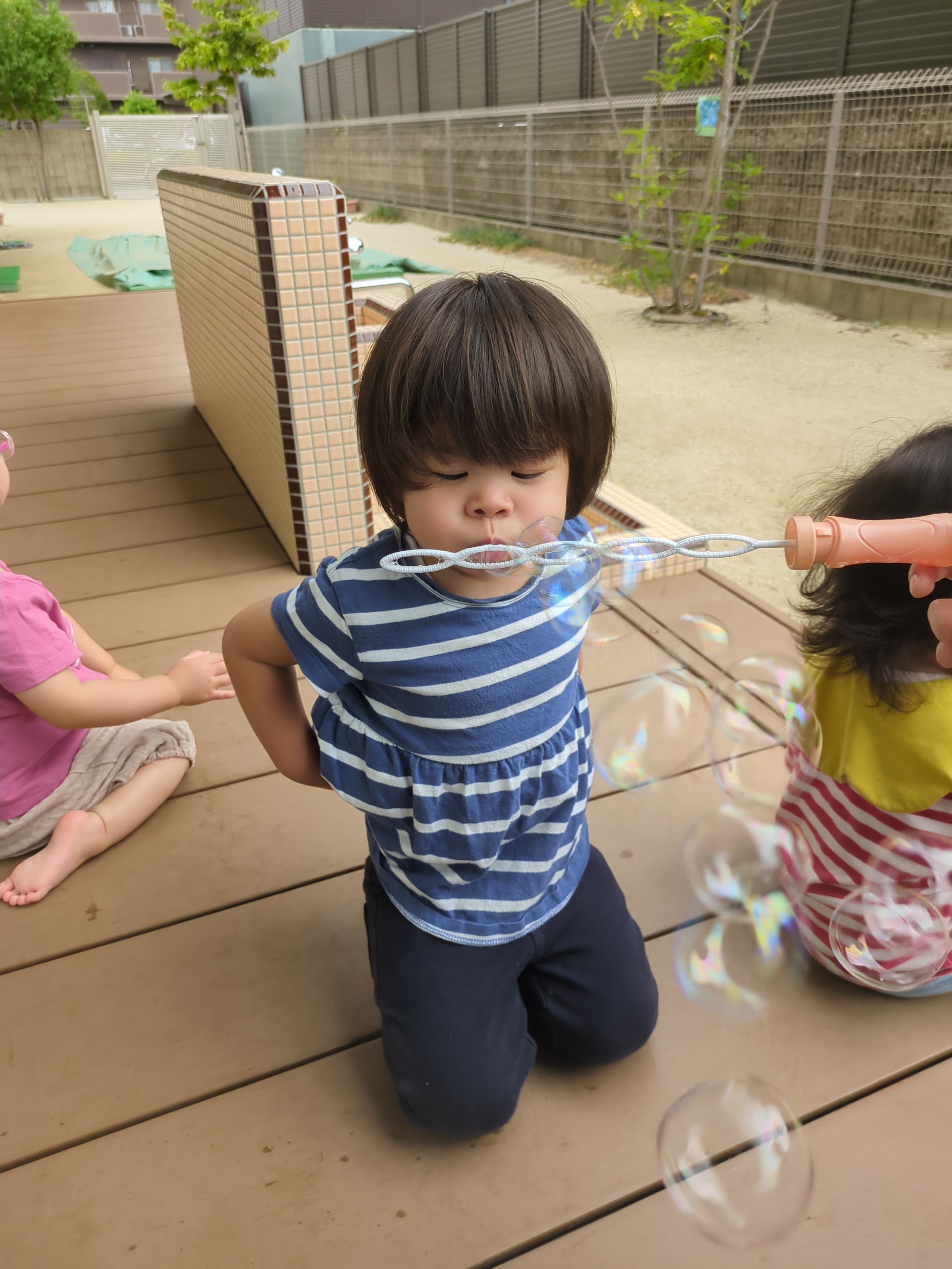 そよそよと吹く風を感じながら、シャボン玉で遊びました。