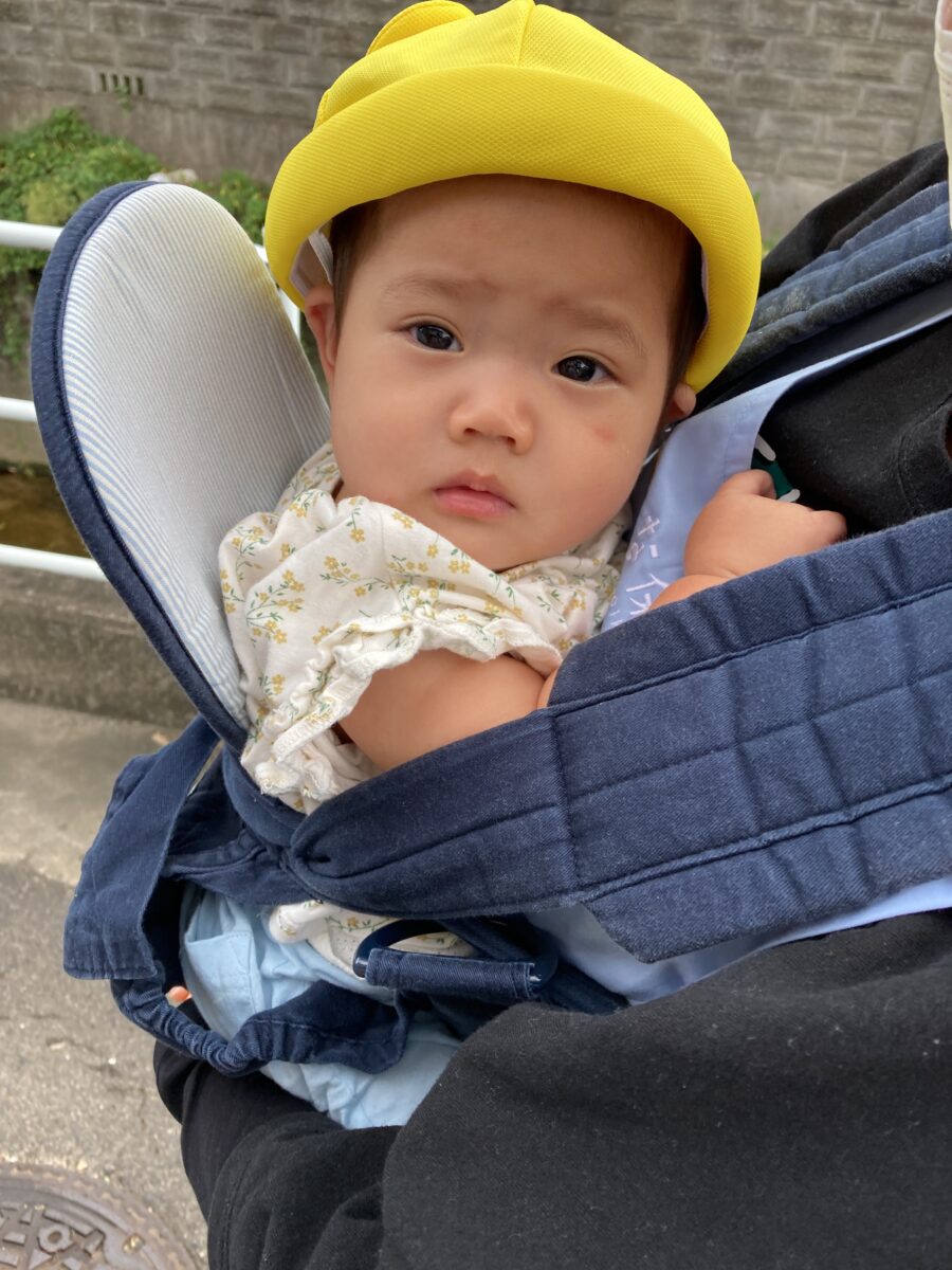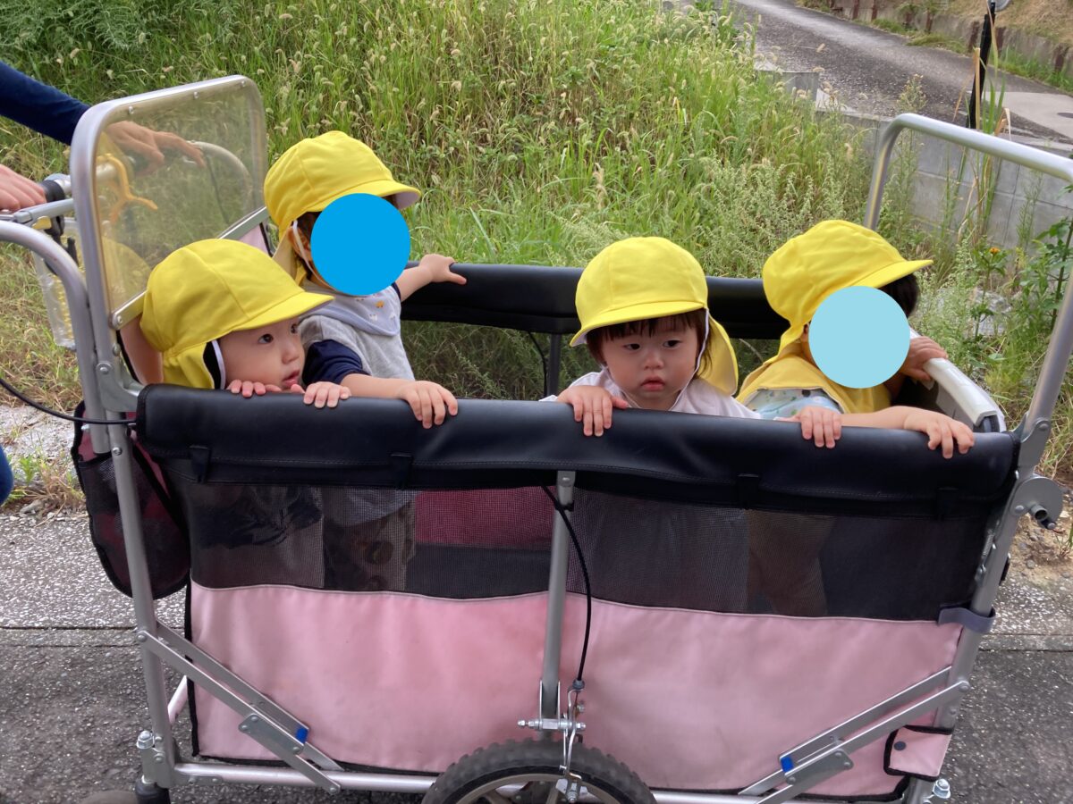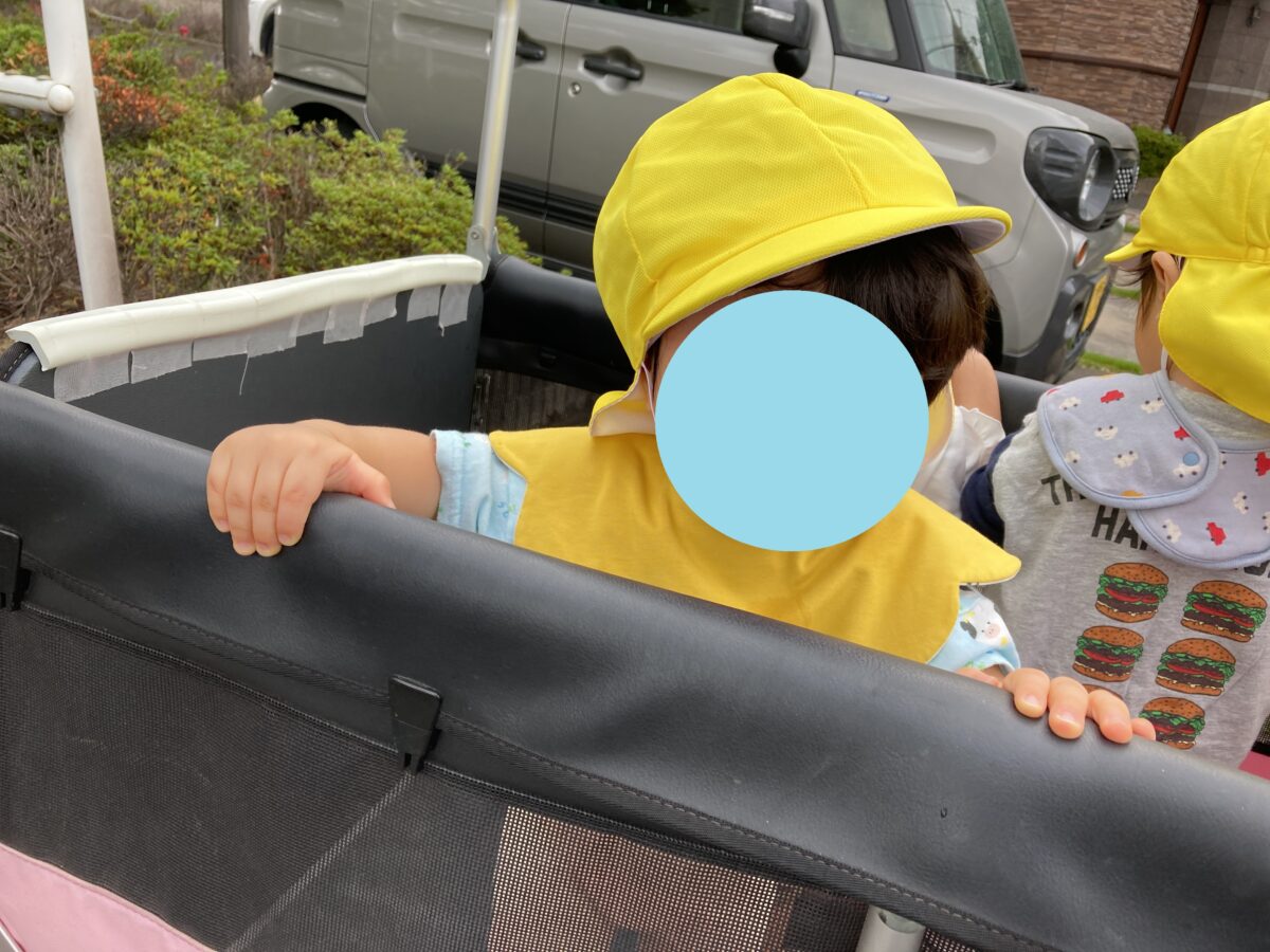 道中はカメさんを見たり、車を見つけて指差ししてお散歩を楽しんでいました。