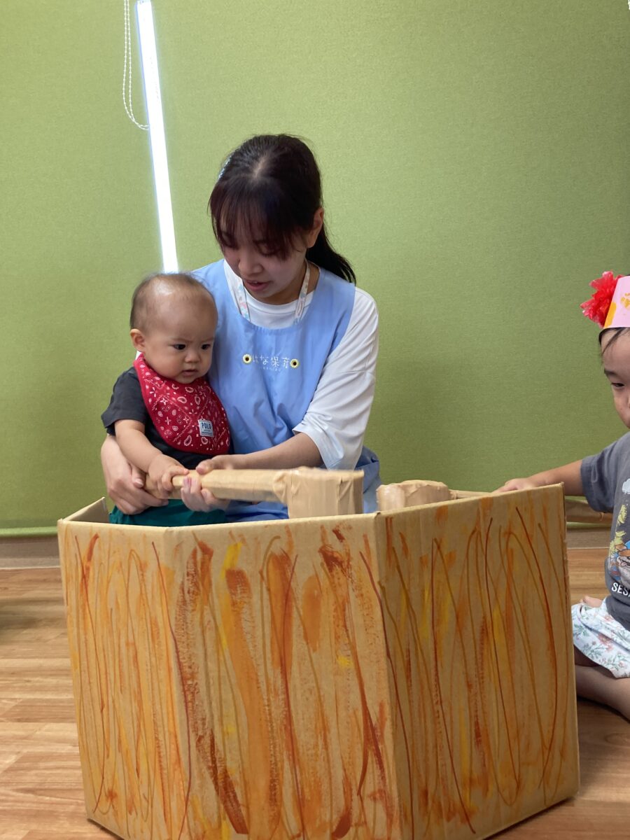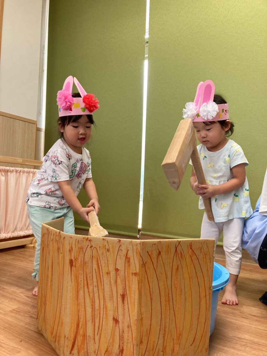 一人ずつ杵を持って「えいっ!えいっ!」と上手に振りかざしていましたよ![]()