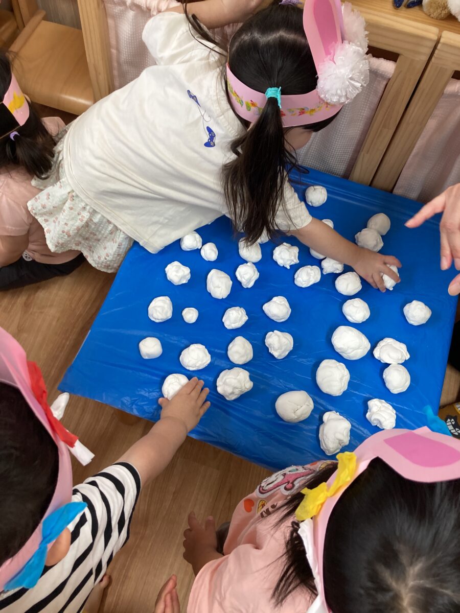 会の間に被るウサギの帽子を一人ずつ作った為、当日は可愛らしいウサギがお部屋にたくさんいました🐰