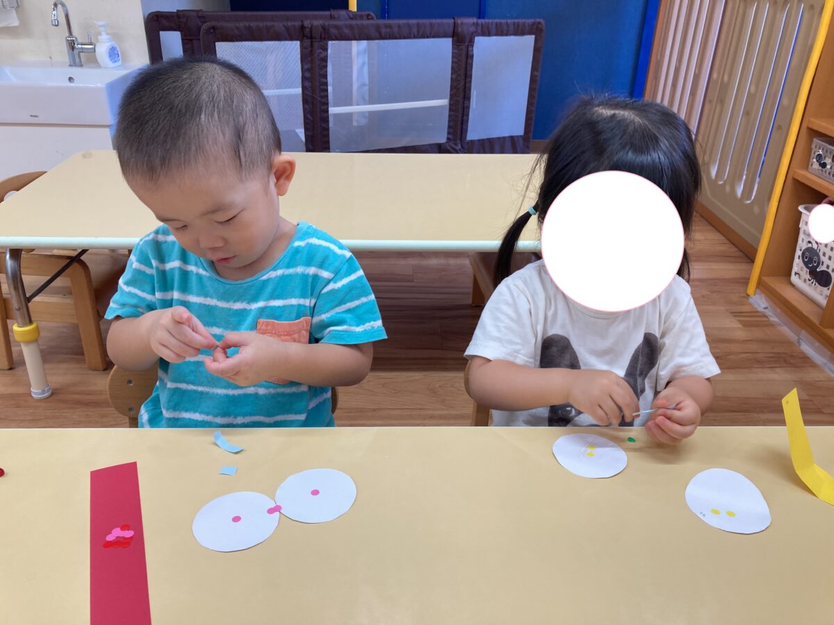 なかには口や鼻を胴に書いたり貼ったりして表現する子も・・・