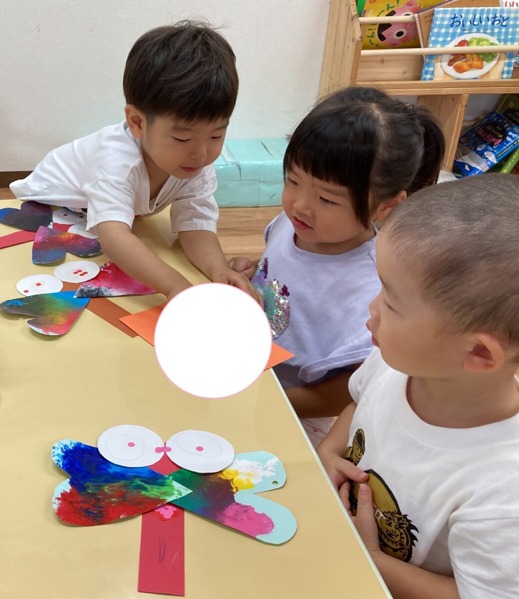 自分の好きな色や知っている色をを選び、シールや色鉛筆でオリジナルのトンボを作ります