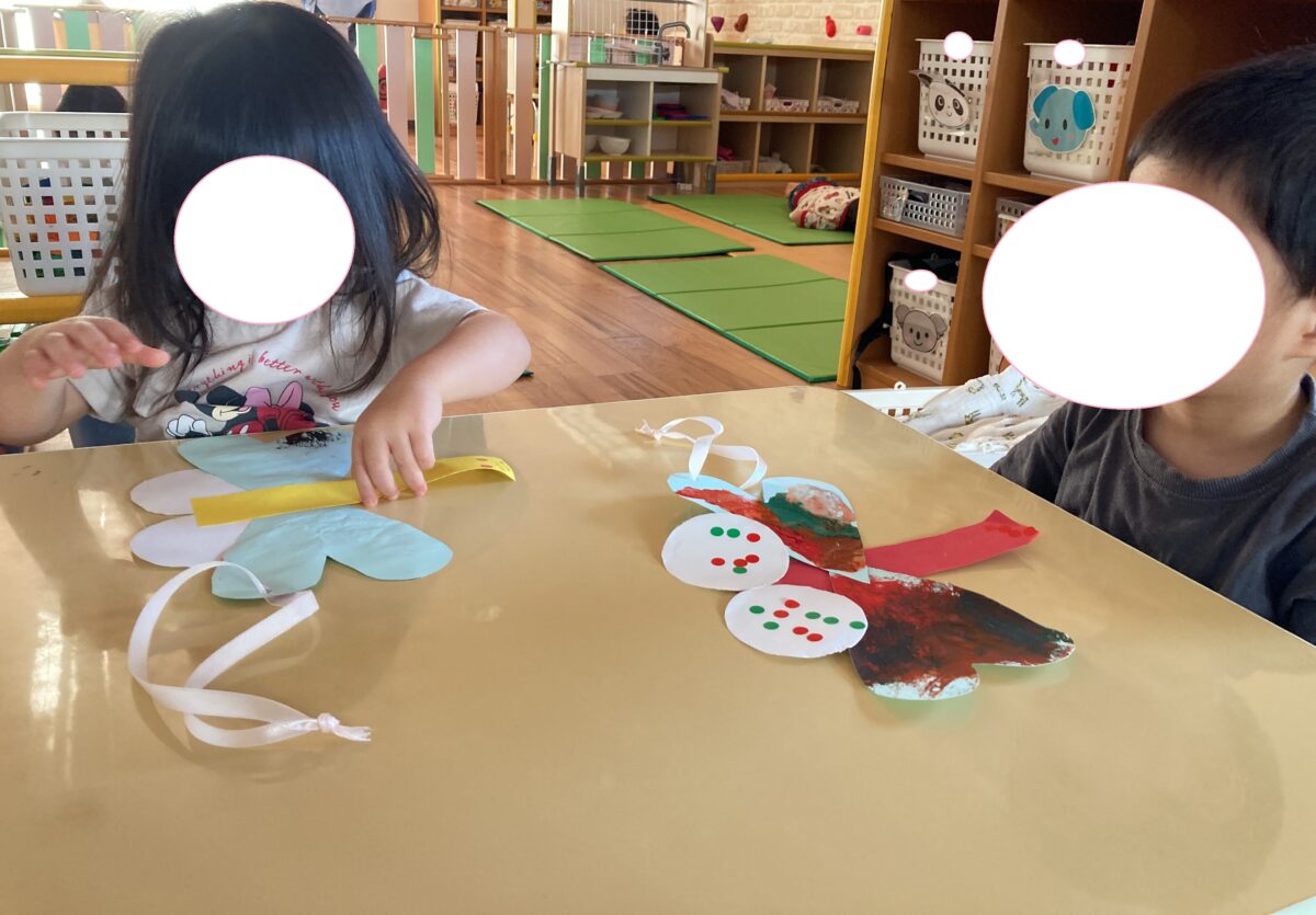 なかには口や鼻を胴に書いたり貼ったりして表現する子も・・・