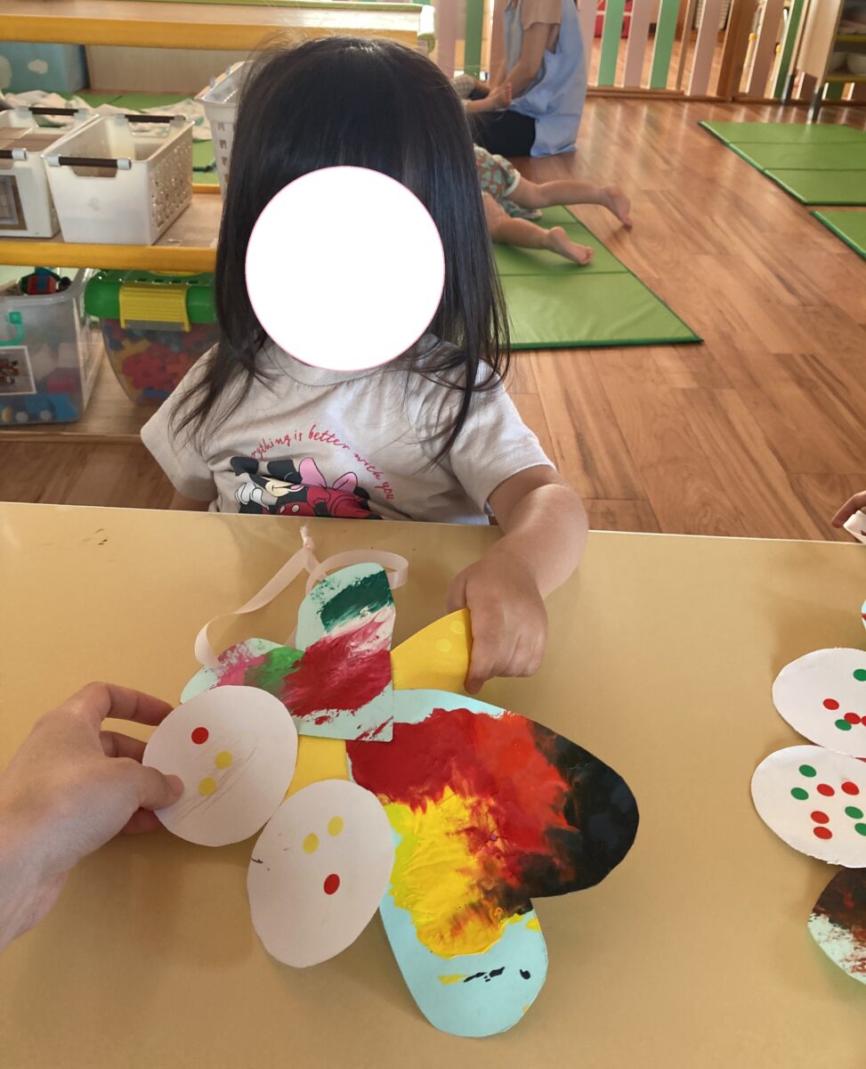 自分の好きな色や知っている色をを選び、シールや色鉛筆でオリジナルのトンボを作ります