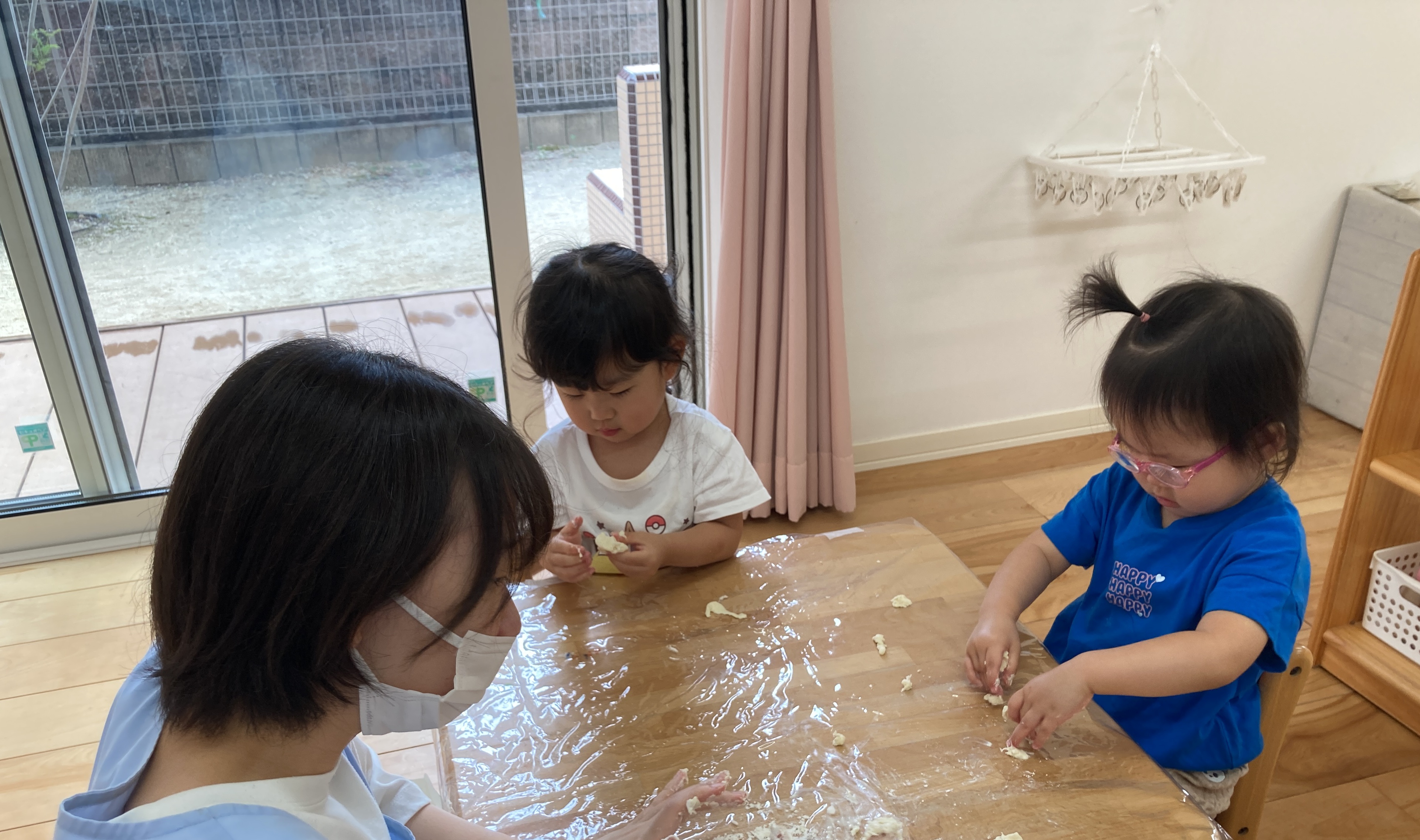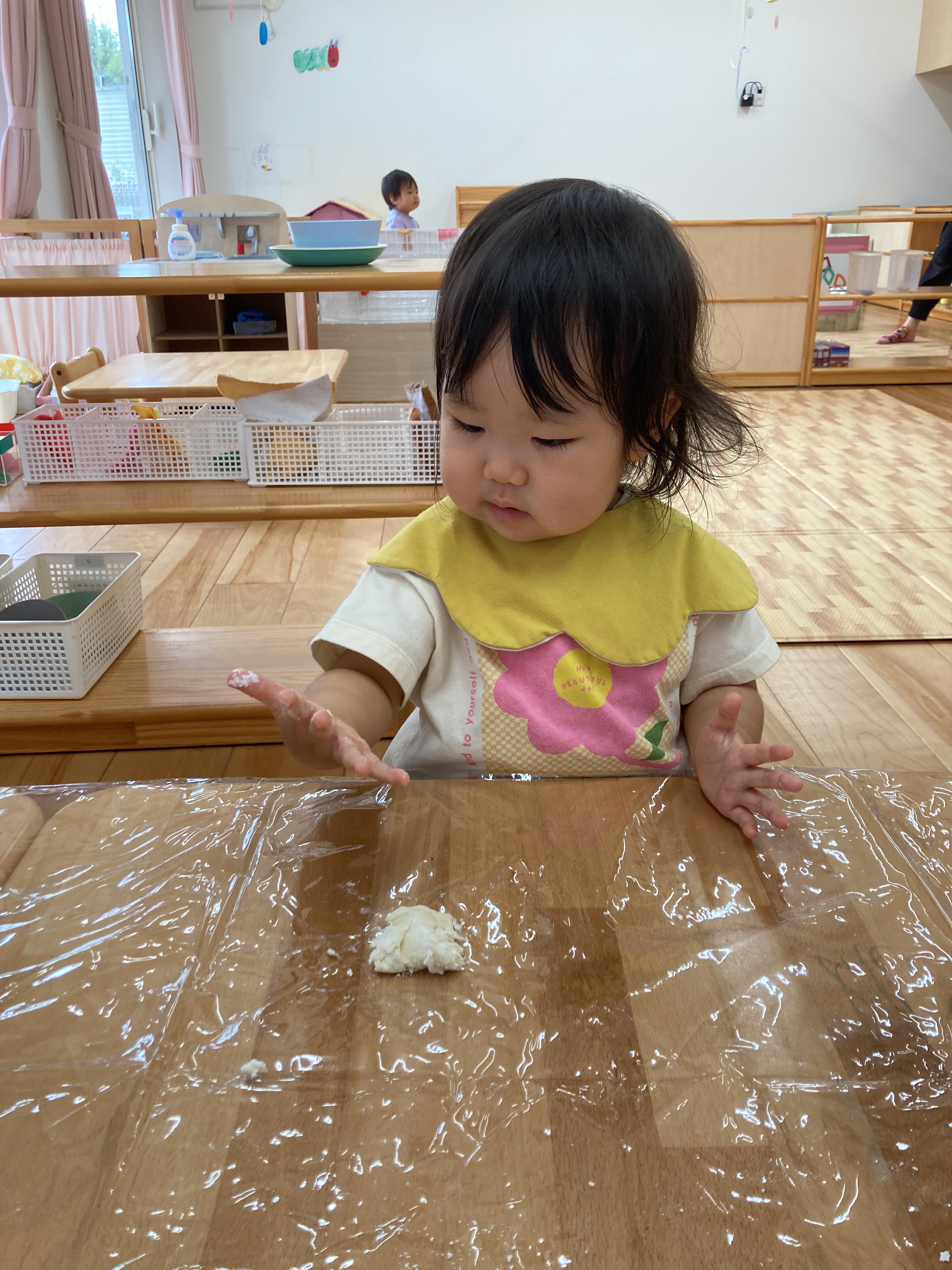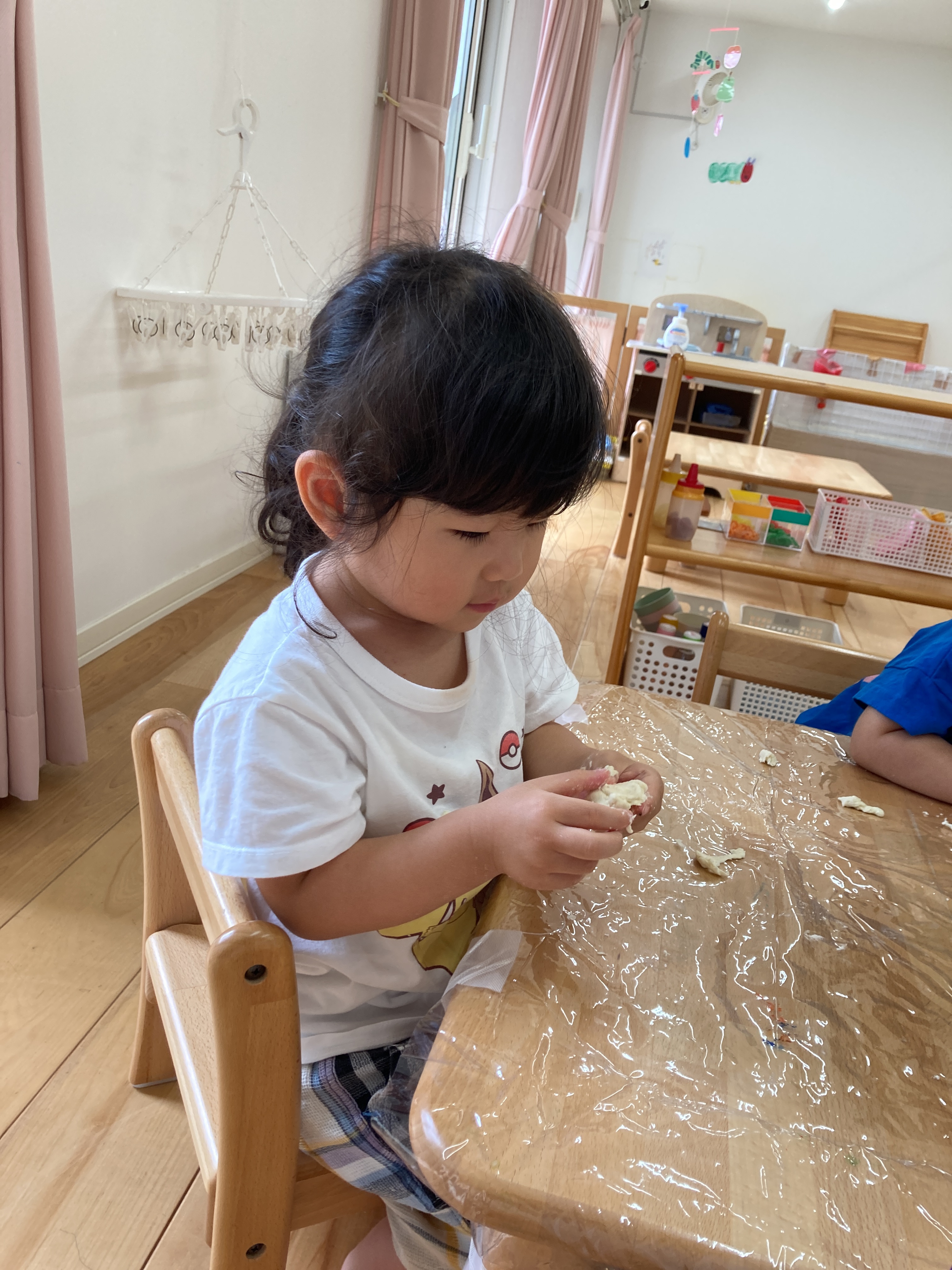 これまで楽しんできた小麦粉粘土を使って、お月見団子作りをしました。