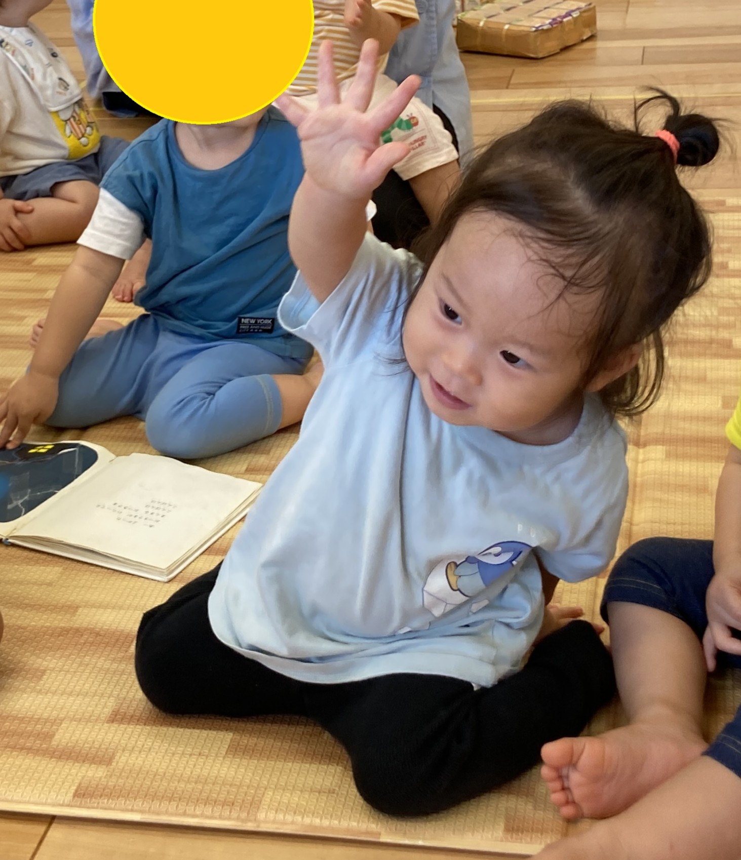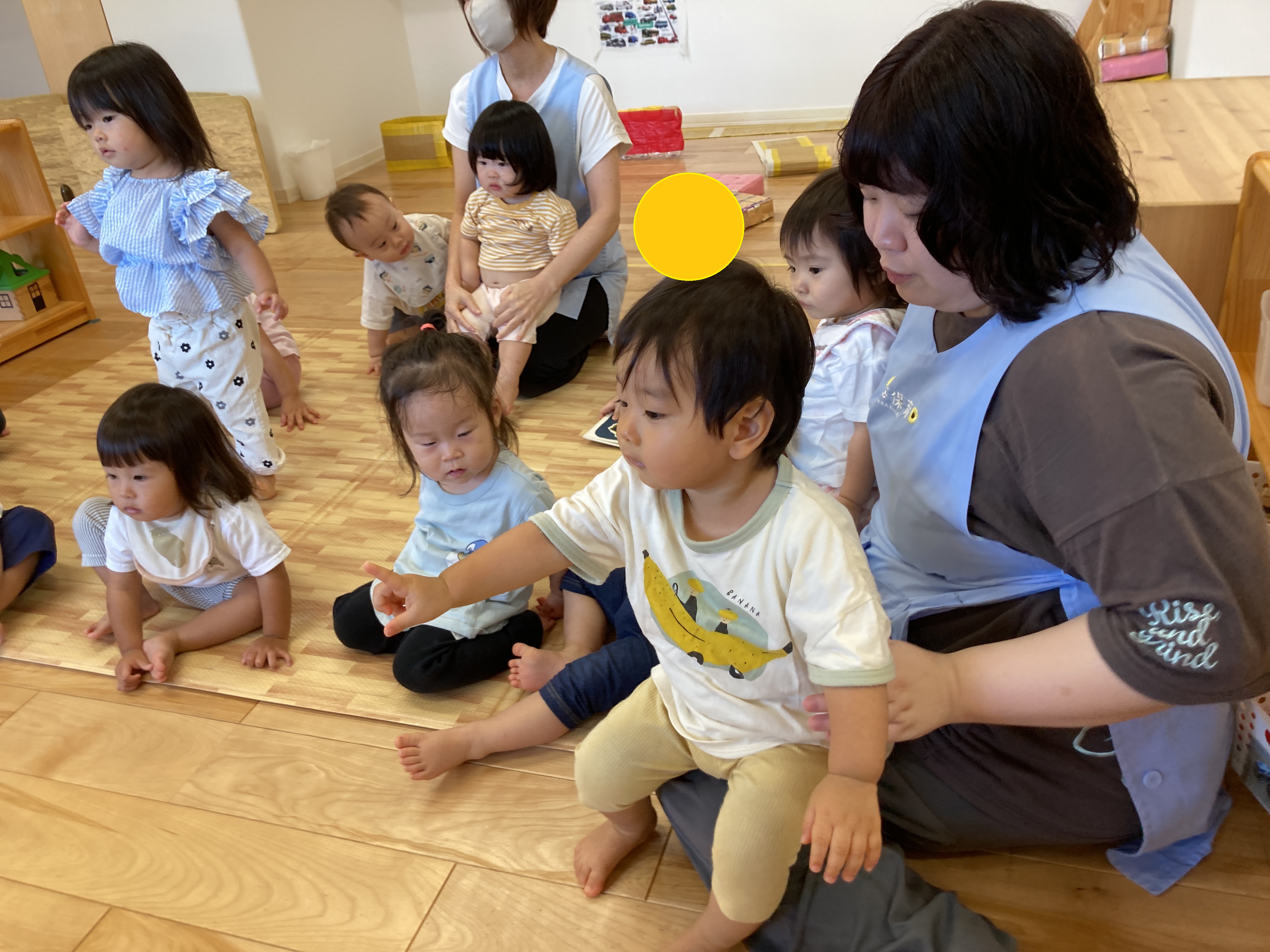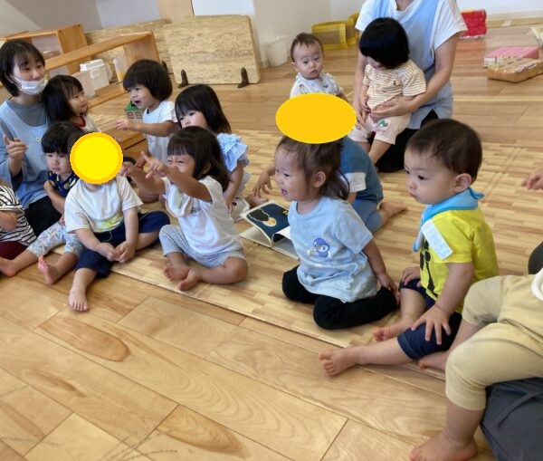 「おつきさまだ!」「くもさん、どいてー!」とお話の世界に入り込み、目を輝かせながら楽しむ姿が見られました。