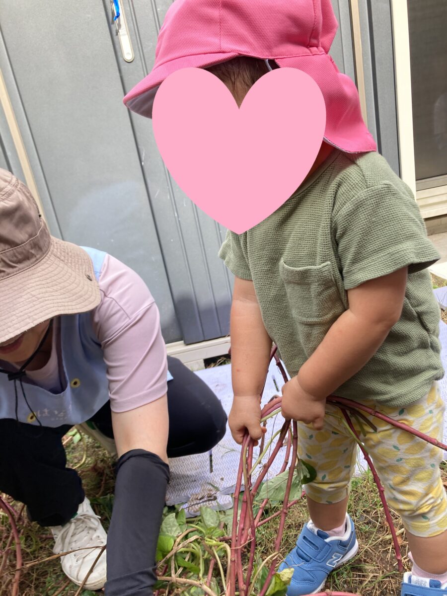 外へ行く準備をして、、大きいお友だちから、いさ収穫!!🍠