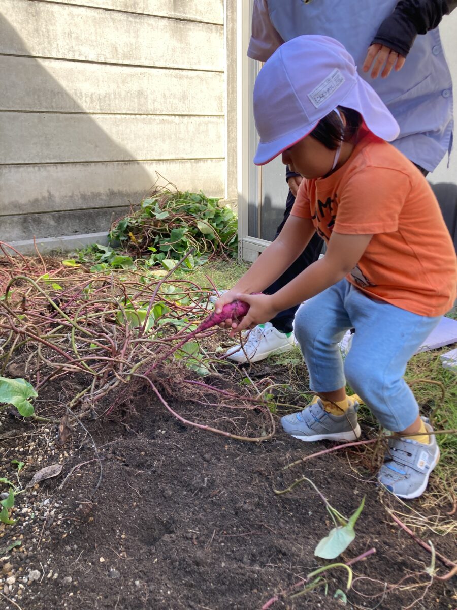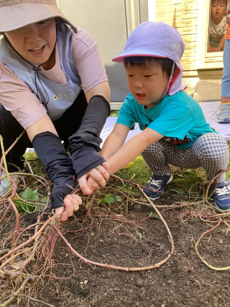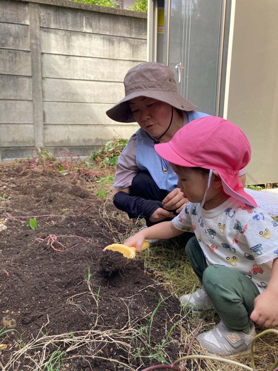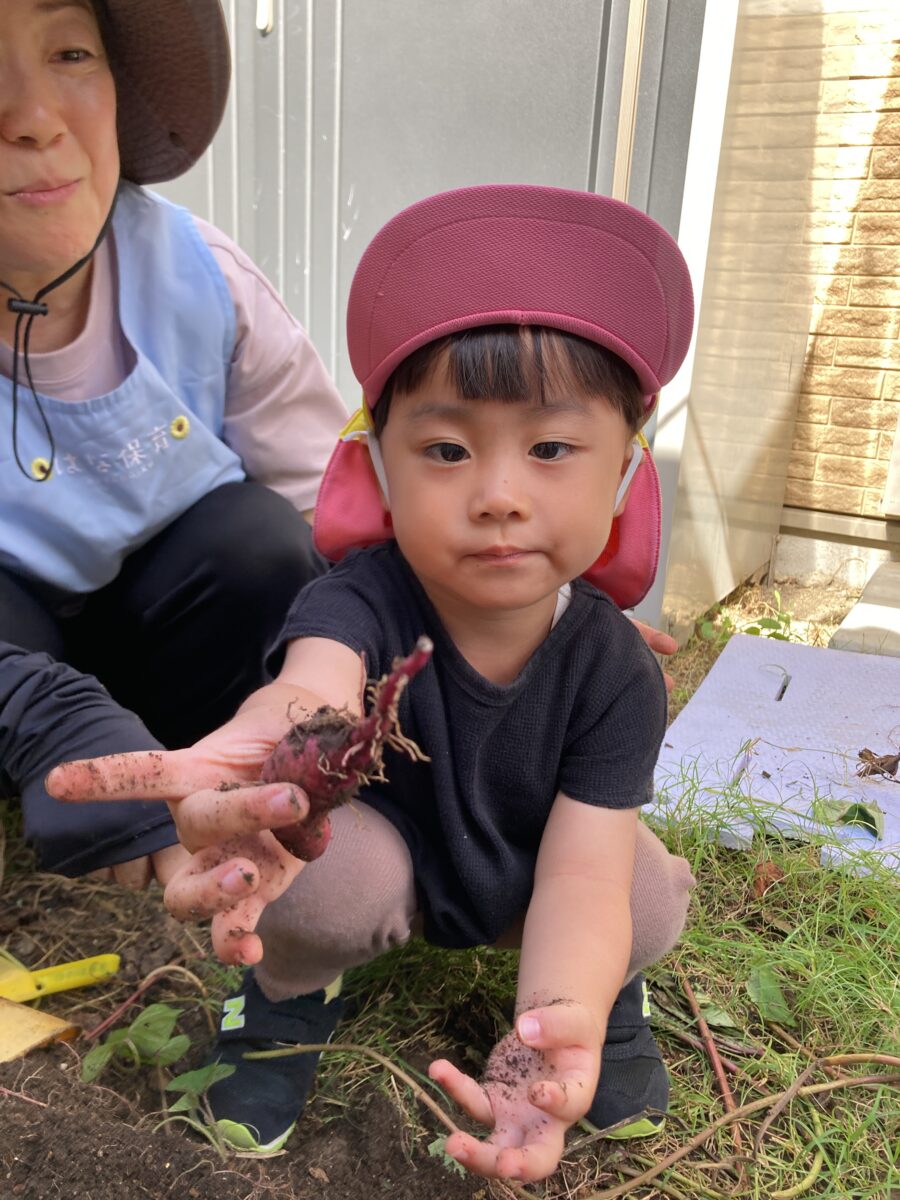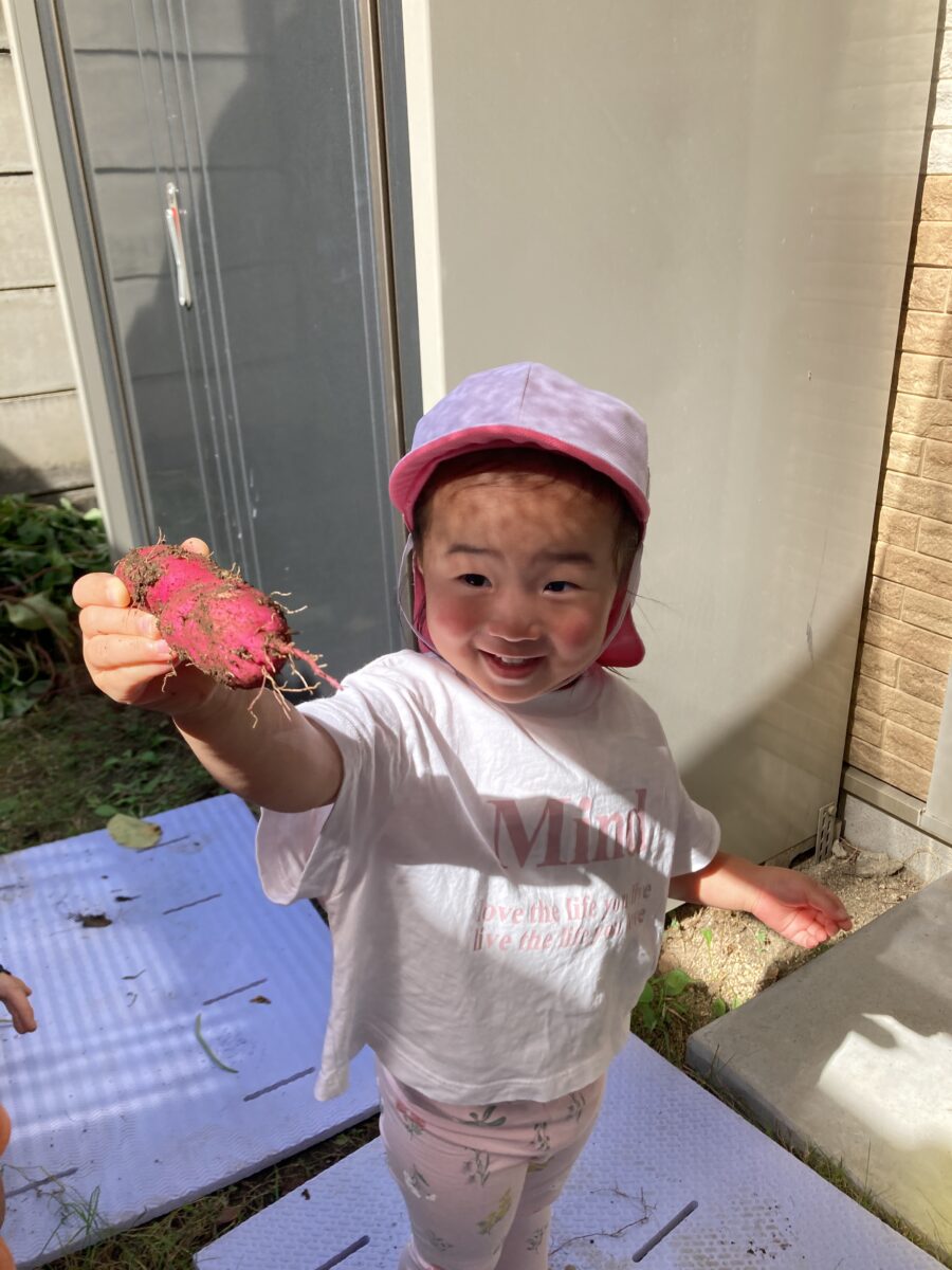 外へ行く準備をして、、大きいお友だちから、いさ収穫!!🍠
