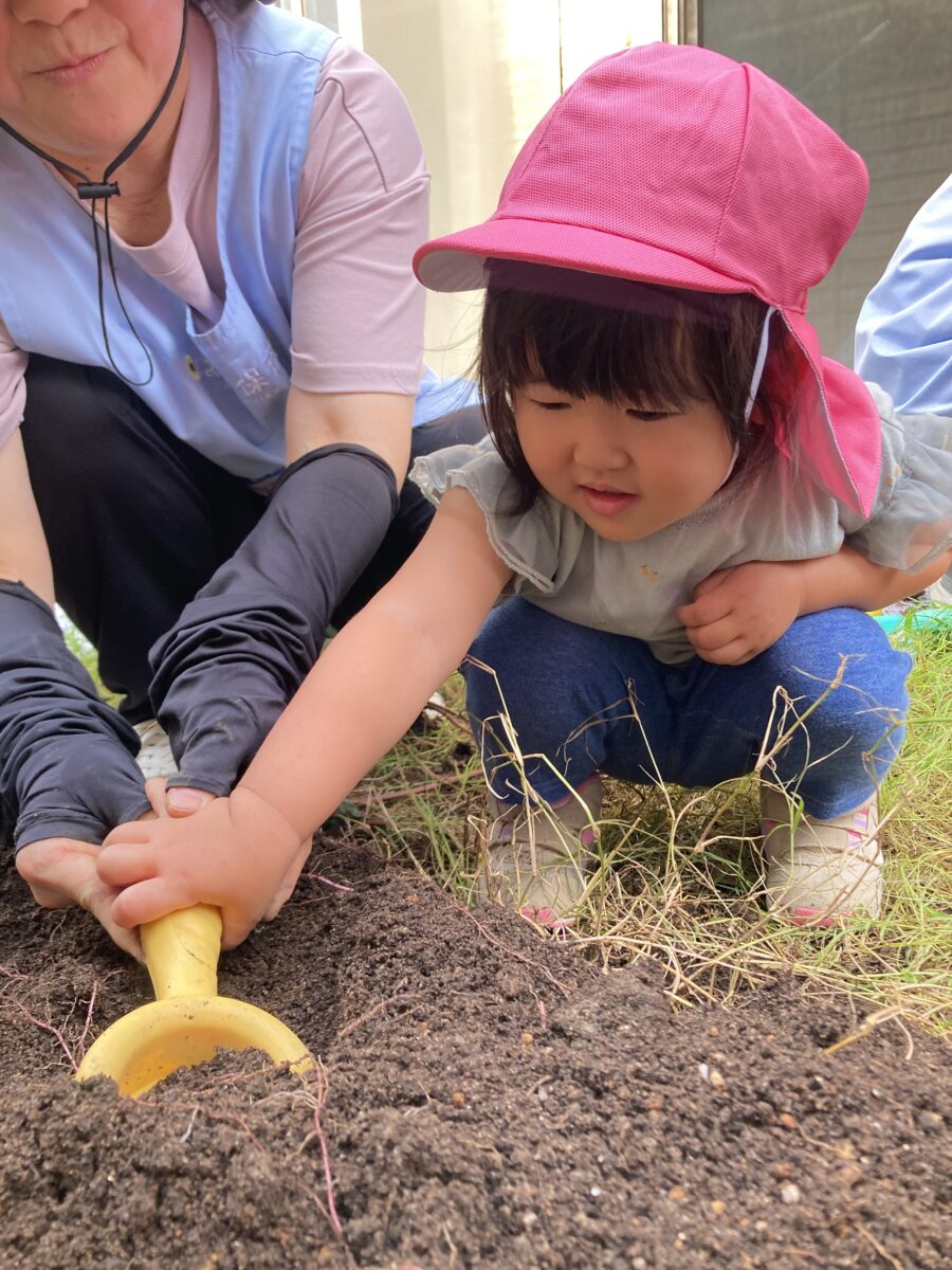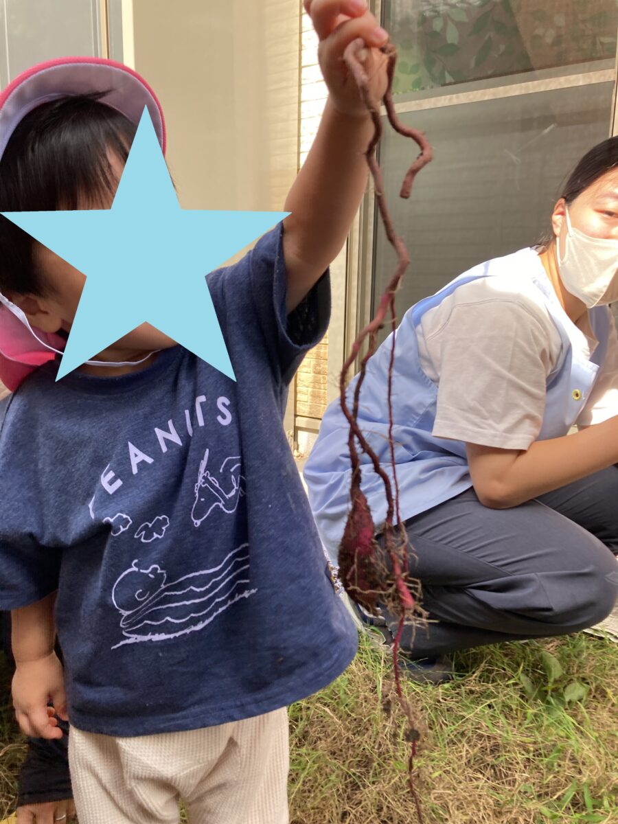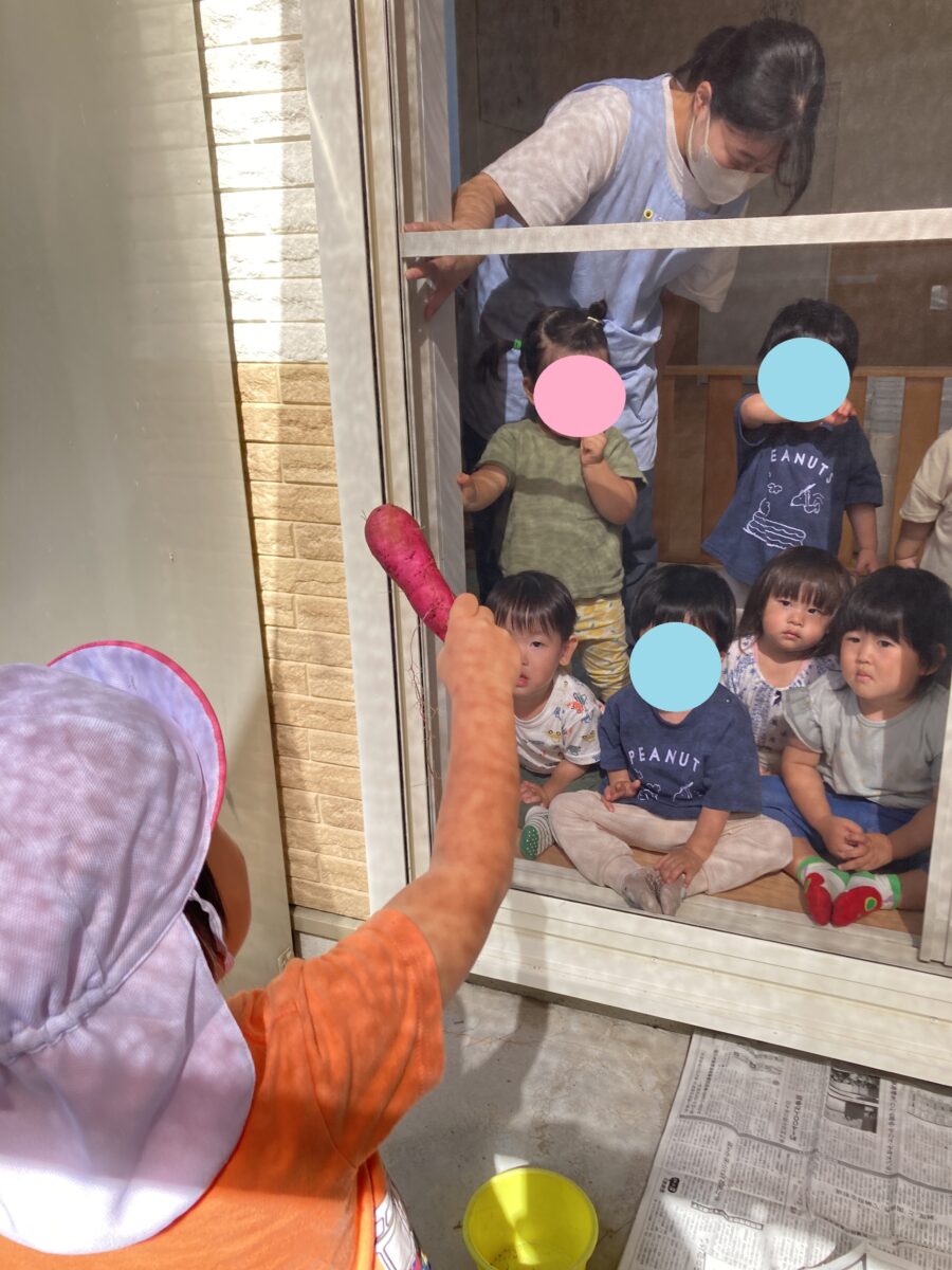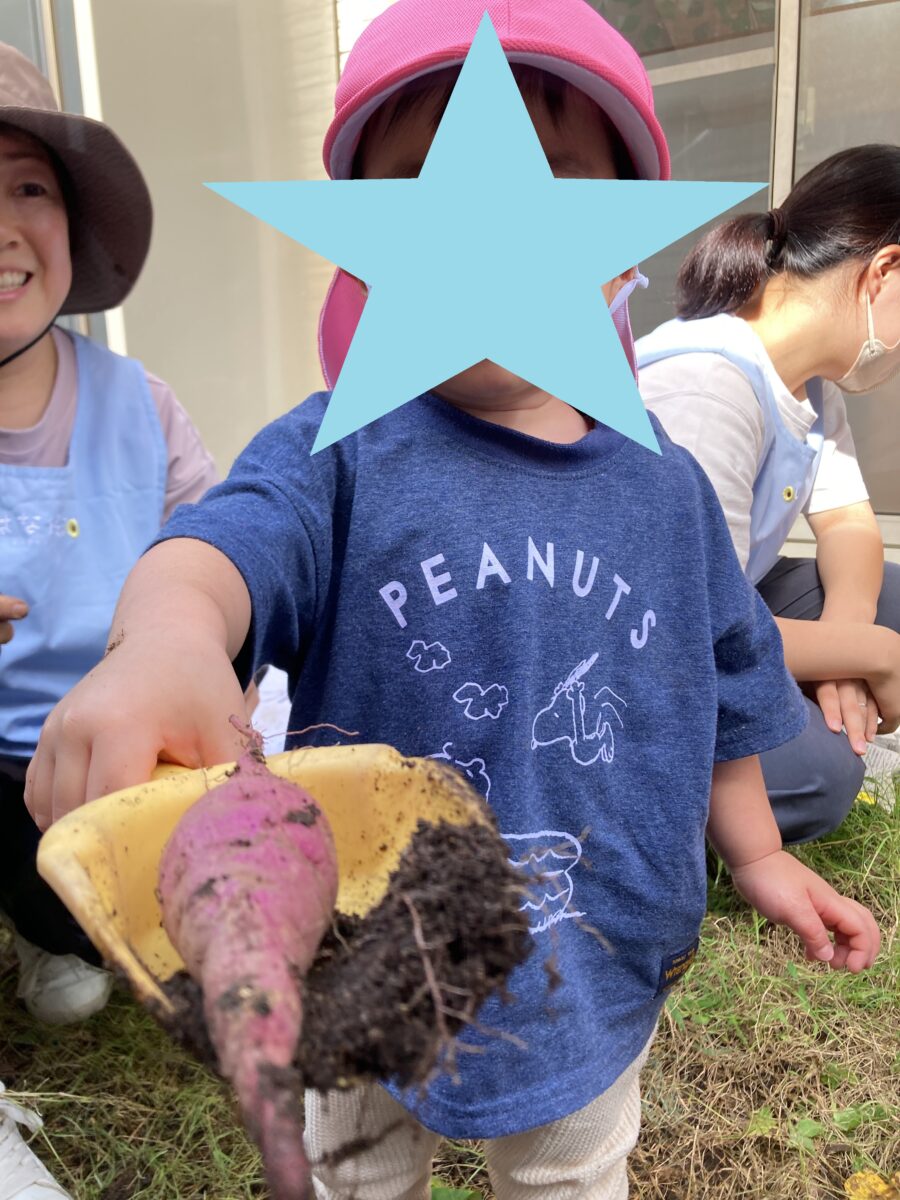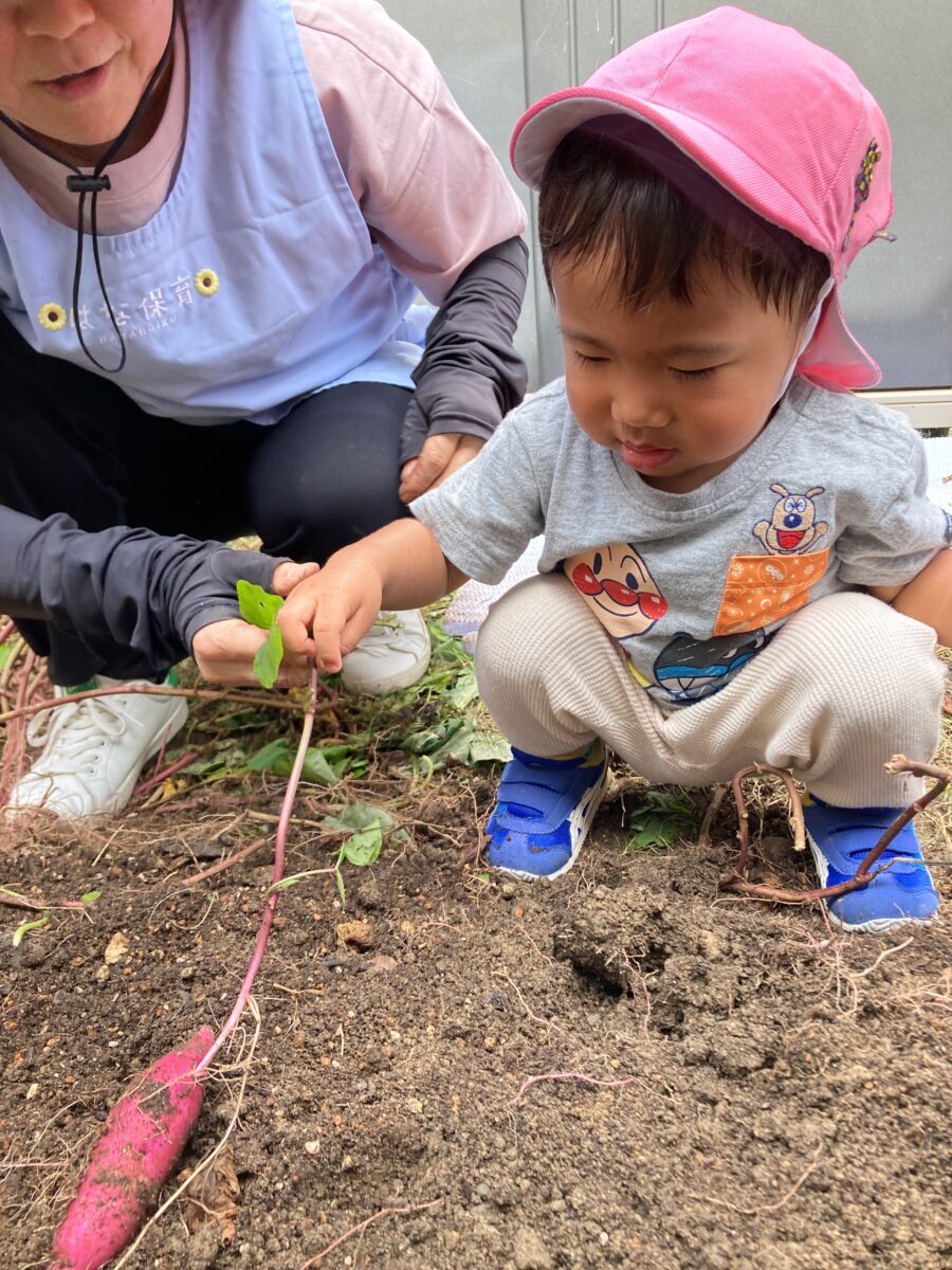 外へ行く準備をして、、大きいお友だちから、いさ収穫!!🍠