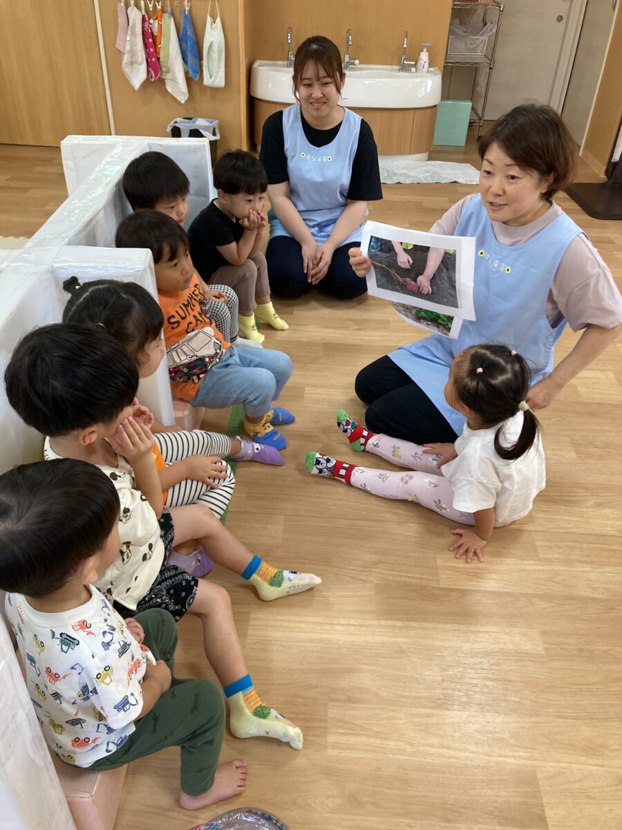 収穫をする前にさつまいもの成長過程のお話を聞きました