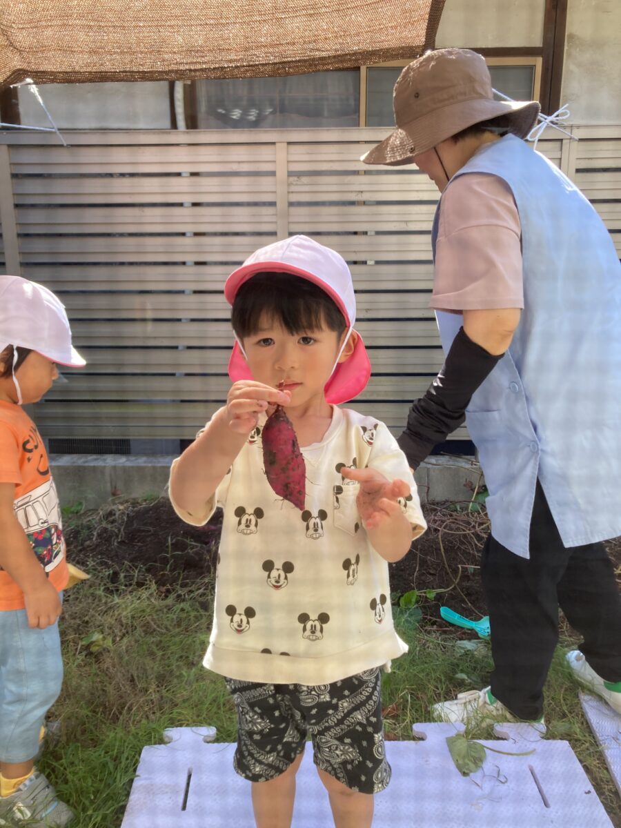自分たちで苗を植えて、お水をあげて育て、収穫したさつまいもは特別だねっ🍠