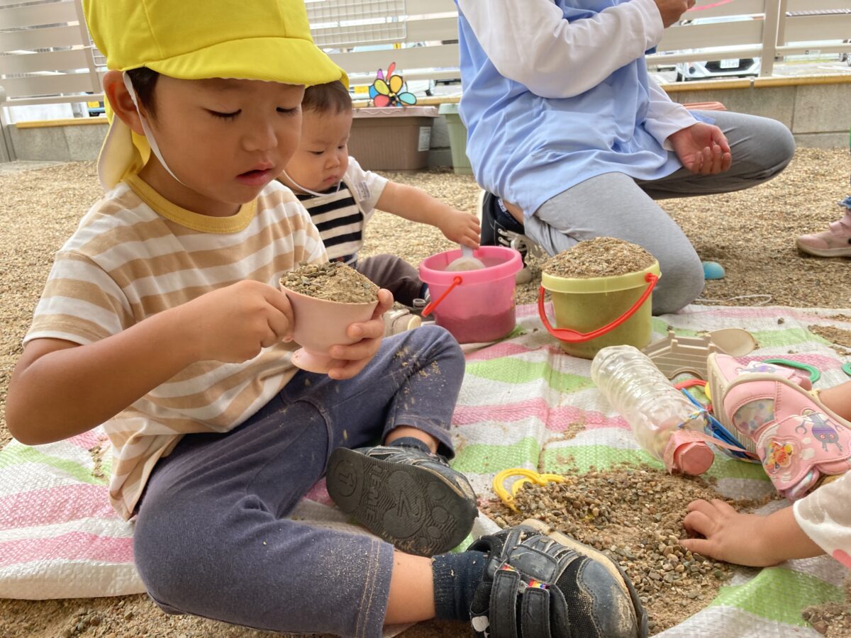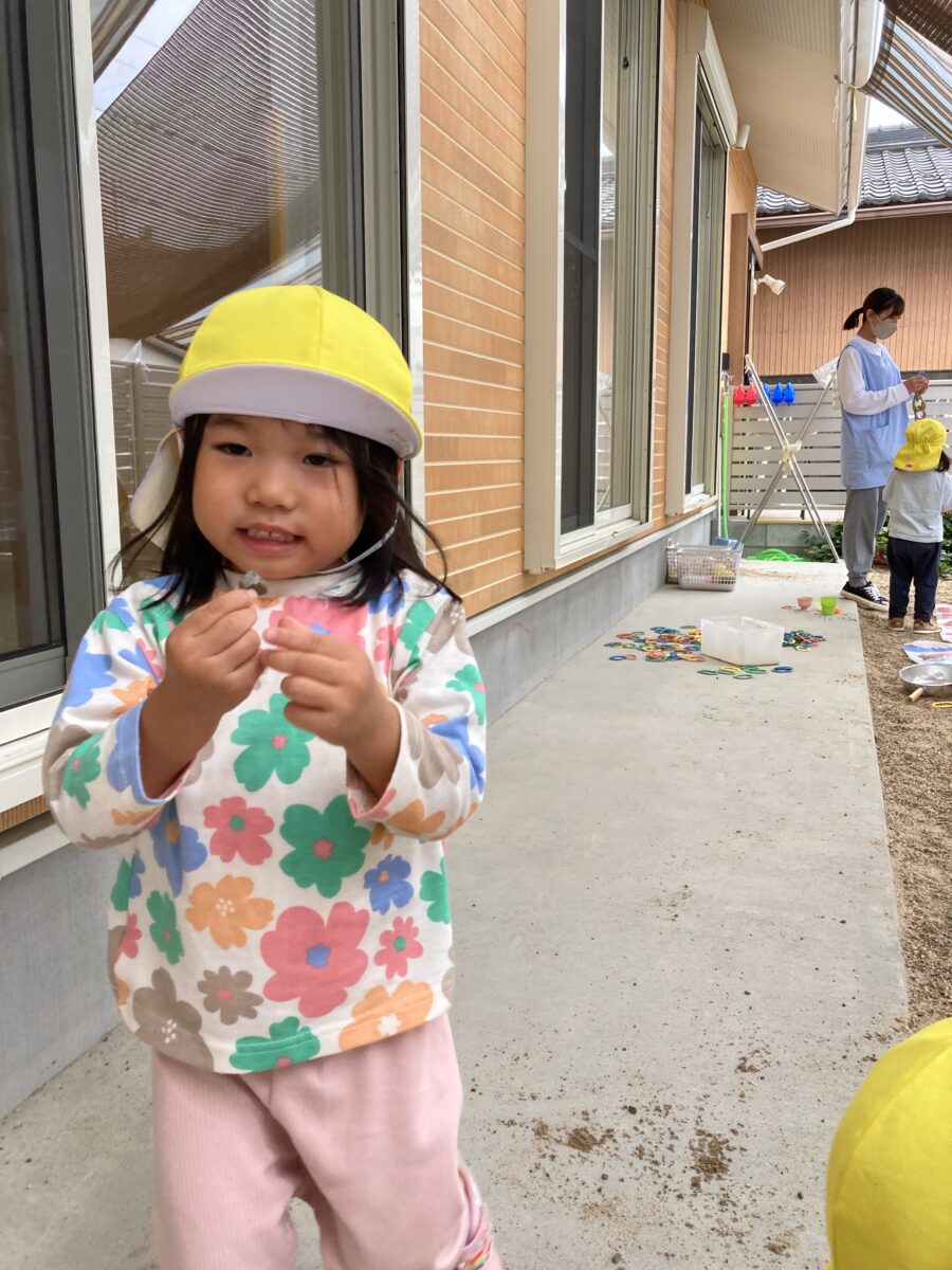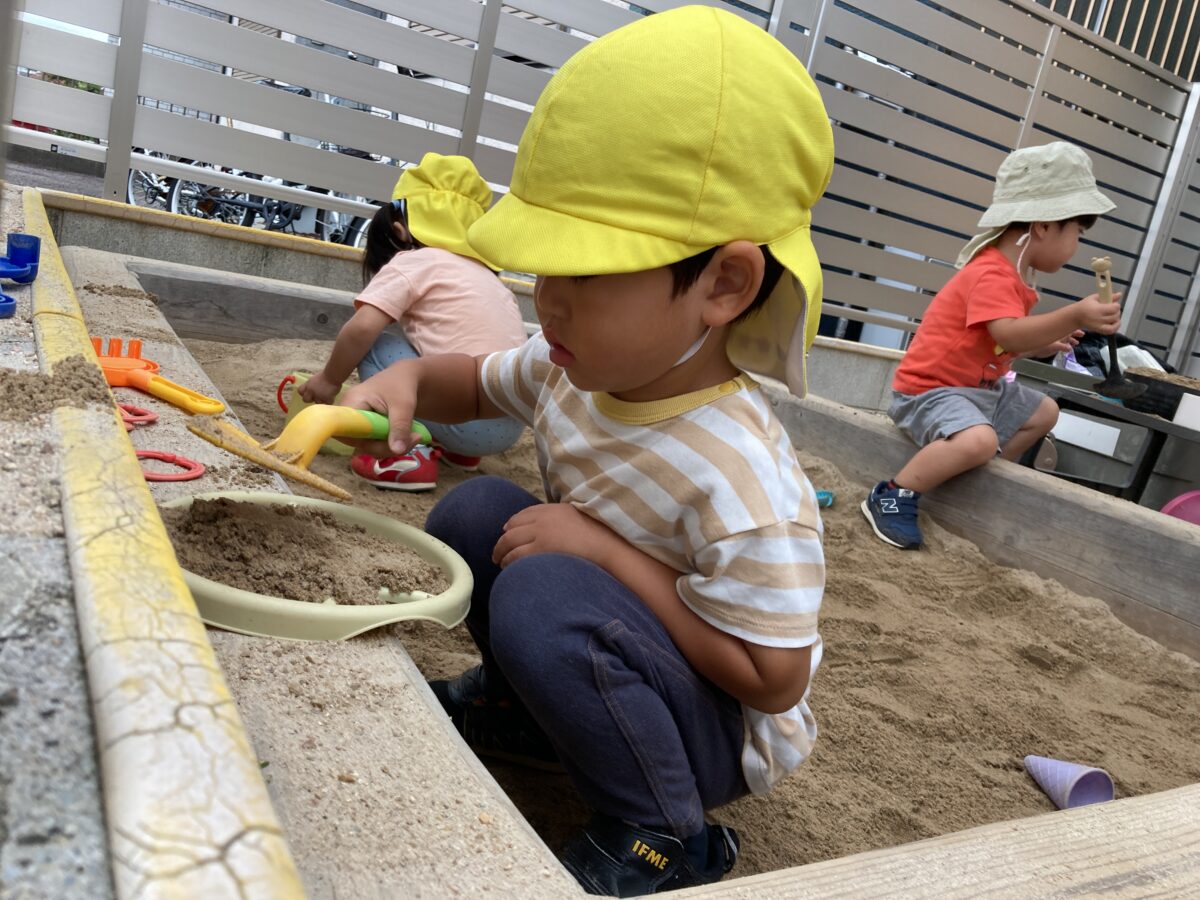 「おそといくかな?」「おすなばする?」と、戸外遊びを楽しみにしている子どもたち