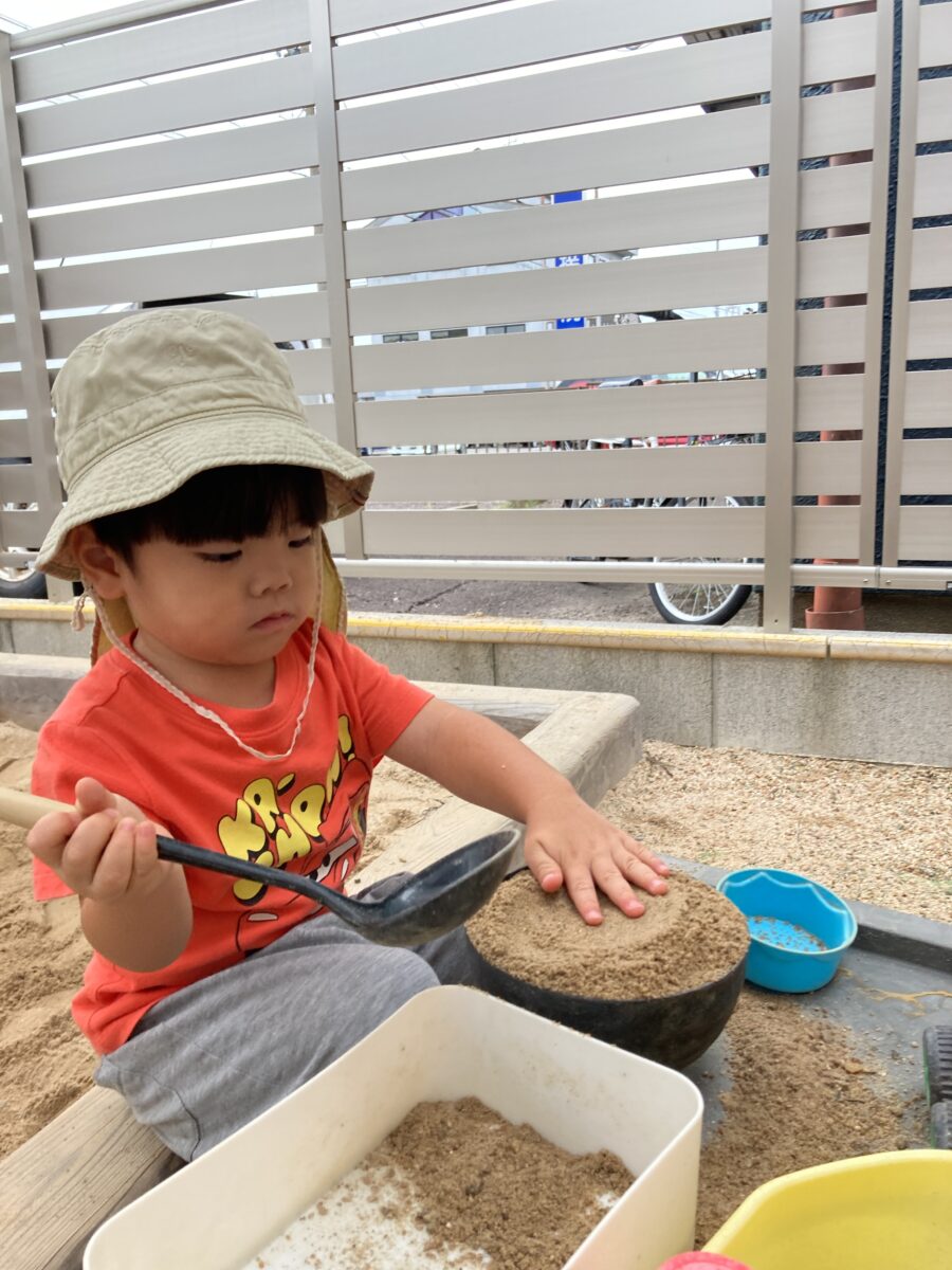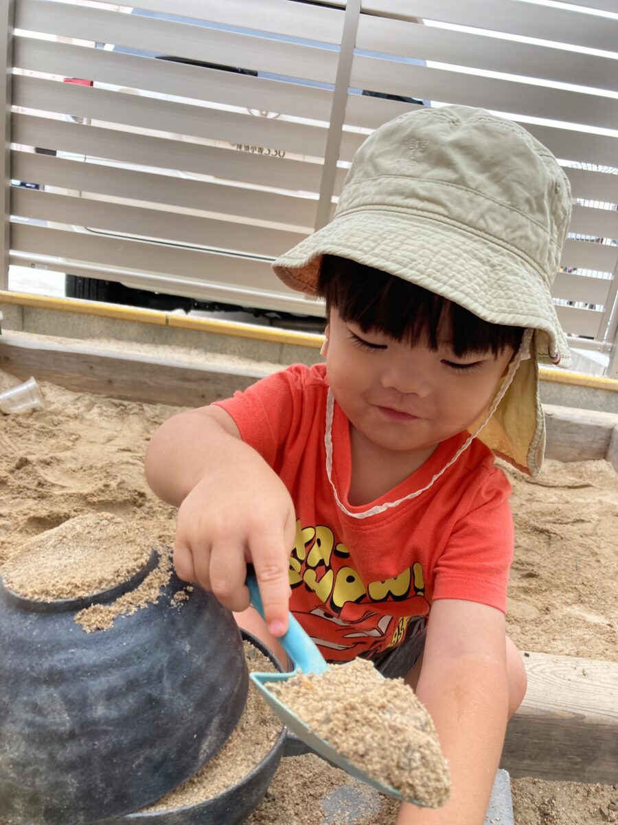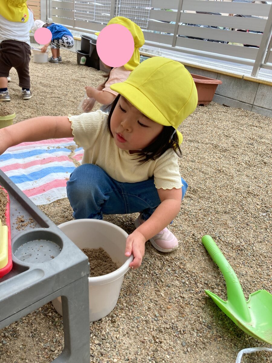 「おそといくかな?」「おすなばする?」と、戸外遊びを楽しみにしている子どもたち