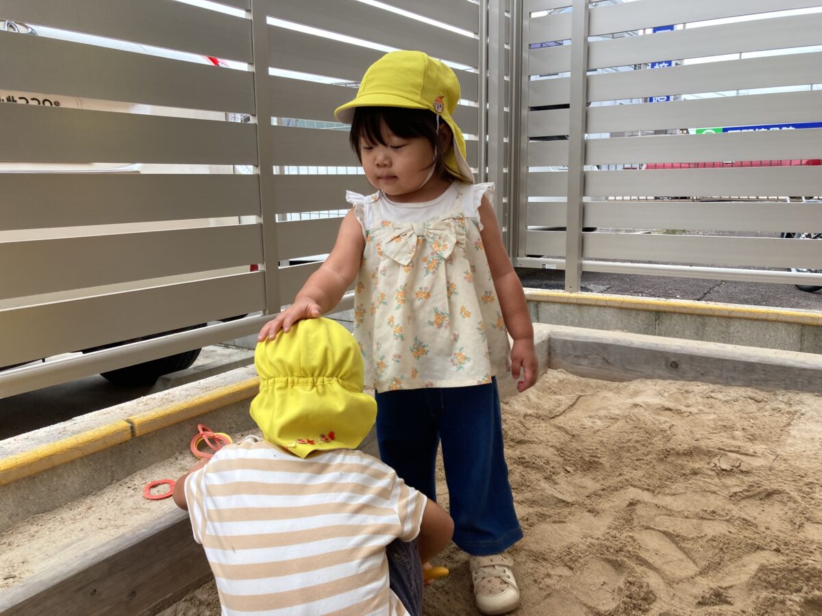 こちらのお友だちは他のお友だちのこと気になったようで、頭をポンポンと叩き、やり取りを楽しむ姿が見られました