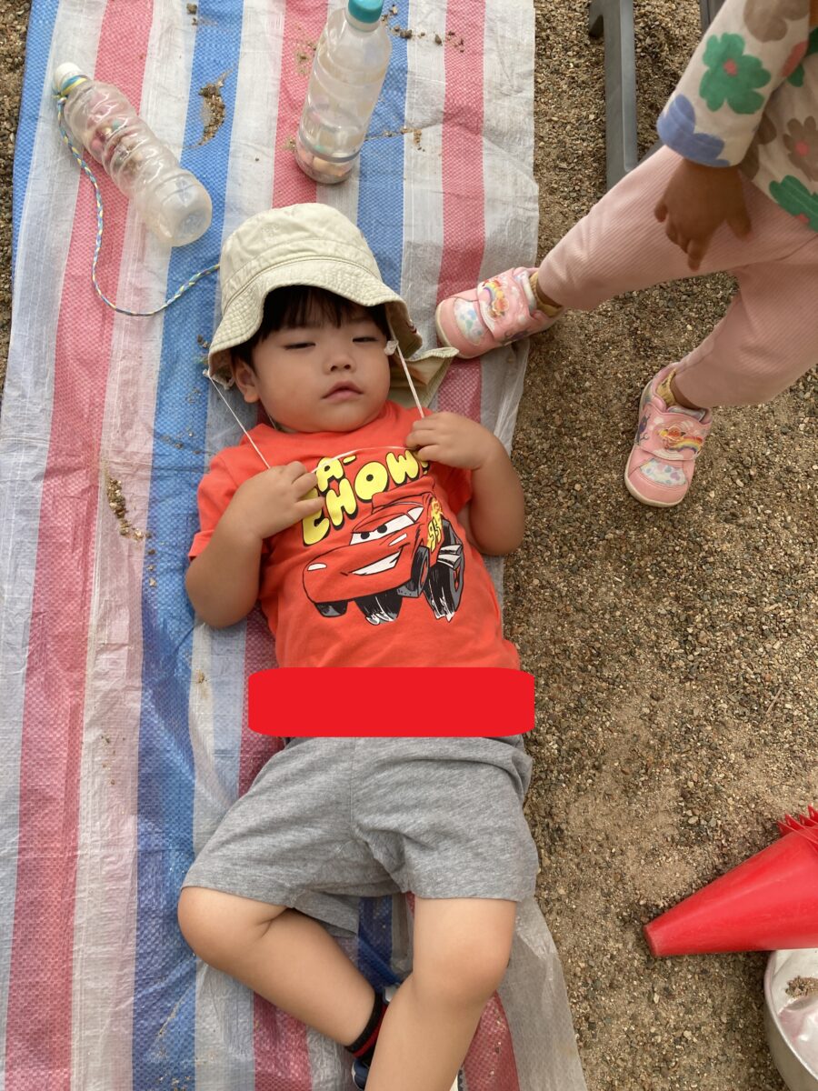 こちらのお友だちもレジャーシートに座り、ピクニックやパーティーごっこを楽しむ姿が見られました