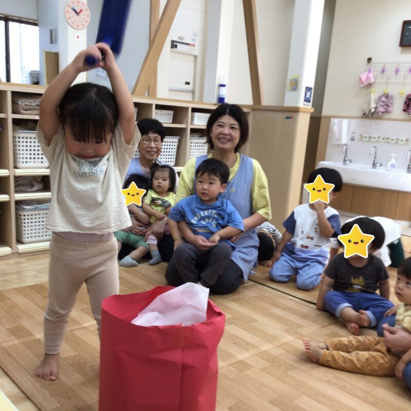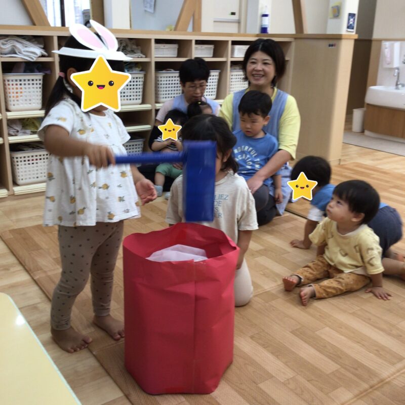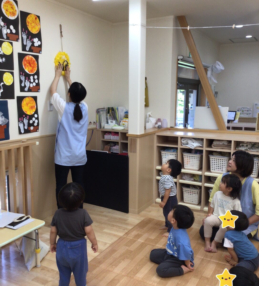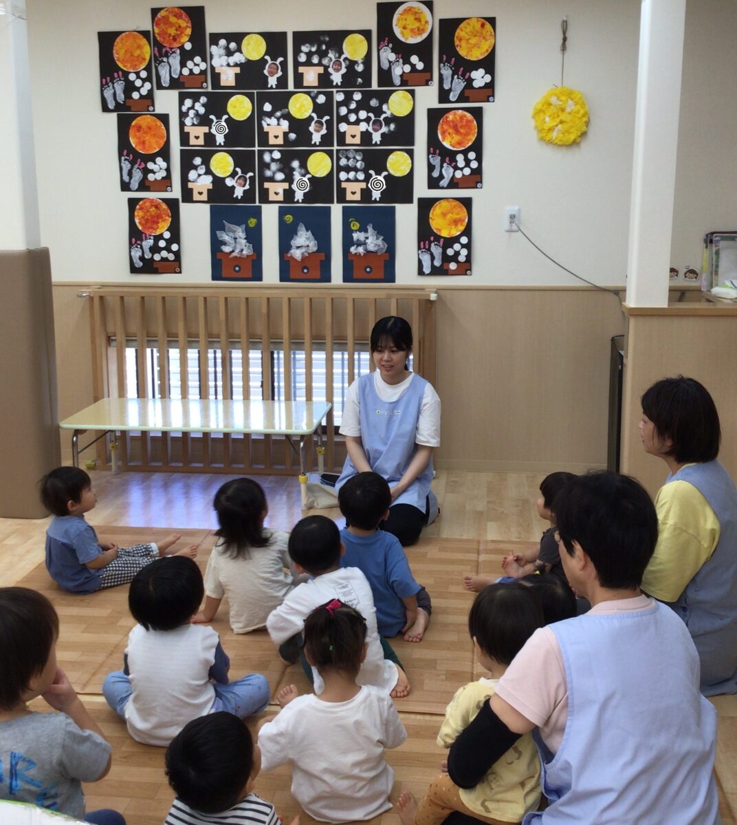 実は事前に保育室にも大きなお月様を飾っていました。気づいていたかな?