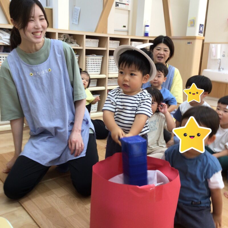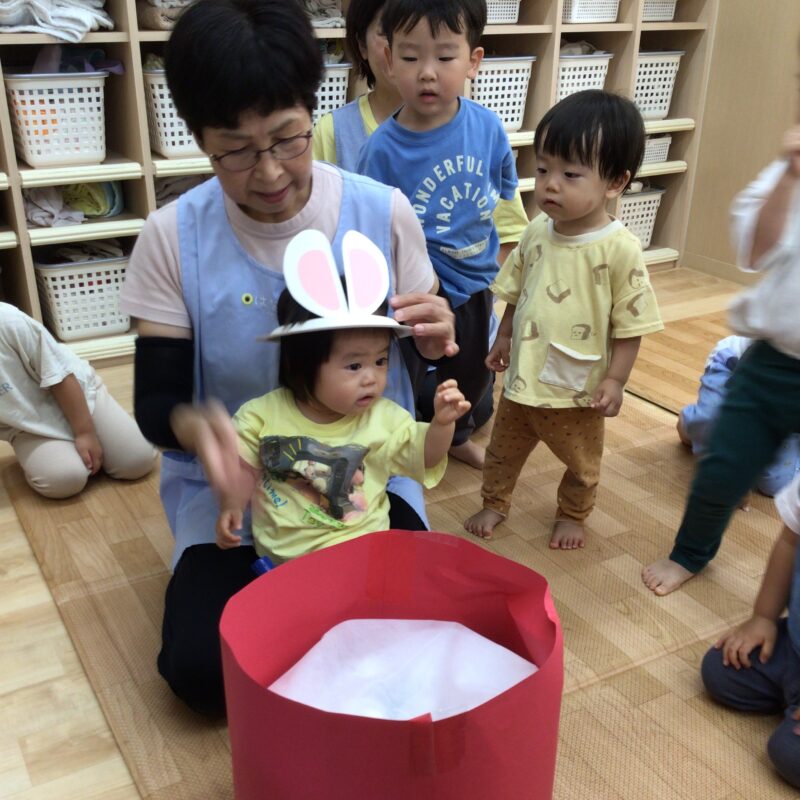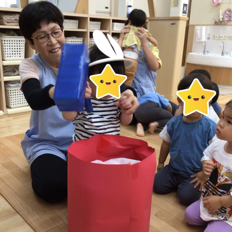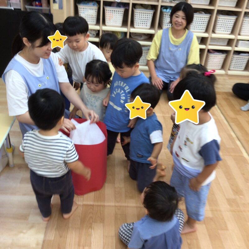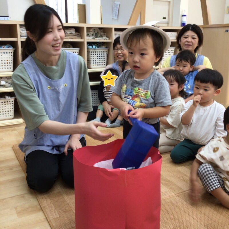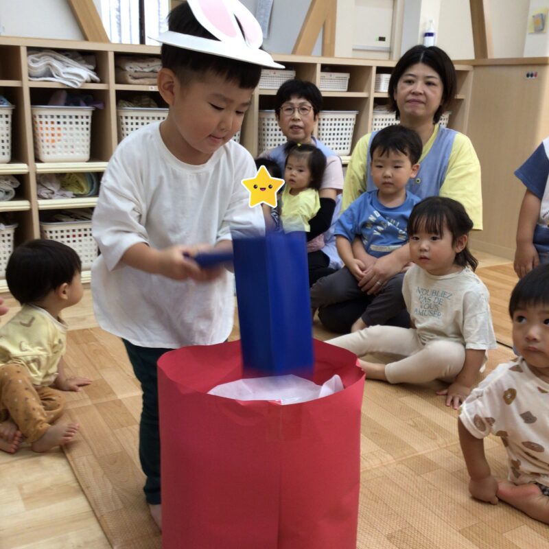 実は事前に保育室にも大きなお月様を飾っていました。気づいていたかな?
