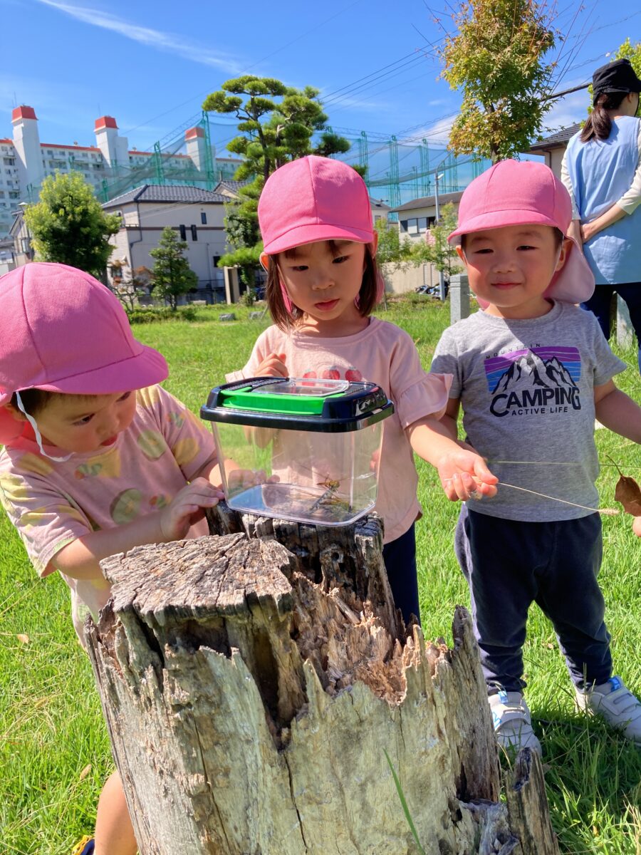 みんな指を差したり、虫かごを持ったりして真剣に見ていましたよ