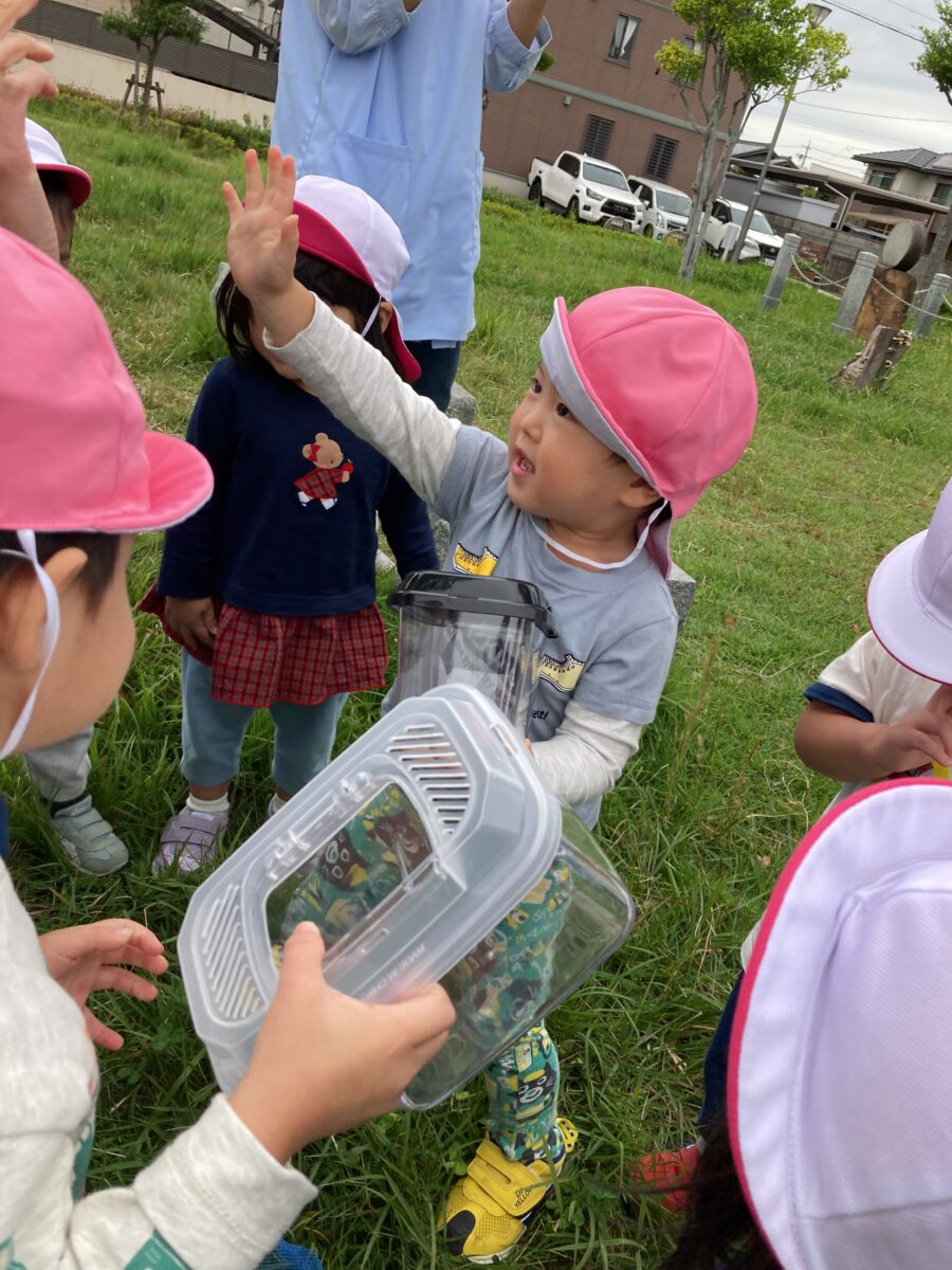 お散歩に行く機会が増え、たくさんの生き物に触れて、たくさん体を動かして楽しんでいます