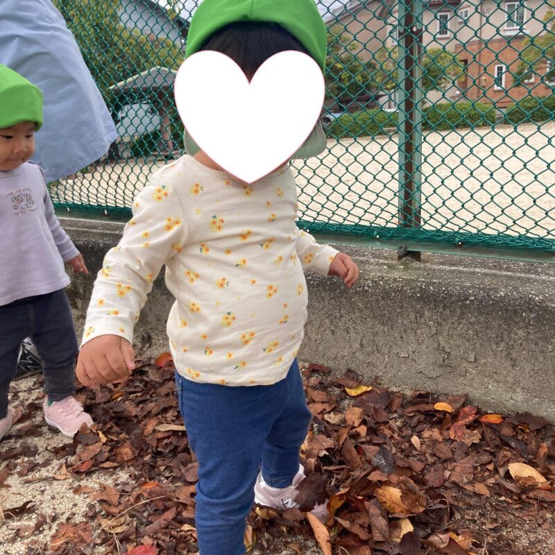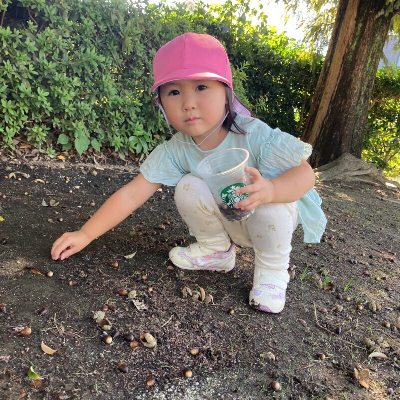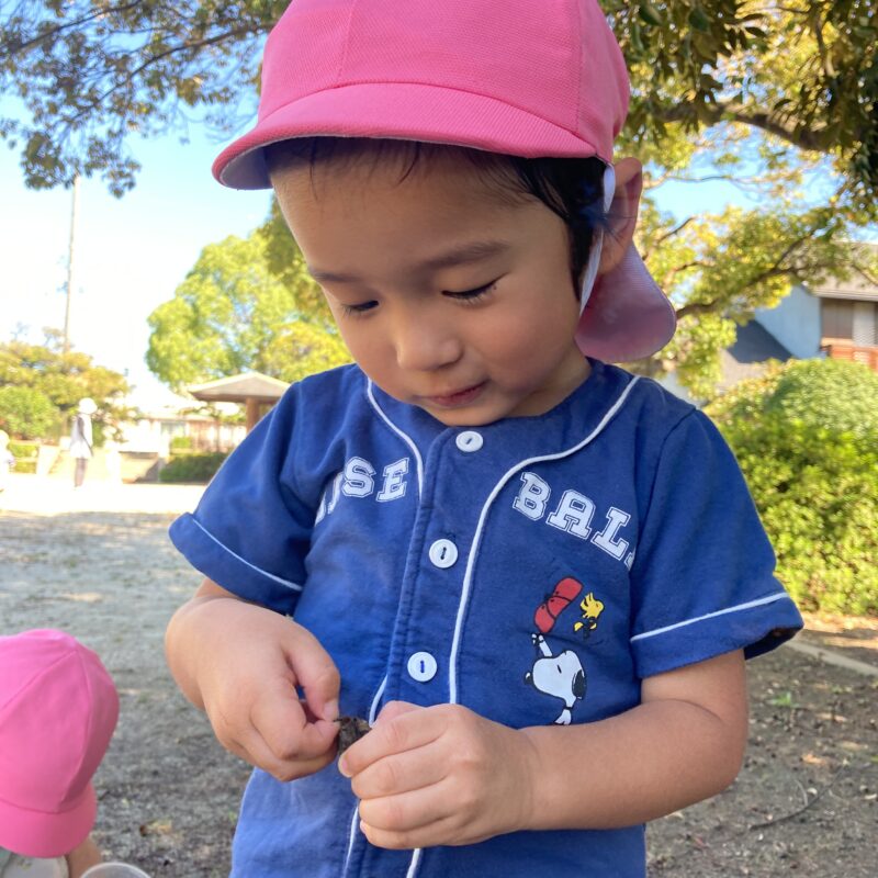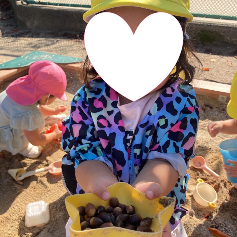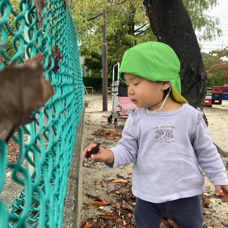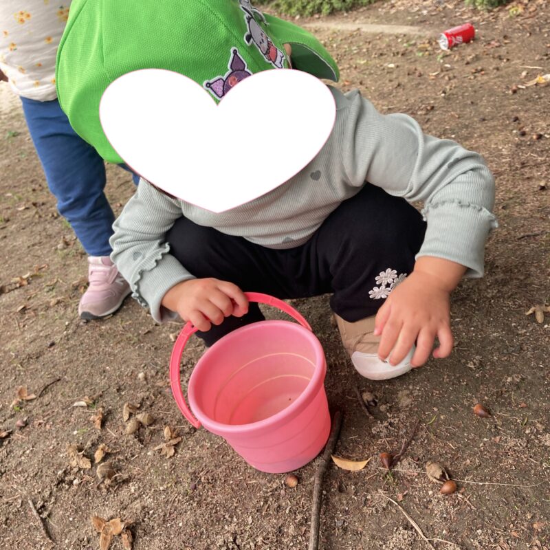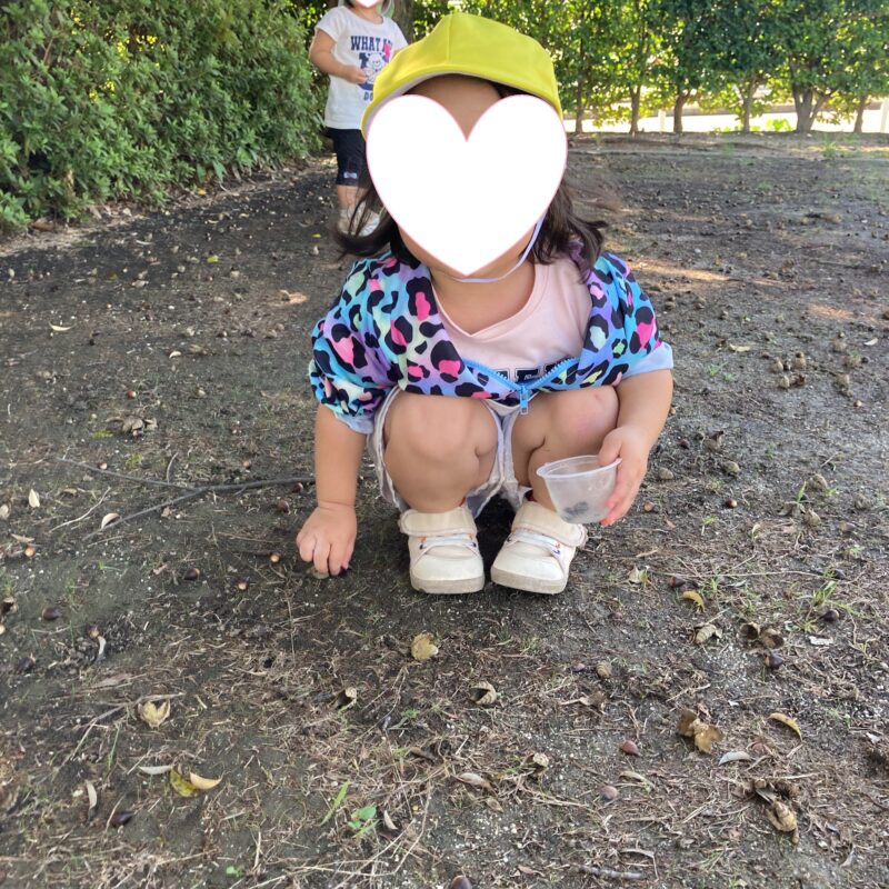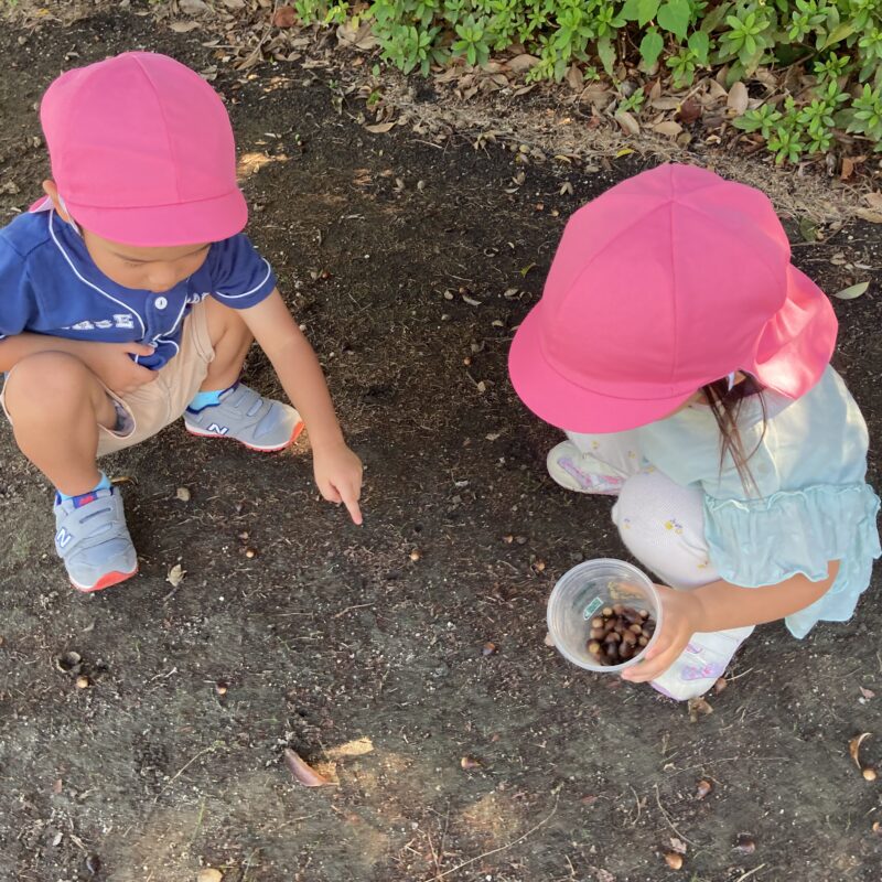 秋になり、どんぐりや落ち葉をお友だちと探す姿も見られるようになりました