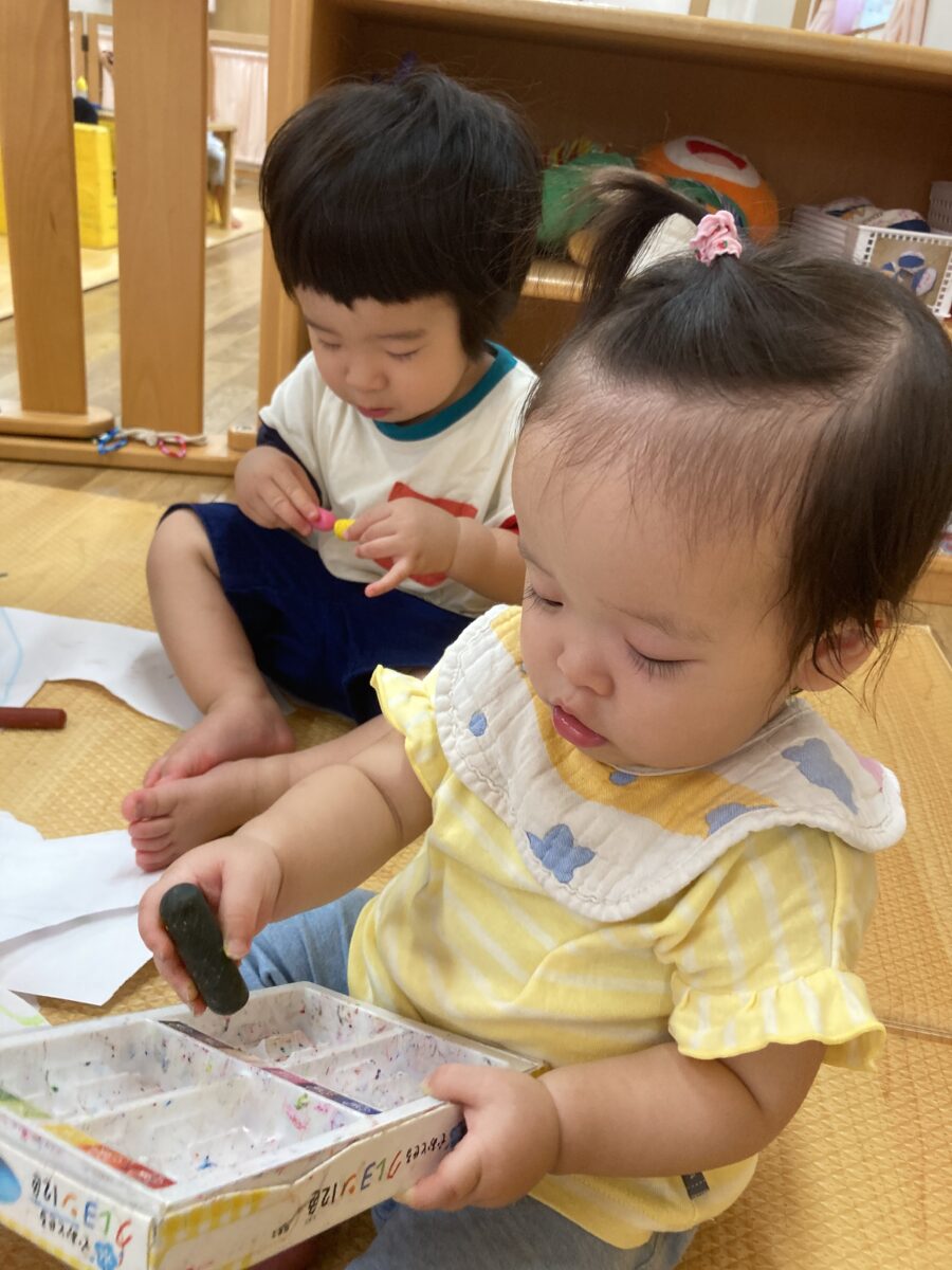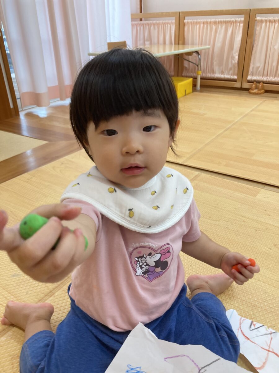 「みてー!」というようにクレヨンを見せてくれました![]()